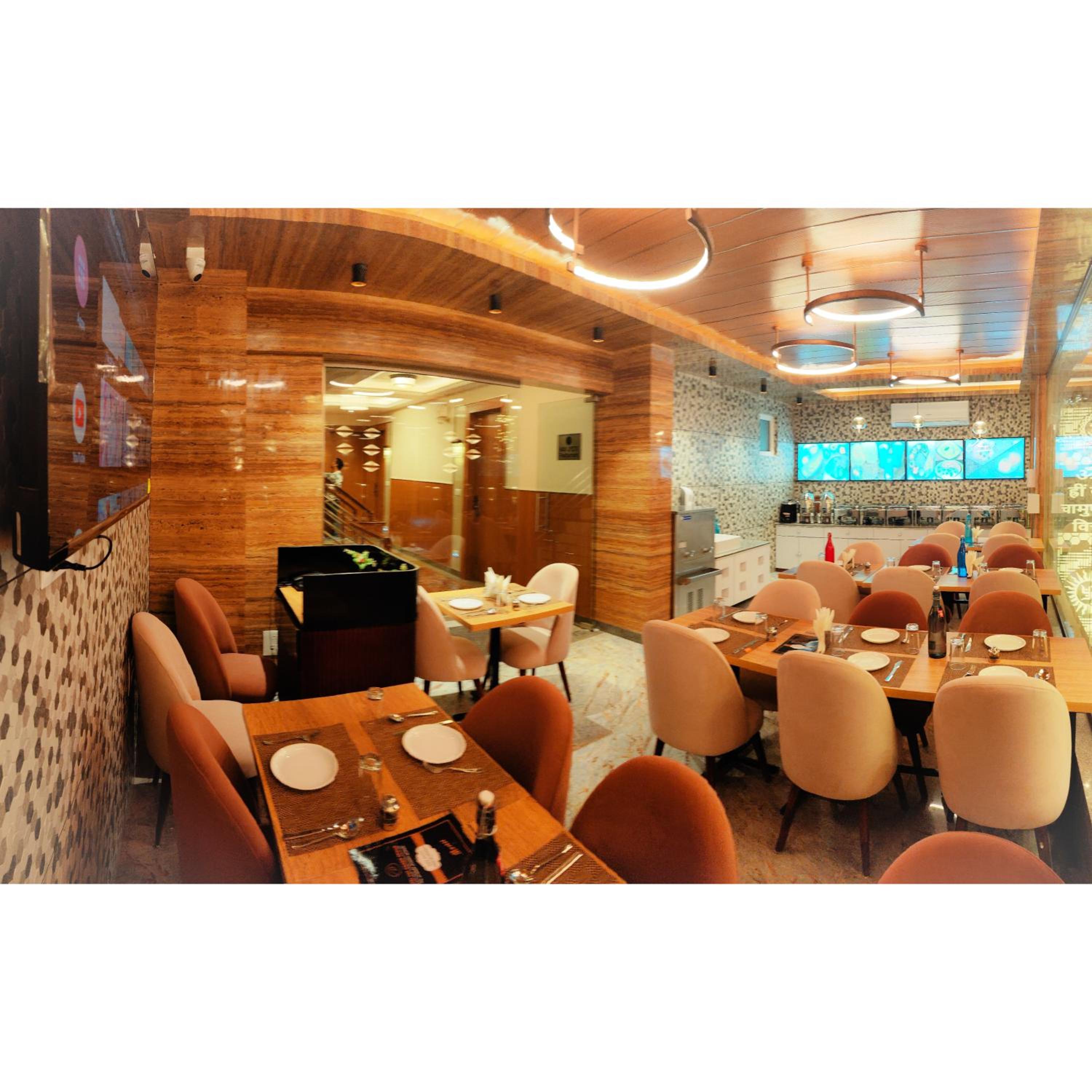 Their is a restaurant on the top floor serving veg north Indian food.