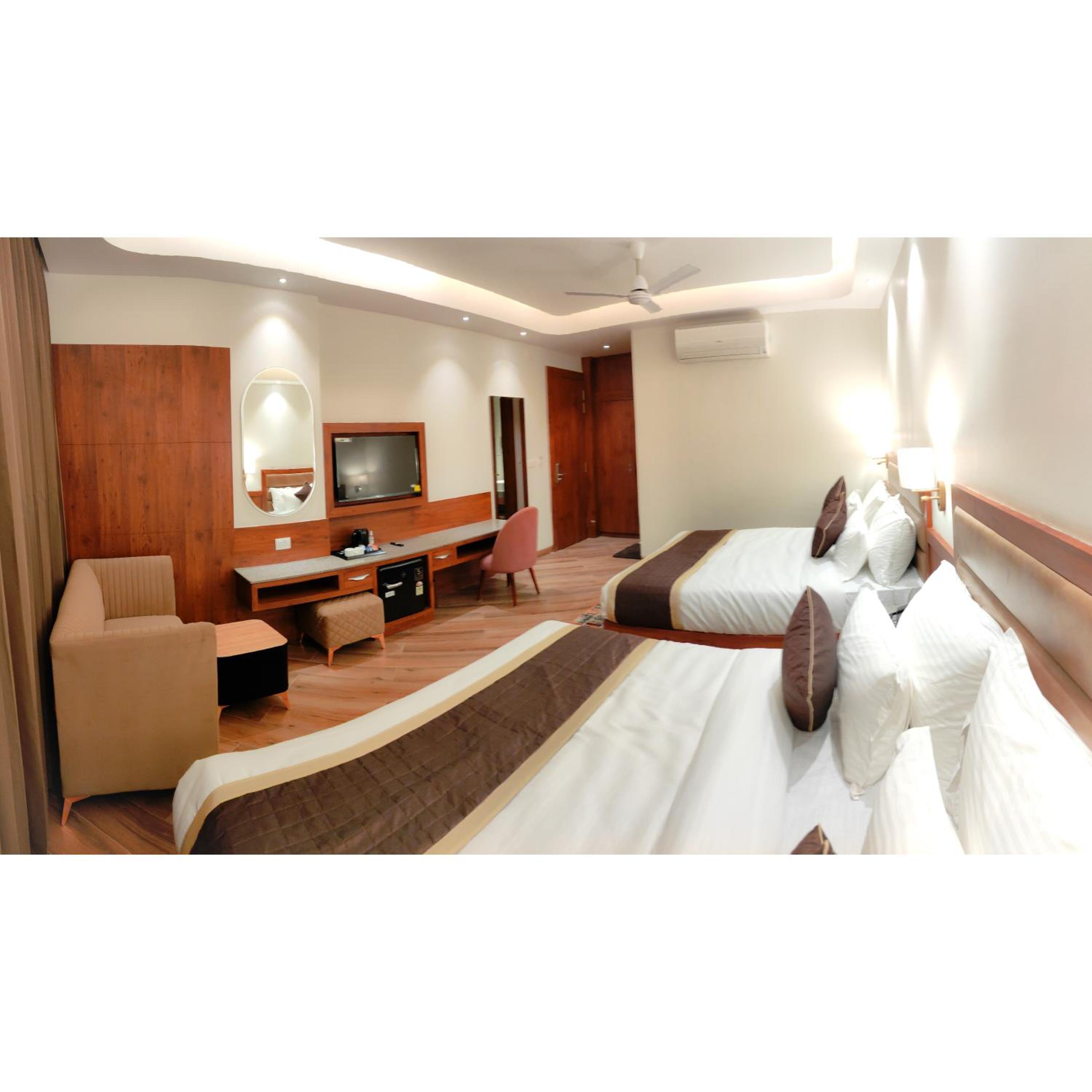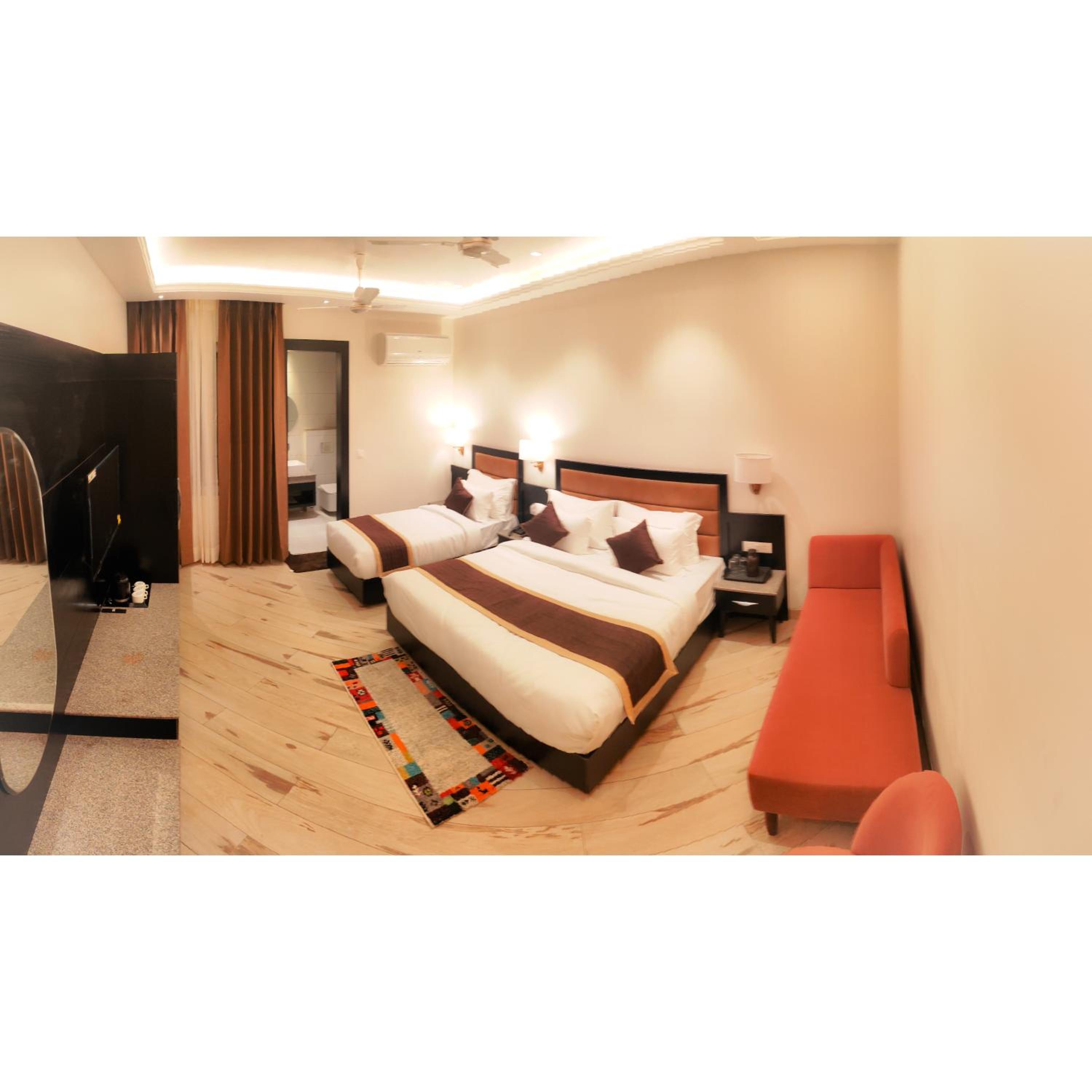 Experience top-notch comfort with air-conditioned rooms, flat-screen TVs, and free toiletries, ensuring a relaxing stay at Hotel The Grand Dewan.