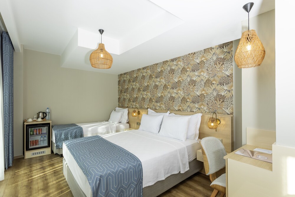 Zorunlu durumdan kaynaklı bir gece konakladık. Akşam saatlerinde, otele varmadan yaklaşık bir saat önce rezervasyonu gerçekleştirdim. Gittiğimizde sorunsuz şekilde odaya giriş yaptık ve her şey temiz, güzeldi. Sabah kahvaltısı çok güzeldi ve çeşitlilik çok fazlaydı. Sosyal alanlarını kullanacak vaktimiz olmadı ama eminim oralarda da çok iyi bir hizmet mevcuttur. Güllük sahile oldukça yakın konumda, denize girmek isteyenler için de uygun bir lokasyon. Havalimanı ile arası, araba ile, 15 dakika civarında. Teşekkürler