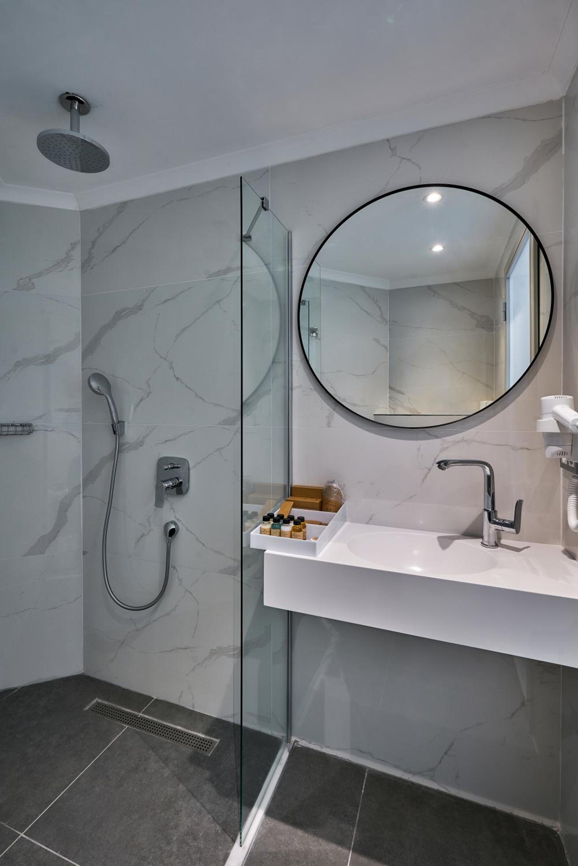 • In de douche ontbreekt een deur of afscheiding, waardoor de hele badkamer telkens nat is en je bezig blijft met drogen.