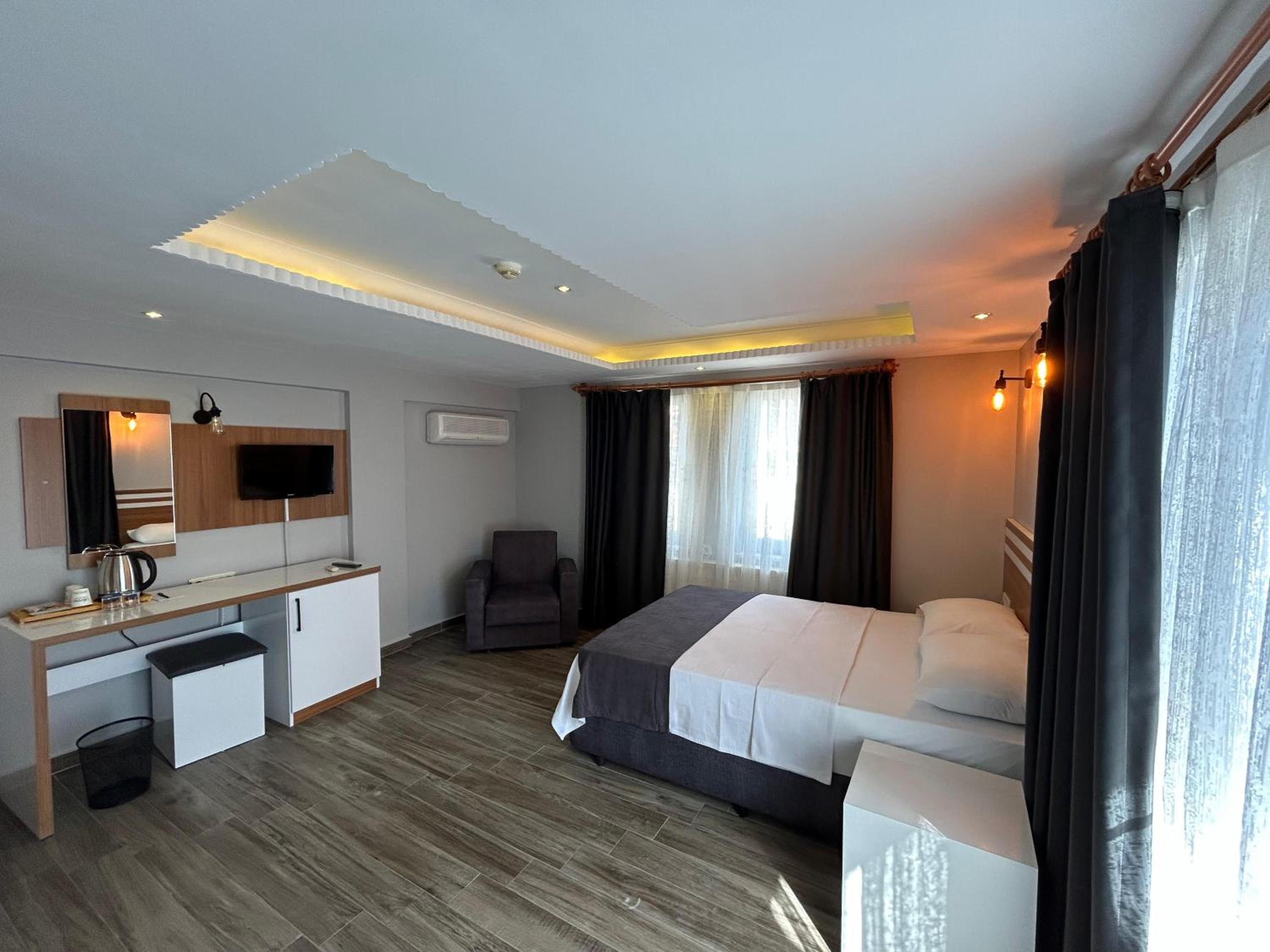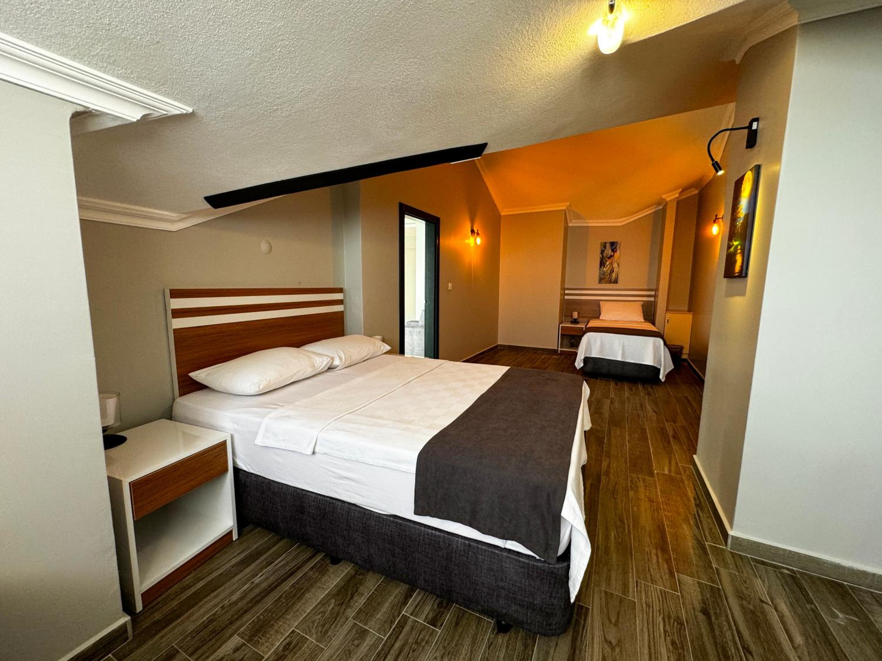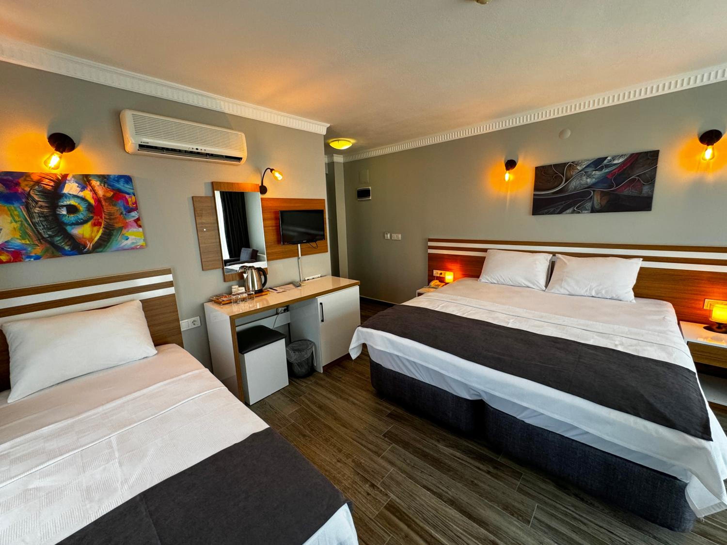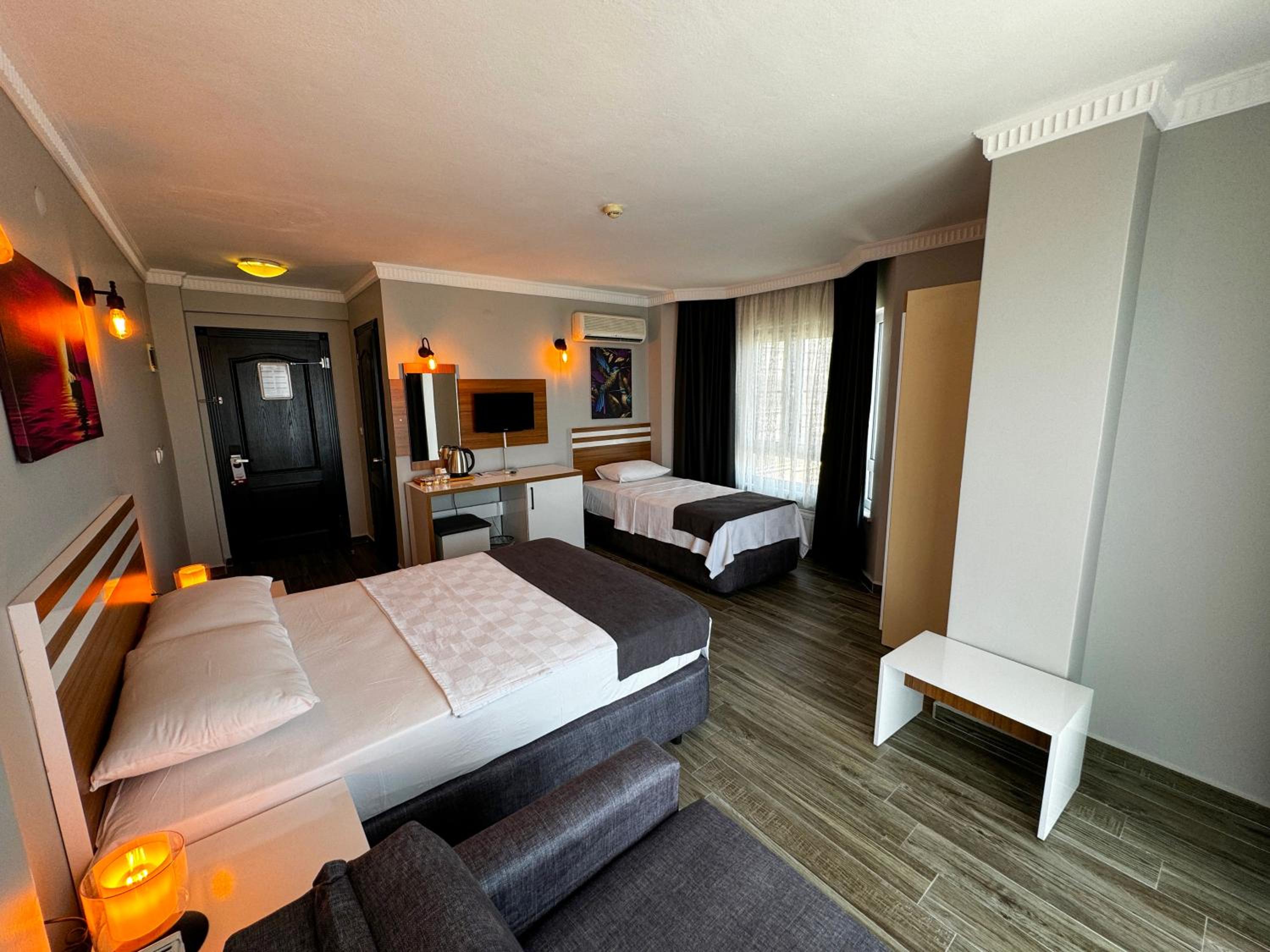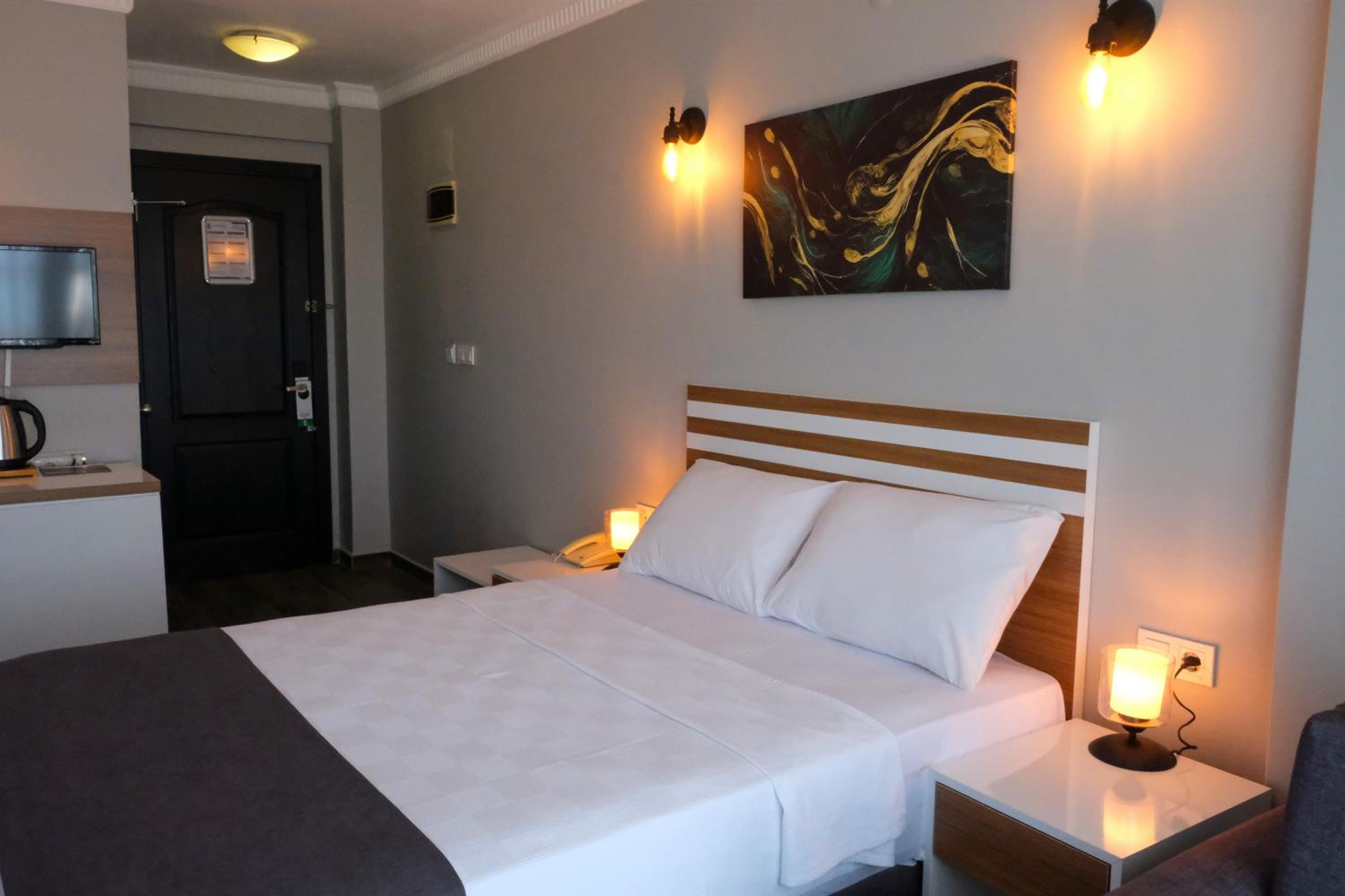 Yalnız kaldığımız iki kişilik oda küçüktü. Klimanın yeri odayı soğutma açısından uygun yerde değildi. Temizliği genel olarak iyiydi diyebilirim. Wi-fi bazen gelip gidiyordu. Bu konuda yükseltici takviyesi yapılmasına ihtiyaç var gibi. Kahvaltısı çok iyiydi yalnız. Yiyebileceğiniz her çeşitte açık büfe şeklinde bir kahvaltı yaptık. Altınoluk merkeze de yakın konumda idi.