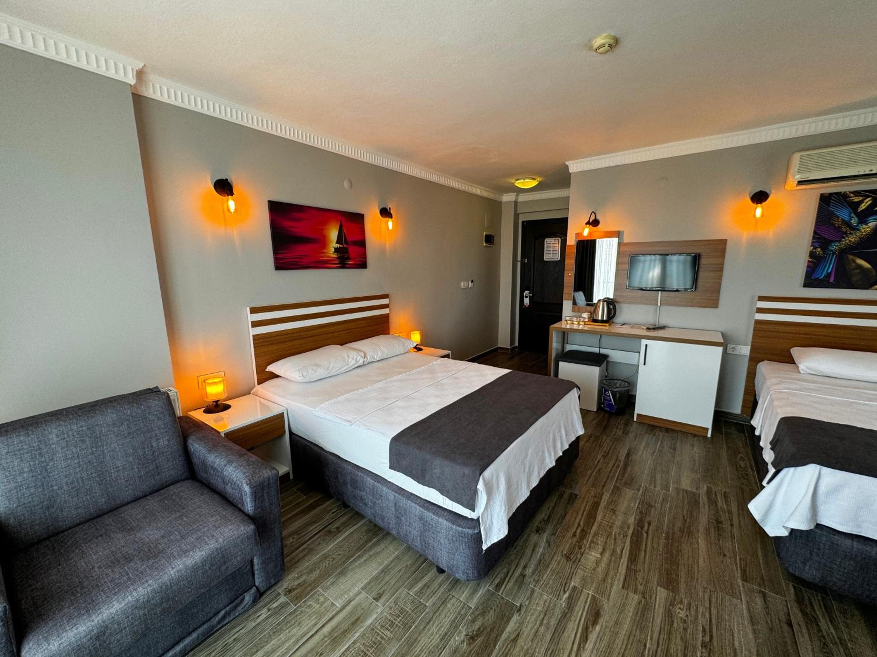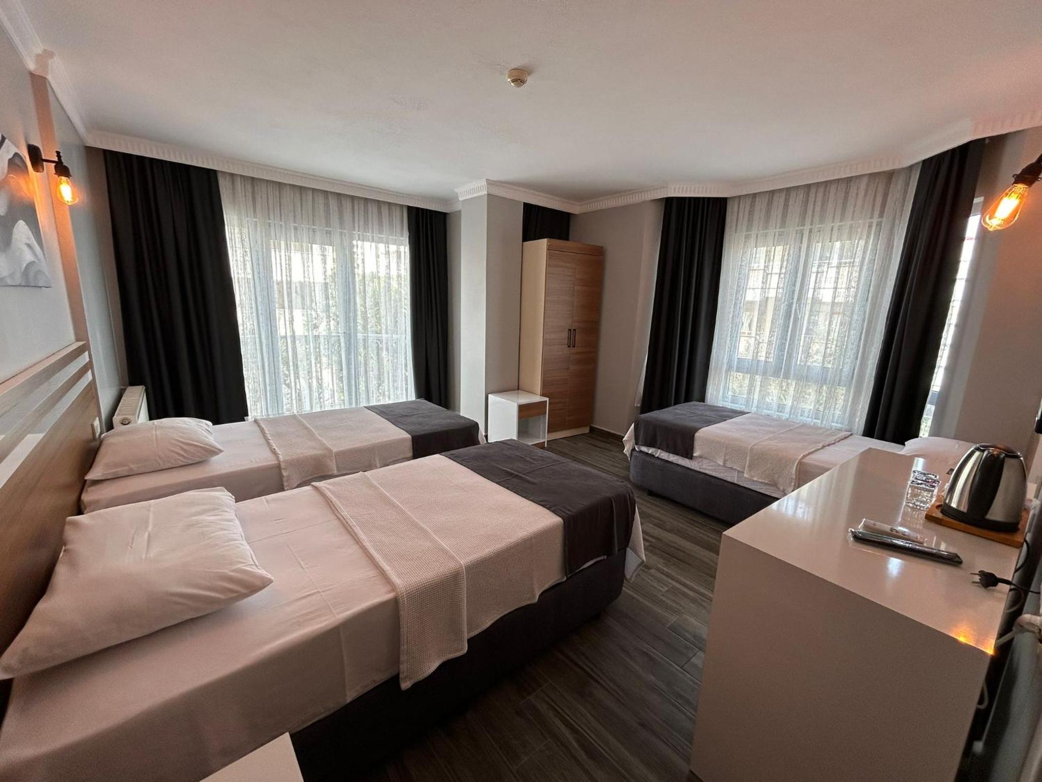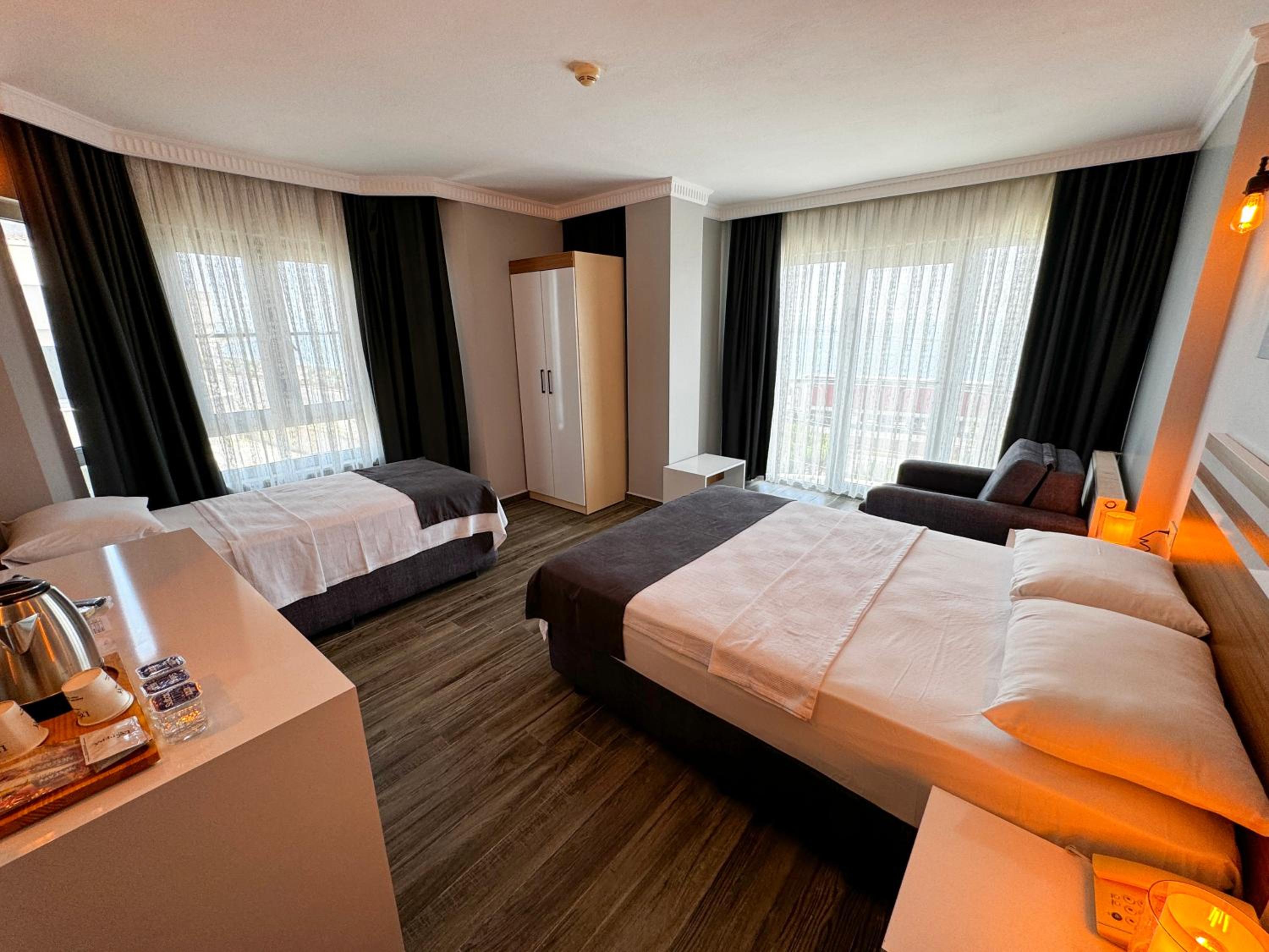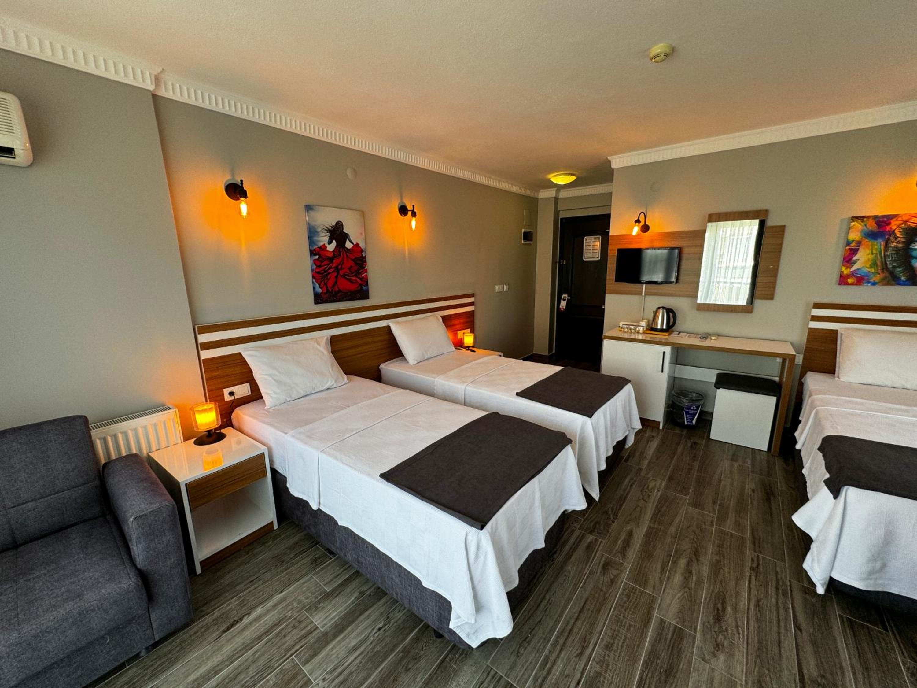 Yalnız kaldığımız iki kişilik oda küçüktü. Klimanın yeri odayı soğutma açısından uygun yerde değildi. Temizliği genel olarak iyiydi diyebilirim. Wi-fi bazen gelip gidiyordu. Bu konuda yükseltici takviyesi yapılmasına ihtiyaç var gibi. Kahvaltısı çok iyiydi yalnız. Yiyebileceğiniz her çeşitte açık büfe şeklinde bir kahvaltı yaptık. Altınoluk merkeze de yakın konumda idi.