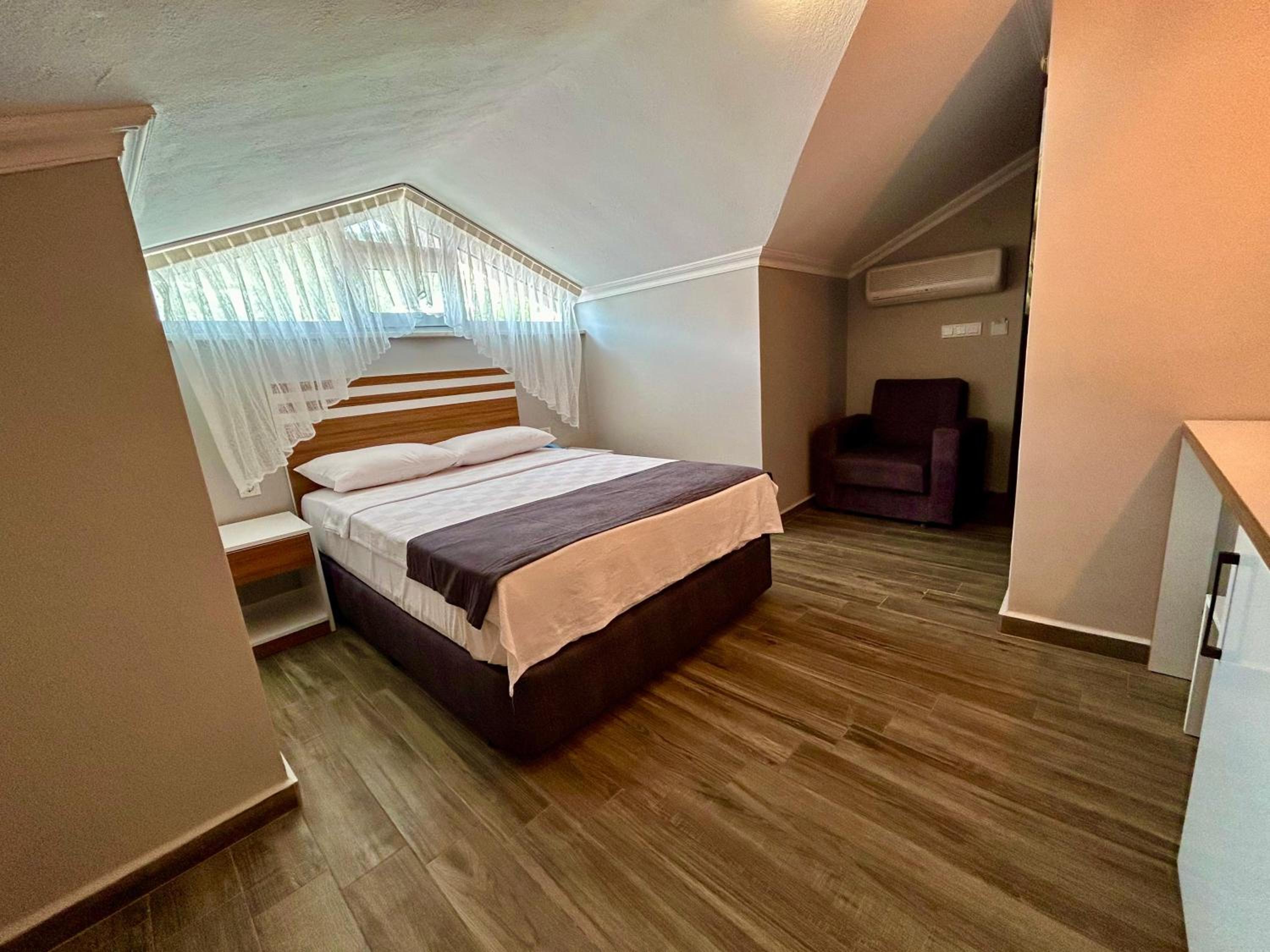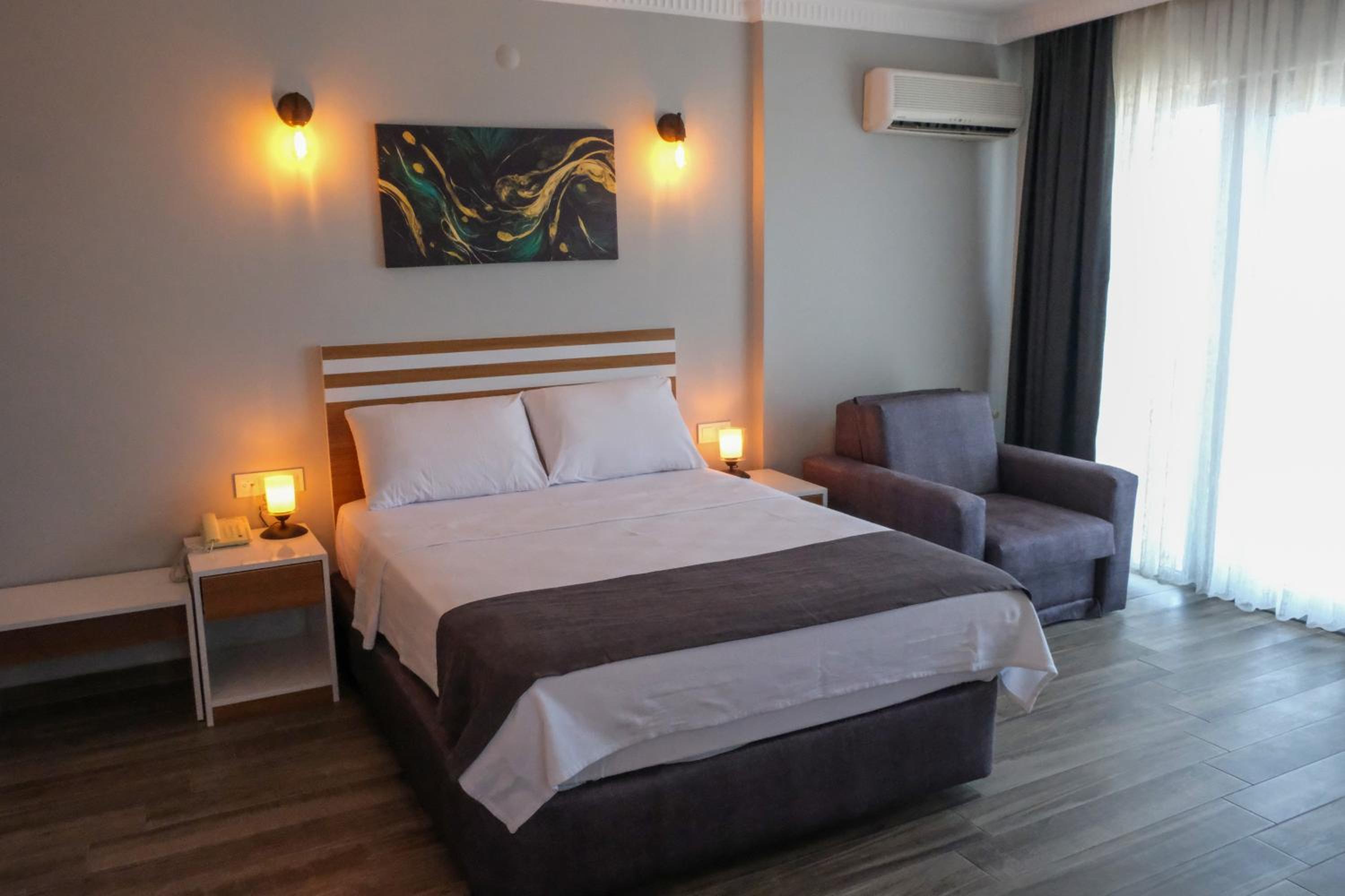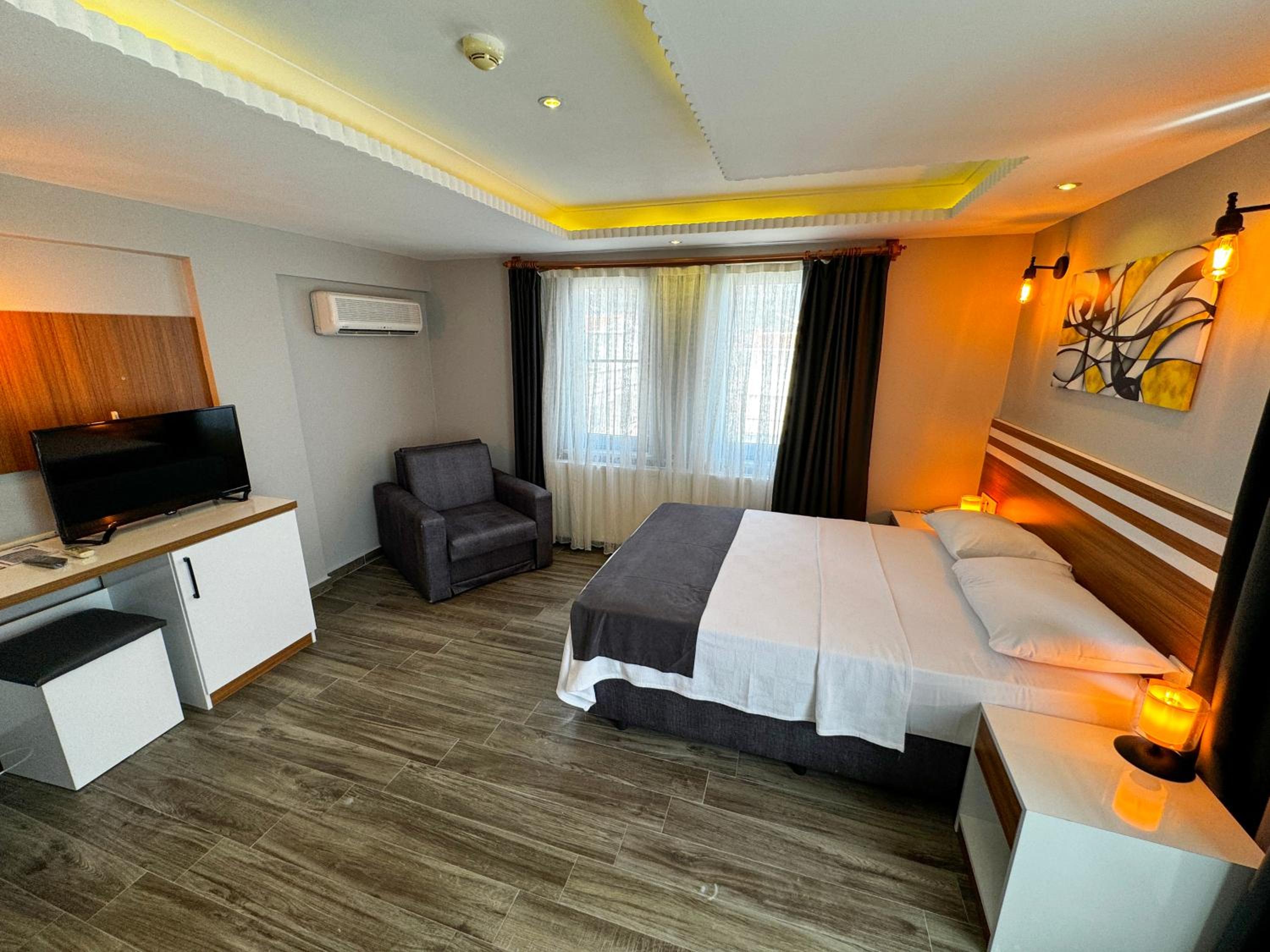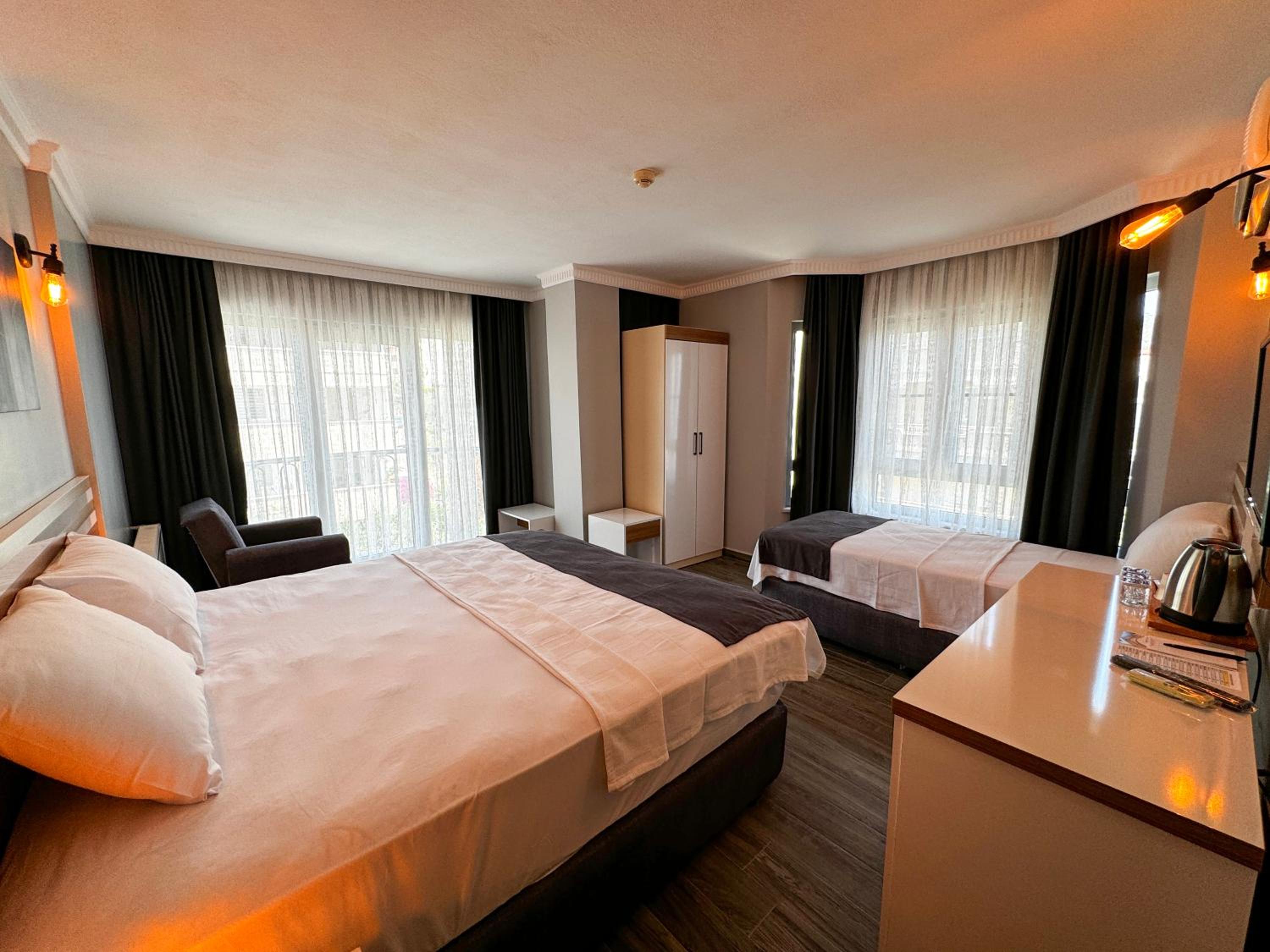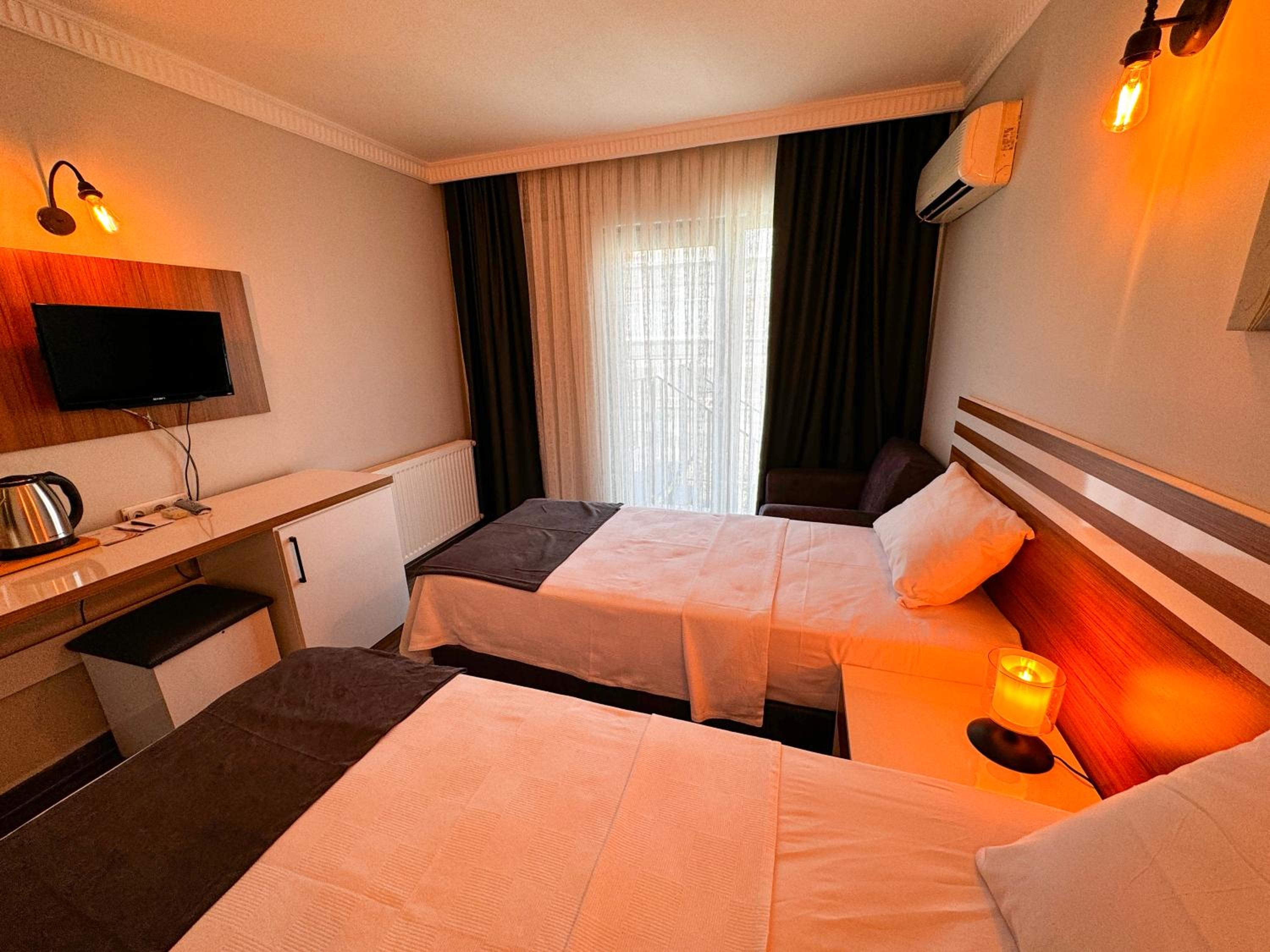 Yalnız kaldığımız iki kişilik oda küçüktü. Klimanın yeri odayı soğutma açısından uygun yerde değildi. Temizliği genel olarak iyiydi diyebilirim. Wi-fi bazen gelip gidiyordu. Bu konuda yükseltici takviyesi yapılmasına ihtiyaç var gibi. Kahvaltısı çok iyiydi yalnız. Yiyebileceğiniz her çeşitte açık büfe şeklinde bir kahvaltı yaptık. Altınoluk merkeze de yakın konumda idi.