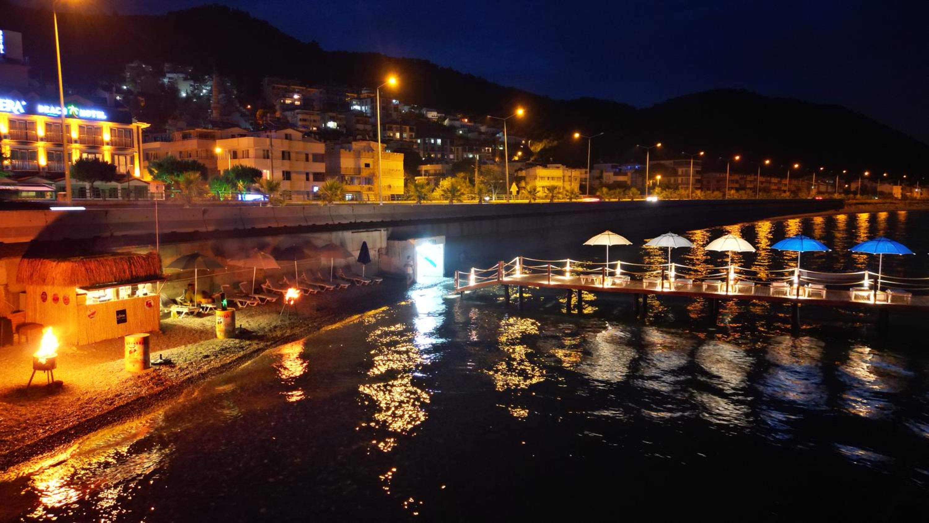 Lopera otelin konumu çok güzeldi. Yolun karşısında deniz vardı. Otelin kendine ait bir plajının olması avantajdı. Şezlong ve şemsiyeleri vardı. Ayrıca birde iskelesi vardı. Deniz genel olarak temizdi.