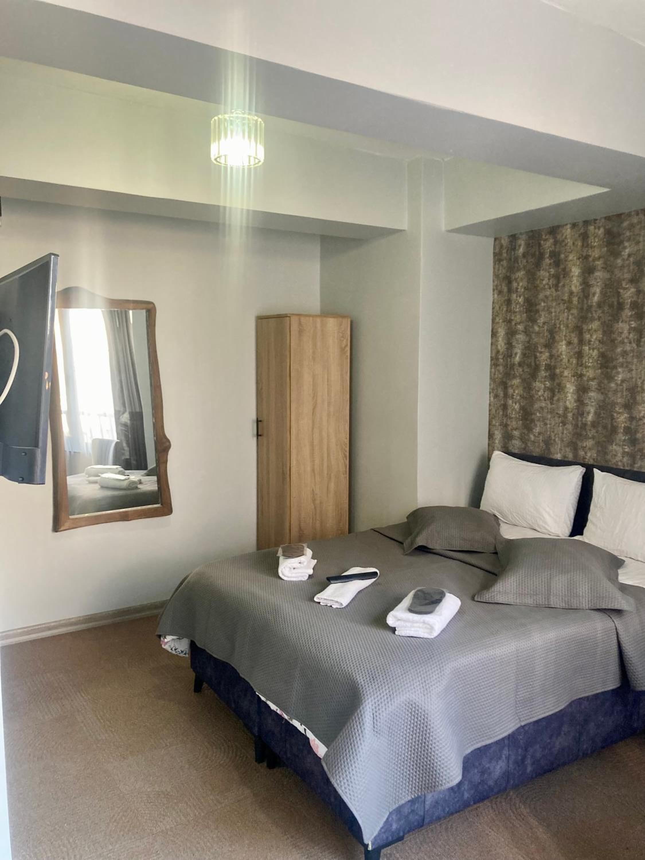 Kesinlikle tavsiye etmiyorum. Öncelikle bina yeni olmasına rağmen oda resmen komple yamuktu. Binanın hiç dayanıklı olmadığını düşünüyoruz. Kapı bozuk tamir etmelerine rağmen yine bozulmuştu. İlk girdiğimizdeki otel görevlisi ile iletişim çok kötü idi. 2 gece kalmamıza rağmen iki gece de rahatsızlık duyduk.