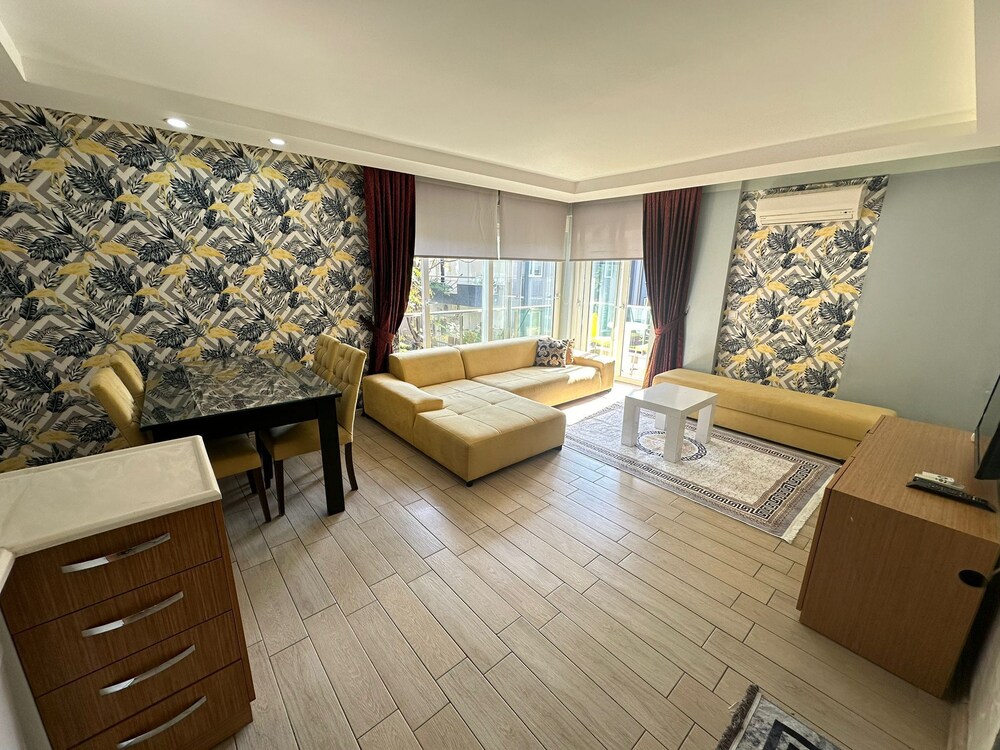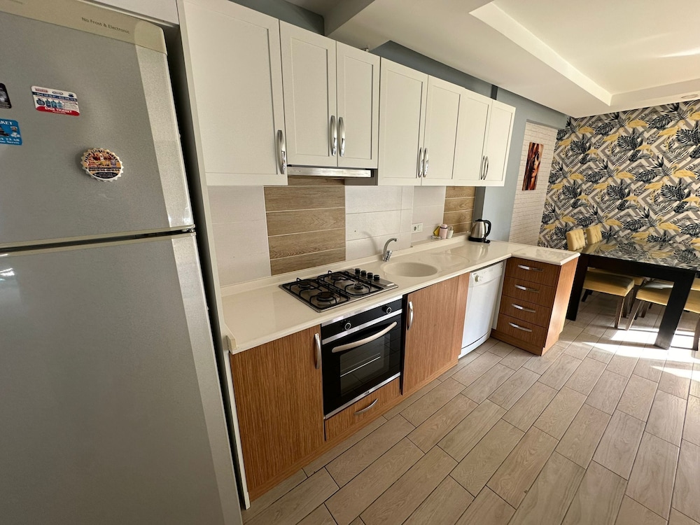 Was a really good spot to stay the teracity mall is 5min walking distance. You can take the bus to market antalya mall you buy a pas for 100 lira and it puts 60 lira on it its only 20 lira each time. The house it self was ok we had 2 bedrooms 2 with people there wasnt enough privacy. I wish there was more to cook with. And more blankets and towels. Overal it was ok. You can wash clothes and hang them outside. There is a fridge, dishwasher and a stove with oven to cook. Wifi was ok sometimes weak on certain spots. Communication was really good only the adres wasnt correct its close by like 3min but with th3 taxi it was difficult when we took all the suitcases out