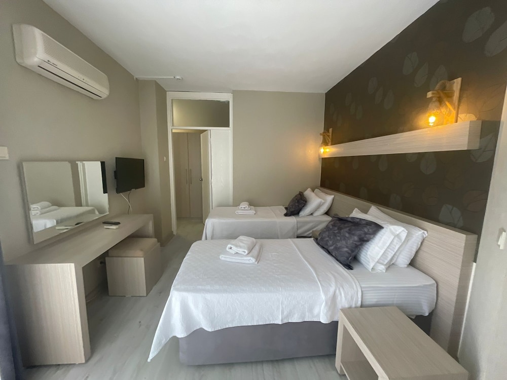 İki gece konakladık. Çok samimi, yardımsever, saygılı çalışanları olan bir işletme. Kendinizi evinizde hissedebilirsiniz. Kahvaltıları yeterli. Pişi ve patates kızartmalarını taze taze getiriyorlar. Oda ferah ve temizdi. Sıcak su ve klima sorunsuzdu. Tam bir fiyat performans oteli. Çeşme çarşıya yürüme mesafesinde. Her yere çok yakın. Park sorunu yok. Tavsiye ederiz. Teşekkürler.