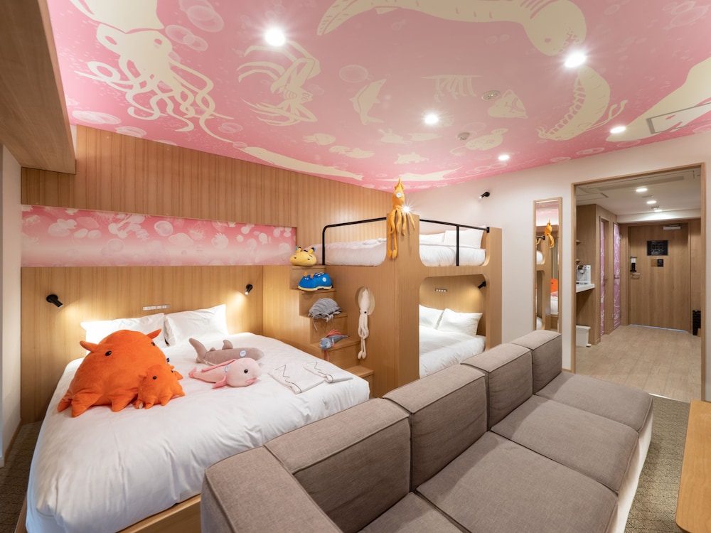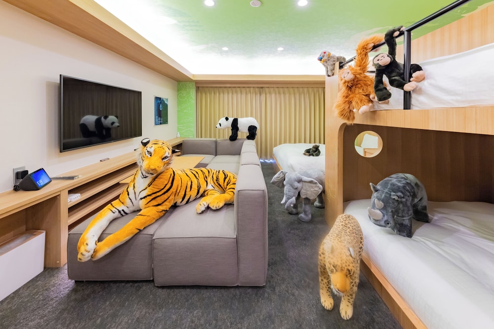 動物ぬいぐるみ&2段ベッドで9歳7歳の子は大満足。2歳の子供も危ない場面はなく楽しめました。