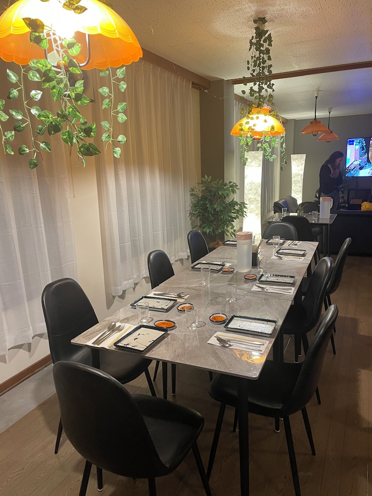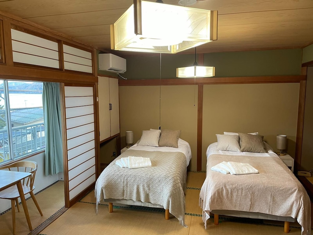 This hotel is family run, with attentive and friendly host. The host invited my daughter to watch a Ghibli movie with their kids in the common area, and then served treats during the movie. The breakfast was excellent (variety of cereal, granola, bread, yogurt as well as hot breakfast made fresh with a salad). The beds were comfortable and one of our rooms had a toilet and bath/shower in the room. The other room used the shared toilets. There was a washer and dryer free and easy to use. The hotel is located within a short 5 min walk to Nojiriko Village docks, restaurants and shopping. The hotel is older, with some areas showing wear (e.g., tiles missing or taped to bathroom wall so they don’t fall off).