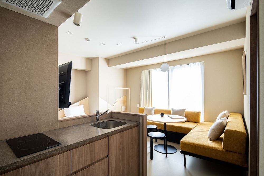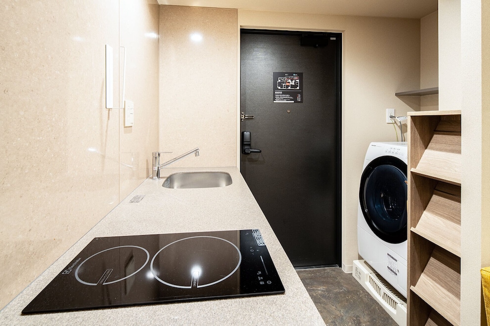 Staff was helpful and hospitable, always greeted us with a smile. They speak perfect English, which was great for us because we do not speak Japanese. The location was in quiet and peaceful neighborhood, but close to all important sites. We would often walk and not use public transportation. A few lines of public transportation are just 5 minutes away, so that was great. The room is very clean and comfortable, with all the appliances you could need. All appliances are very high quality, not the cheap ones hotels usually use. The only minus is the lack of natural light in the room. The window is close to the adjacent building, so not a lot of light can pass through.
