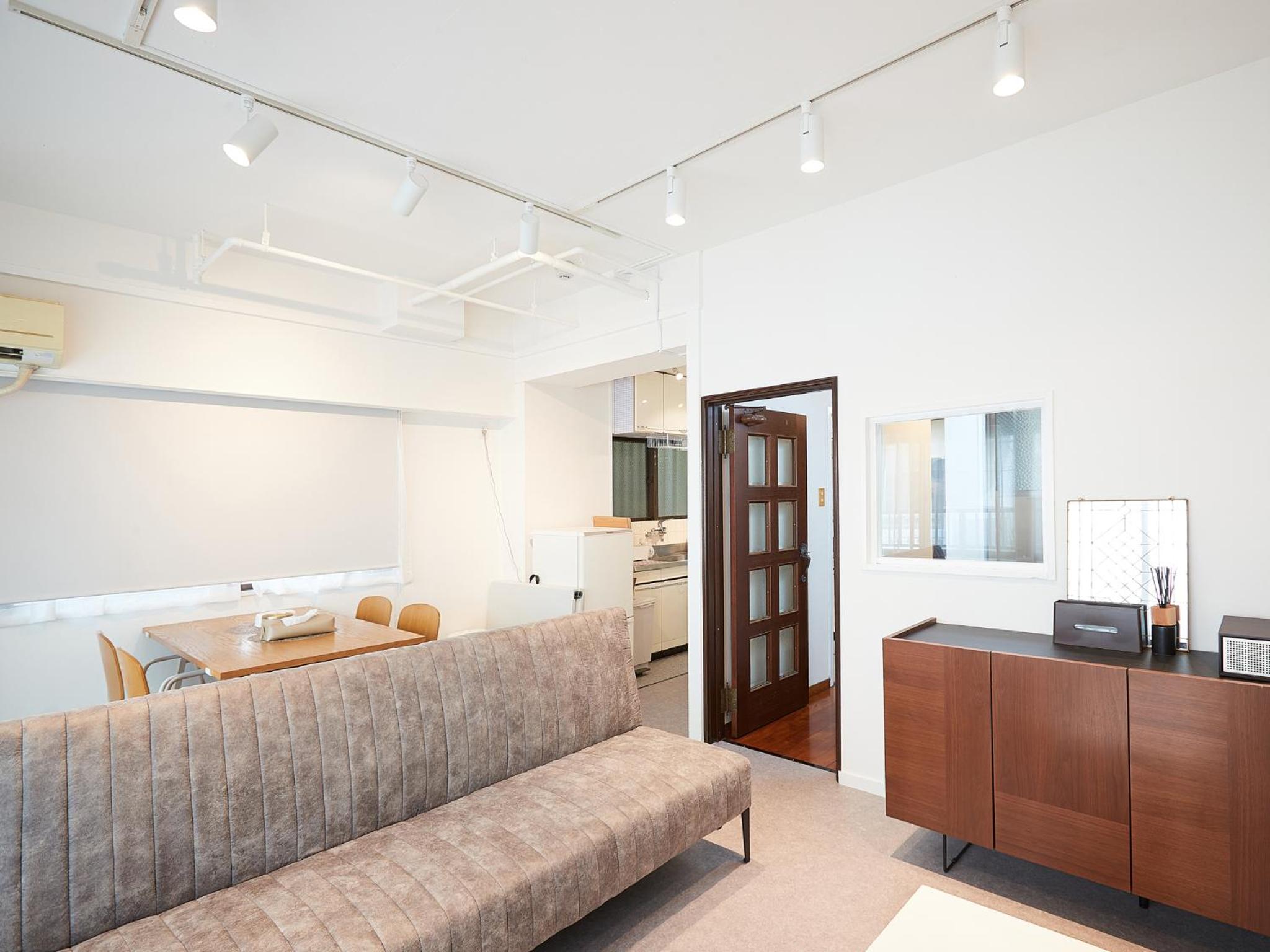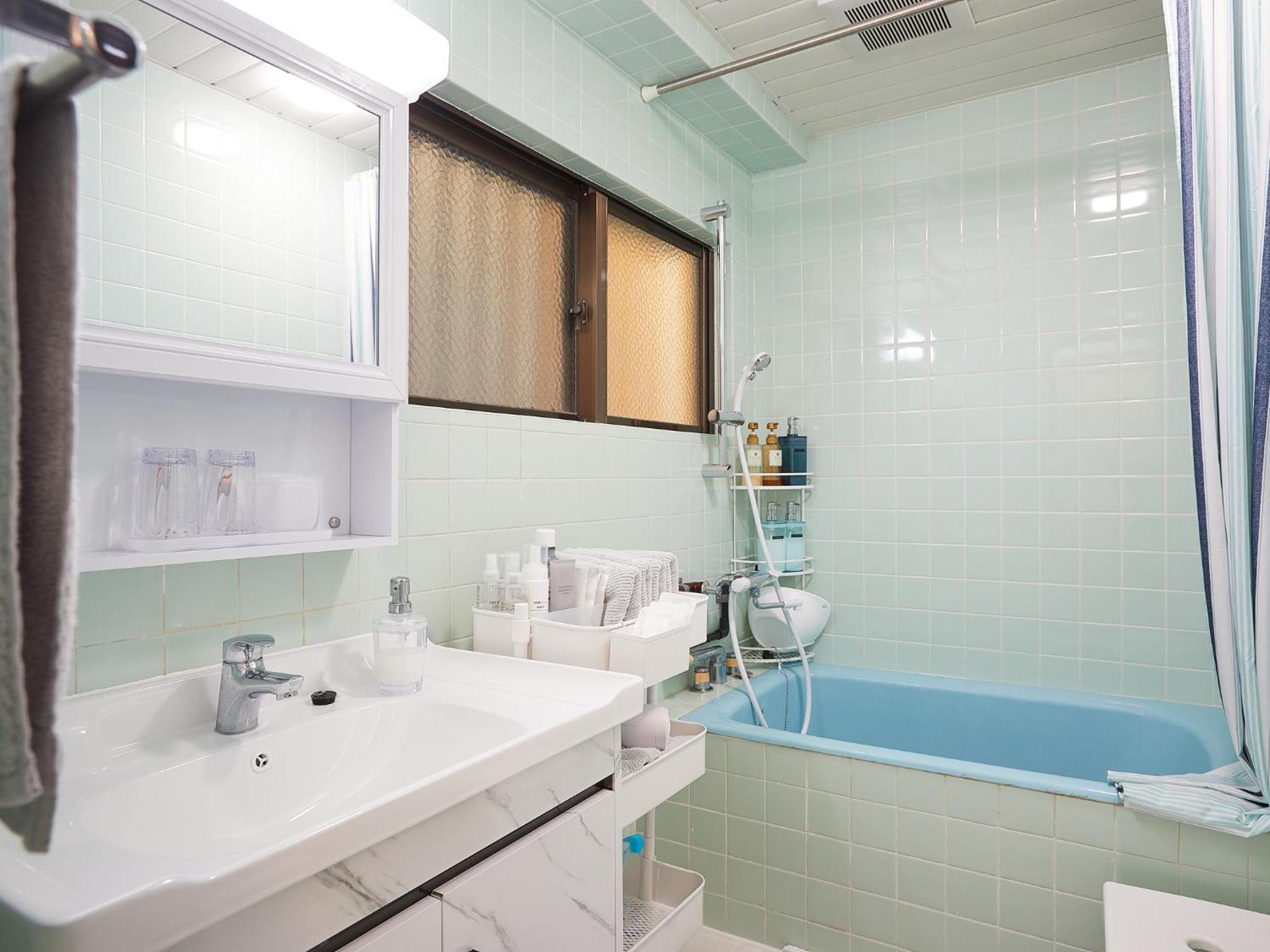 空間相當寬敞,第一次在日本住到這麼大的民宿,還有一個梳妝台。盥洗用具備品品質相當好。還有嬰兒推車、嬰兒用餐桌椅。