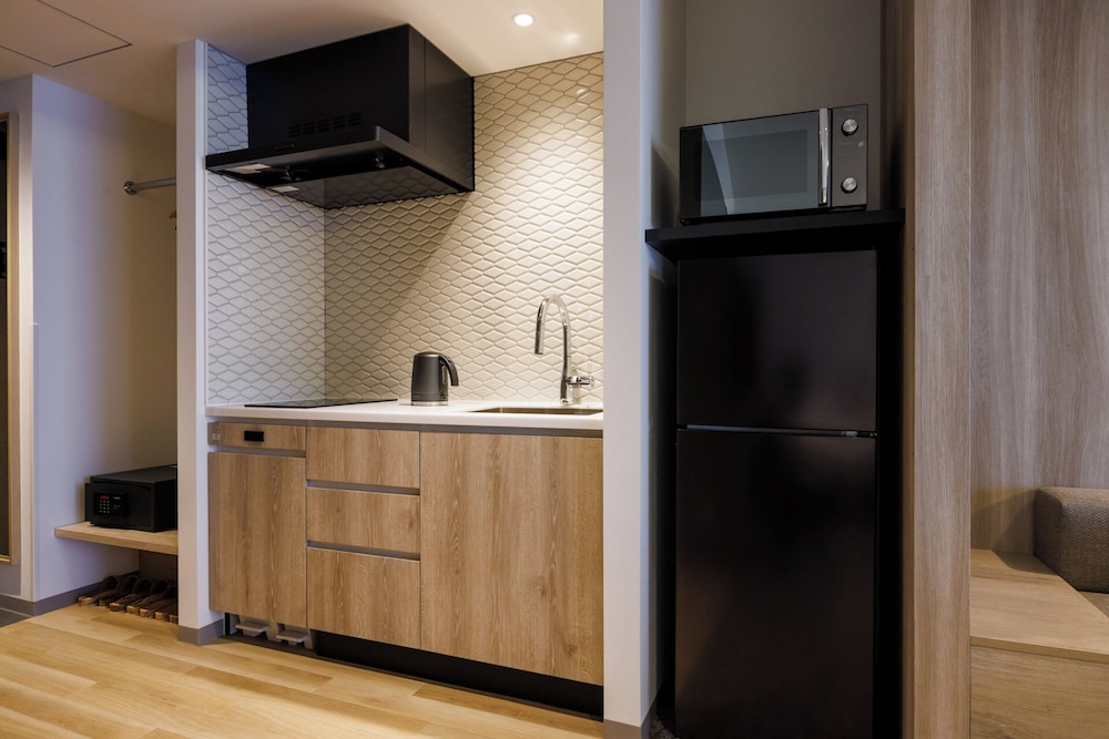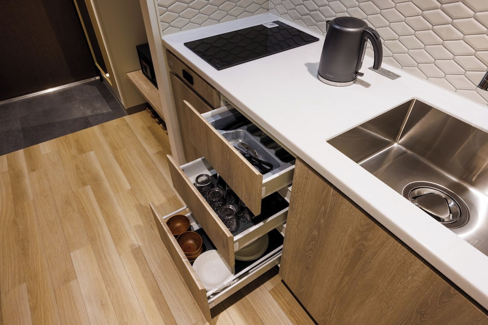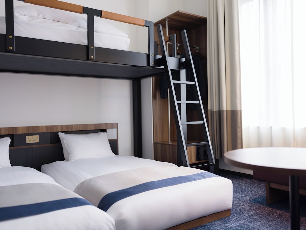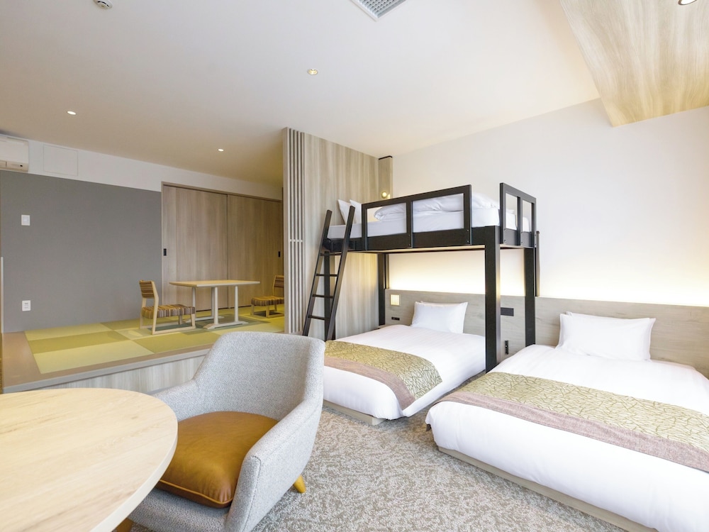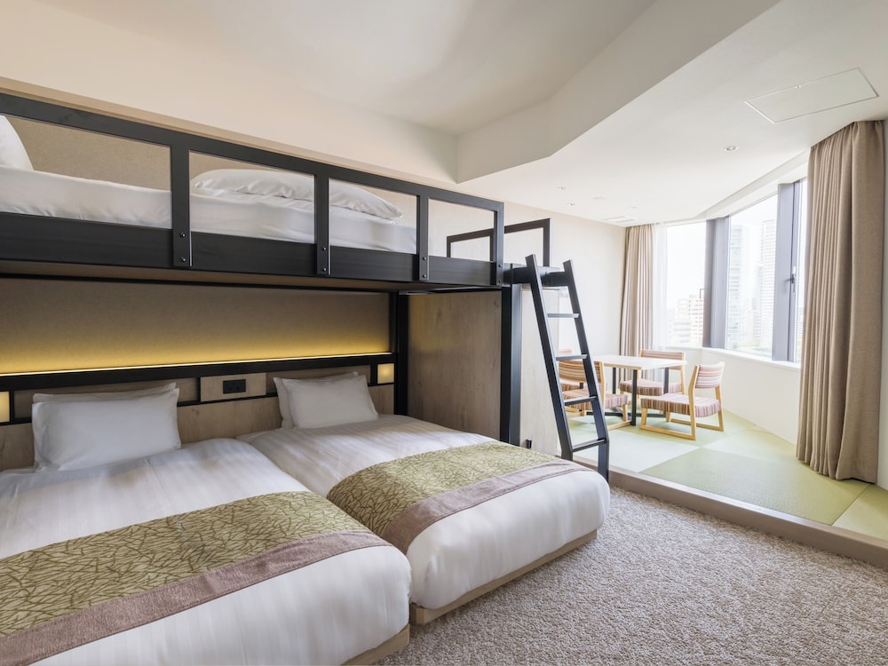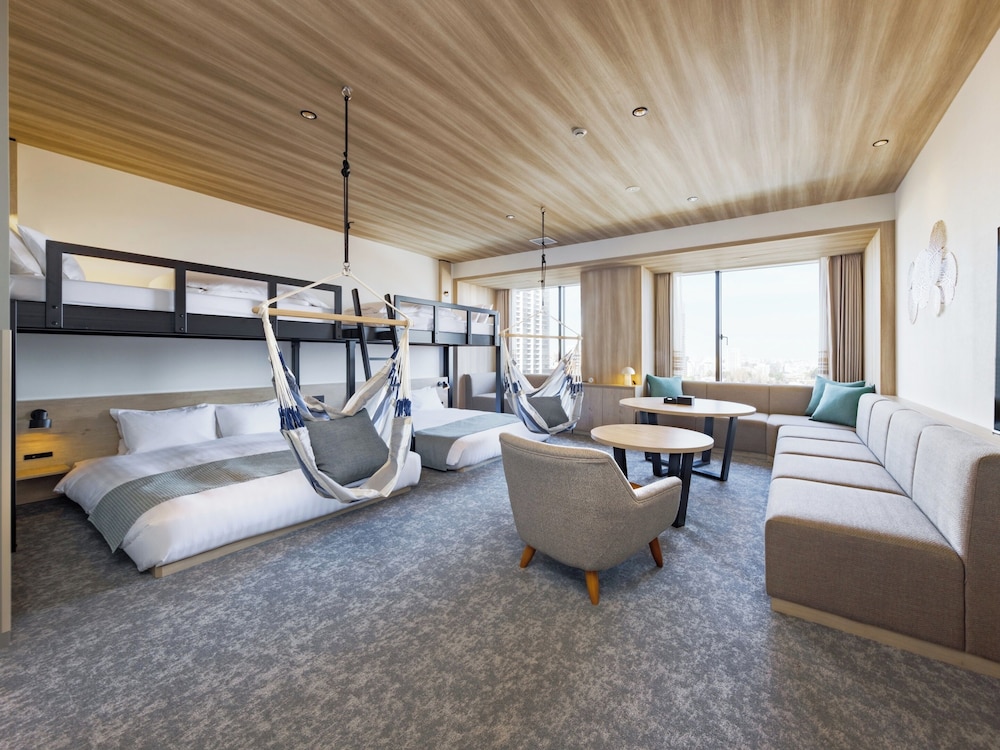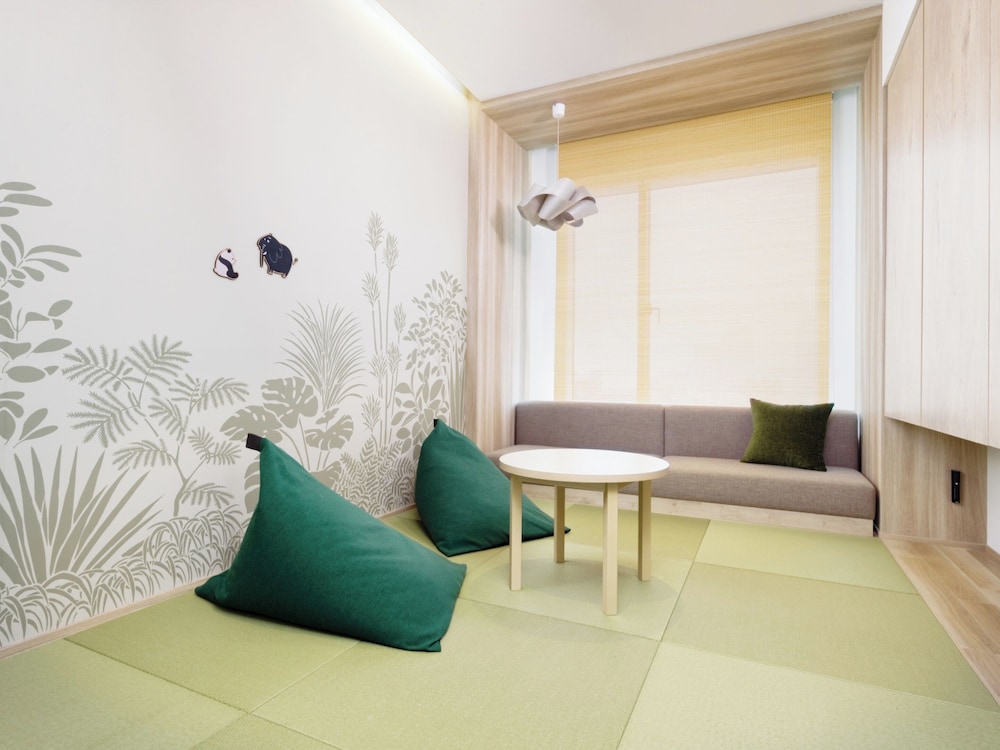 The property was well placed and very interesting in its construction with open corridors. It is directly opposite the park which houses the zoo and the museums as well as temples. The hotel itself had a rooftop onsen too. Our room was spacious with a full kitchenette. My daughter loved the bunk bed aspect! The hotel has its own cafe which was a good bonus. The quiet zen like hotel was a contrast to the busy Ueno streets and bars not far away. It is also only moments from Ameyocho shopping street and the Sanrio Garden cafe both of which were great for the final leg of our trip. I would definitely stay at otherwise &Here hotels.