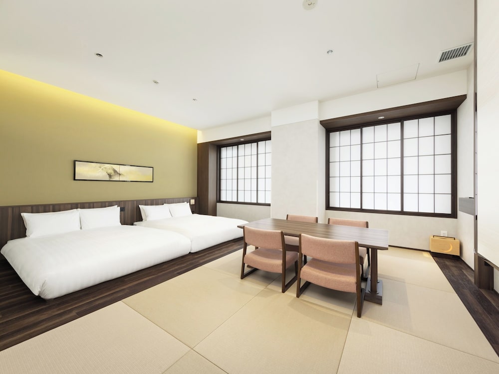 Quieter area of Ueno, right by Ueno Park. Also less than 10 mins from a metro station. New hotel, clean, lots of amenities provided. We got the triple bed with bunk - it was spacious and there was a mini kitchen too which was nice. Would stay here again!