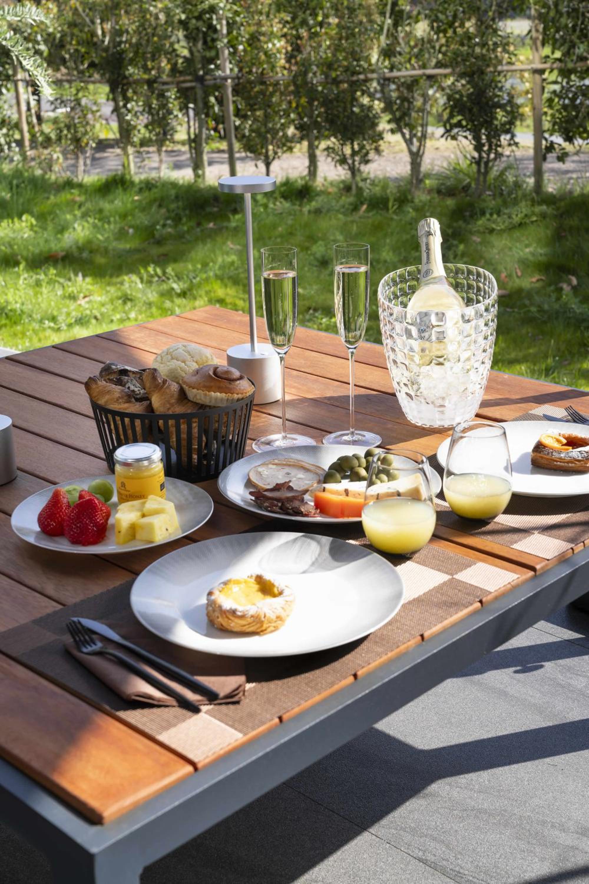 Tasty fruit, fresh. Great warm pastries, fresh juice, fermented eggs. The location is very nice, in nature but also easy to reach everywhere. Fresh air, beautiful views, uncrowded. Very modern, very clean. Room is huge, nice living area. Staff was lovely and responded immediately to reservation and info request.
