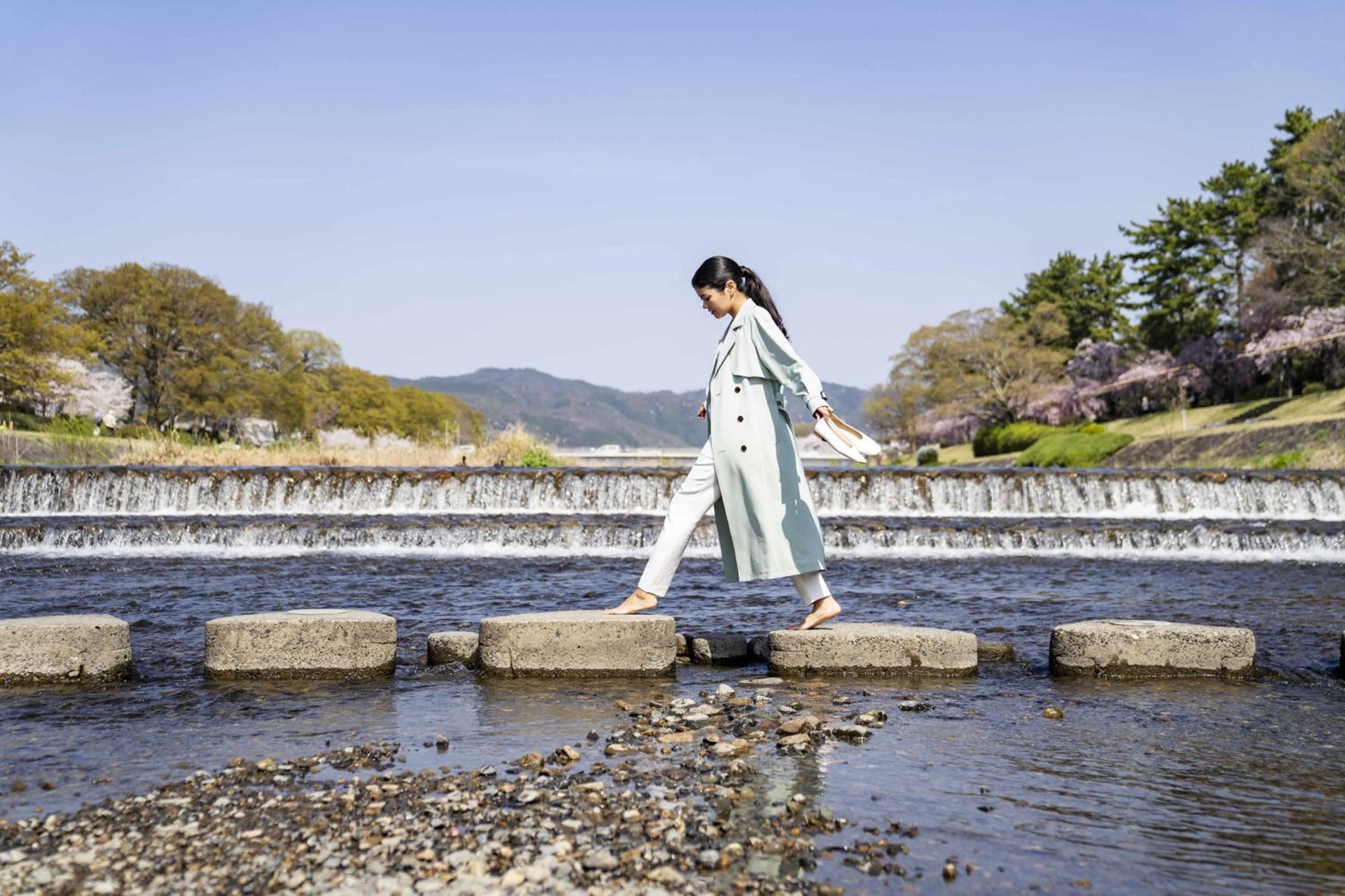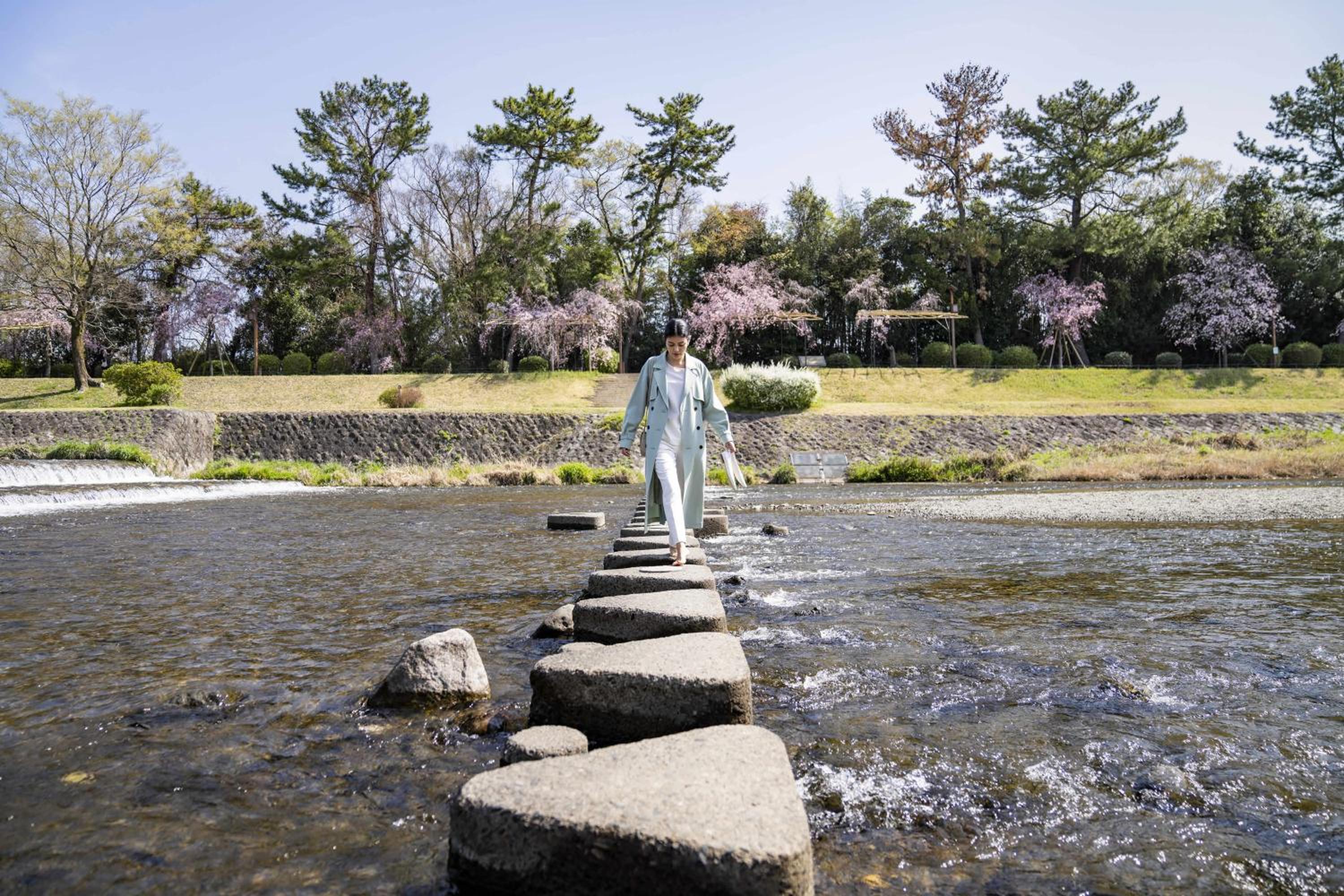 窗外几步之隔就是鸭川跳跳石。