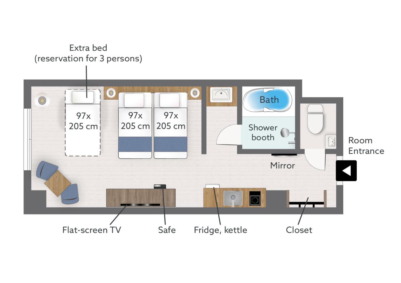 All rooms feature Valpas smart bed legs, ensuring a safe and bedbug-free stay.An accommodation tax per person, per night is not included in the price and must be paid at the property.