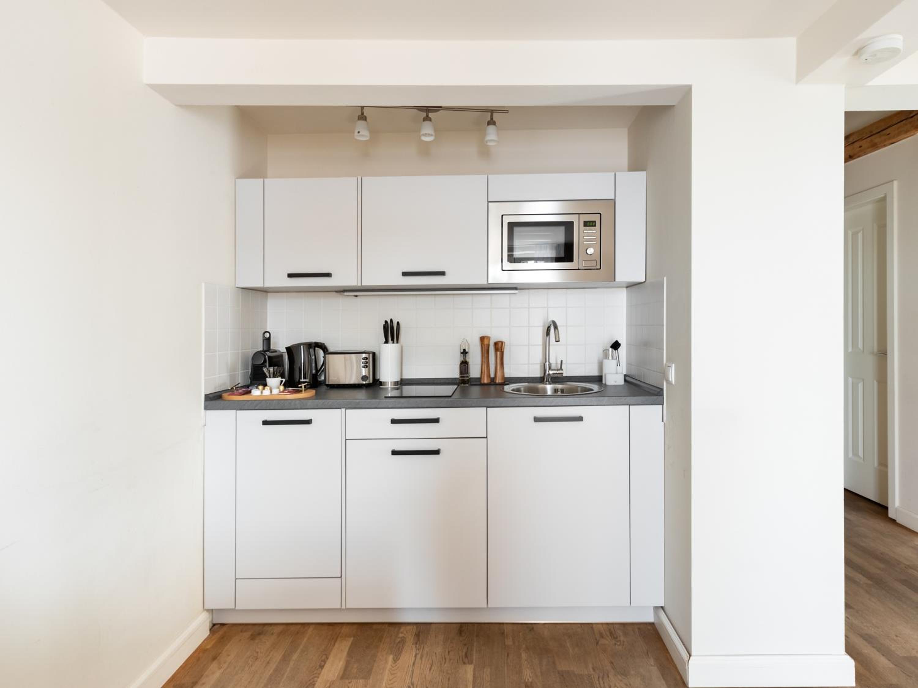 Modern Amenities: Schoenhouse City Street offers fully equipped kitchenettes, flat-screen TVs, and free WiFi in all units.