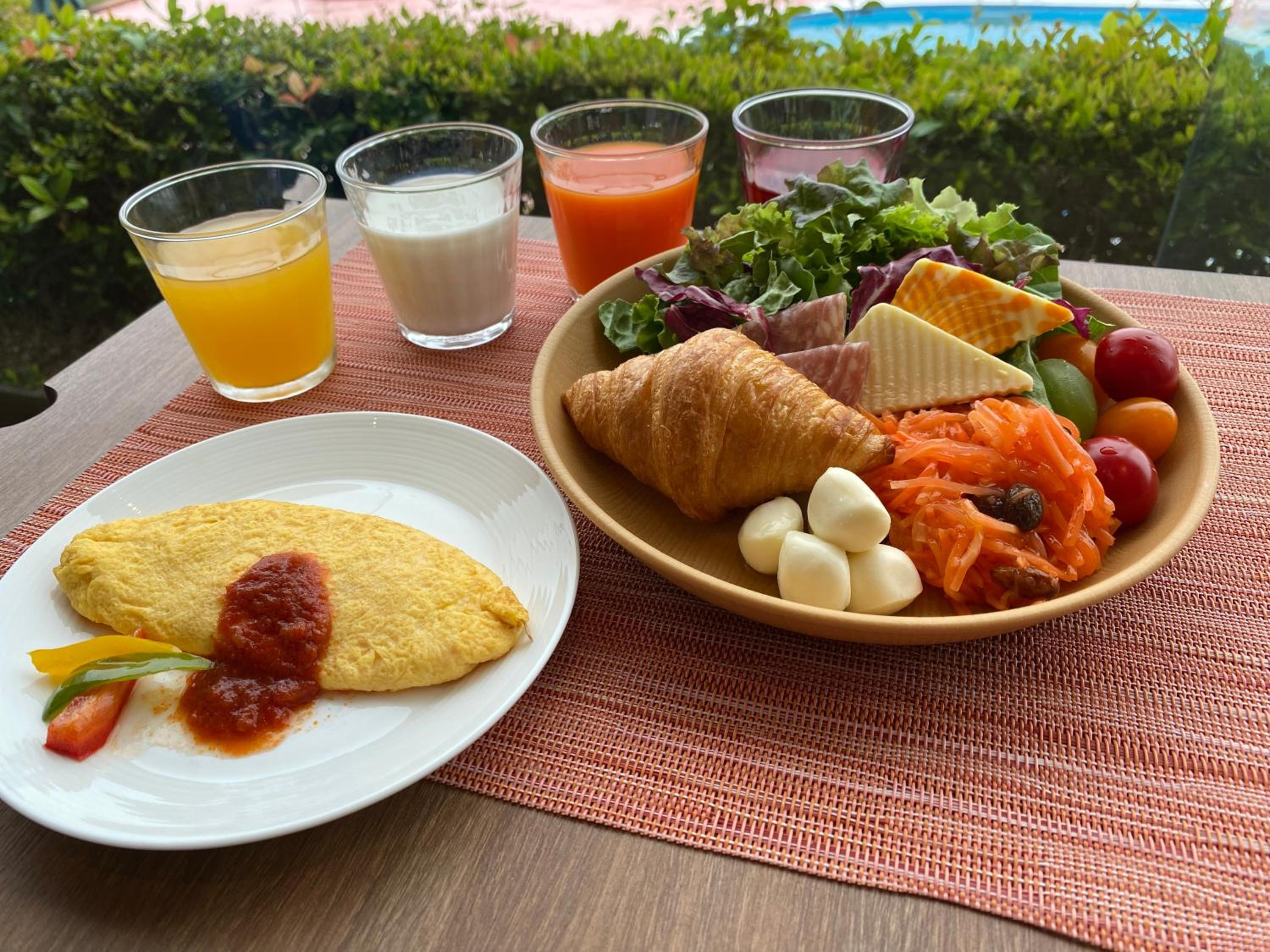 朝食のバイキングは種類が豊富で大満足だった。夕食のフルコースや入浴施設も併せて十二分以上に満喫させていただいた。