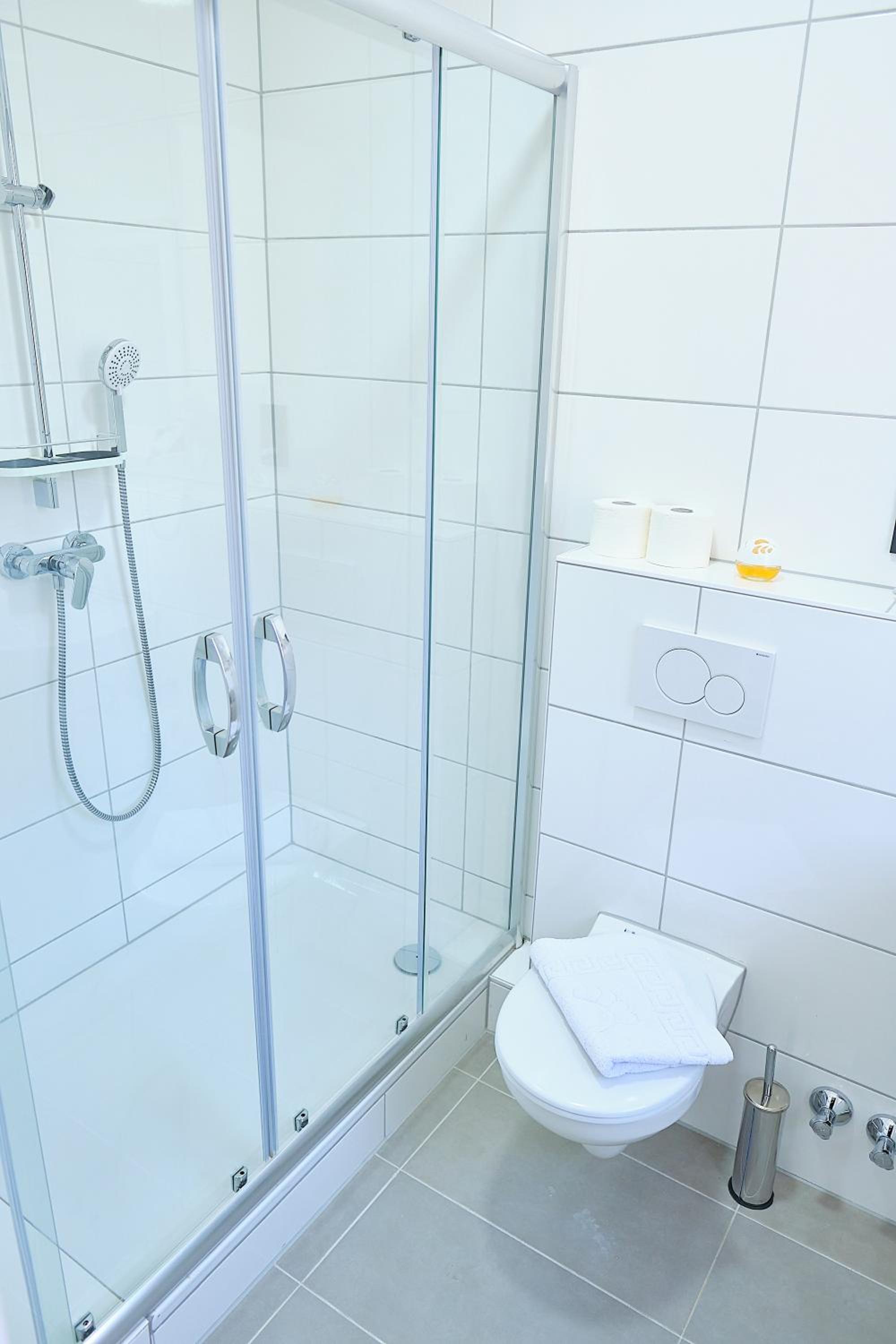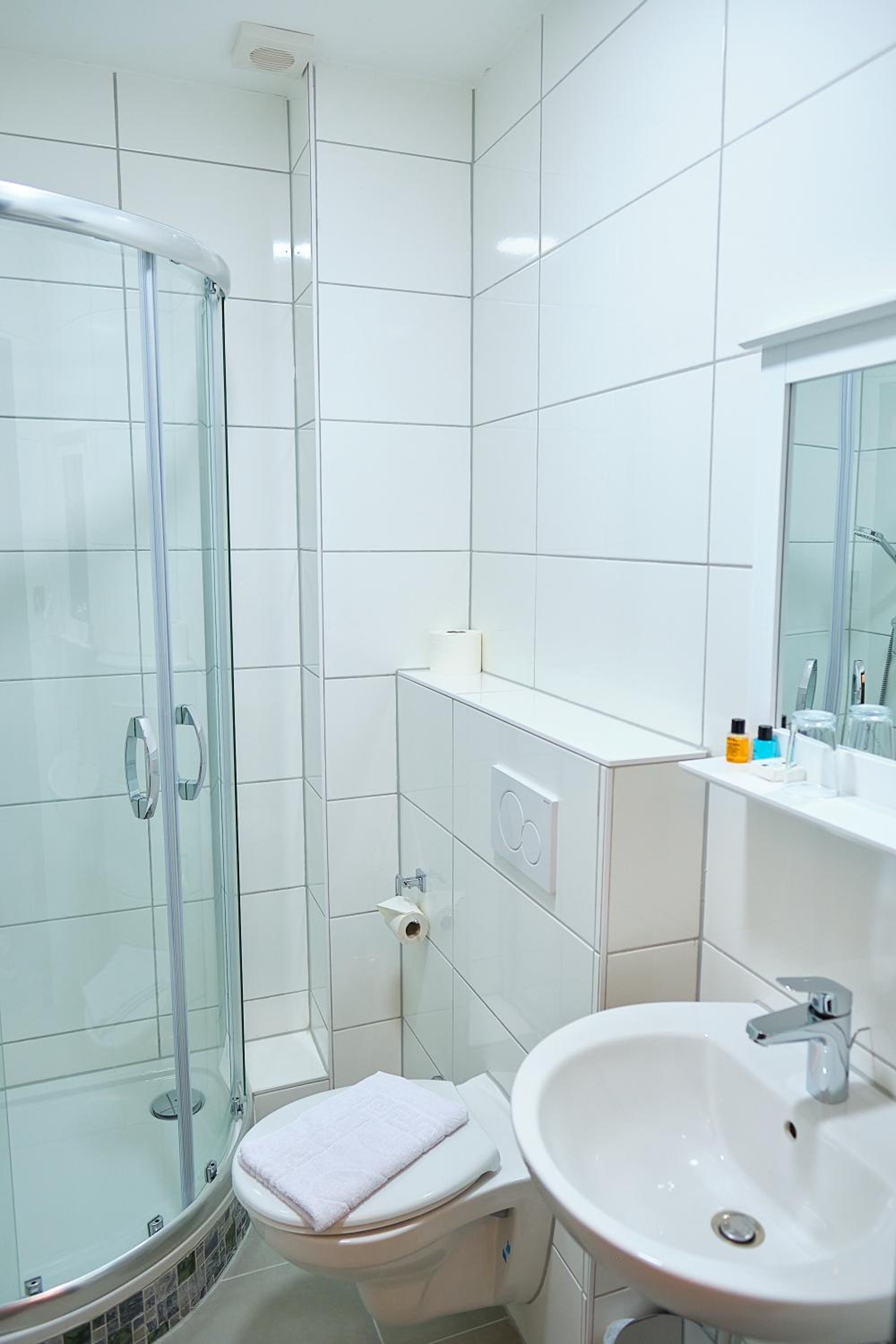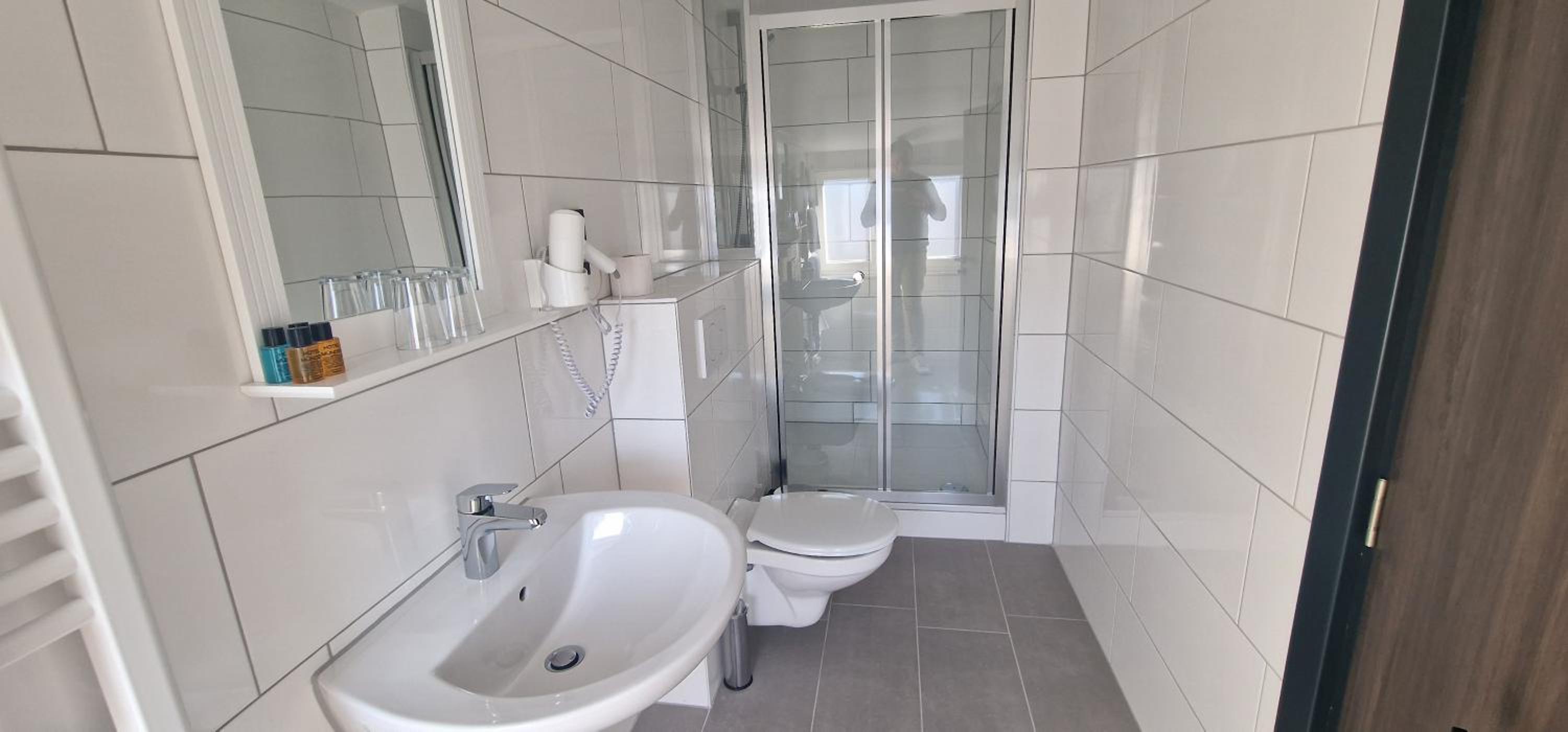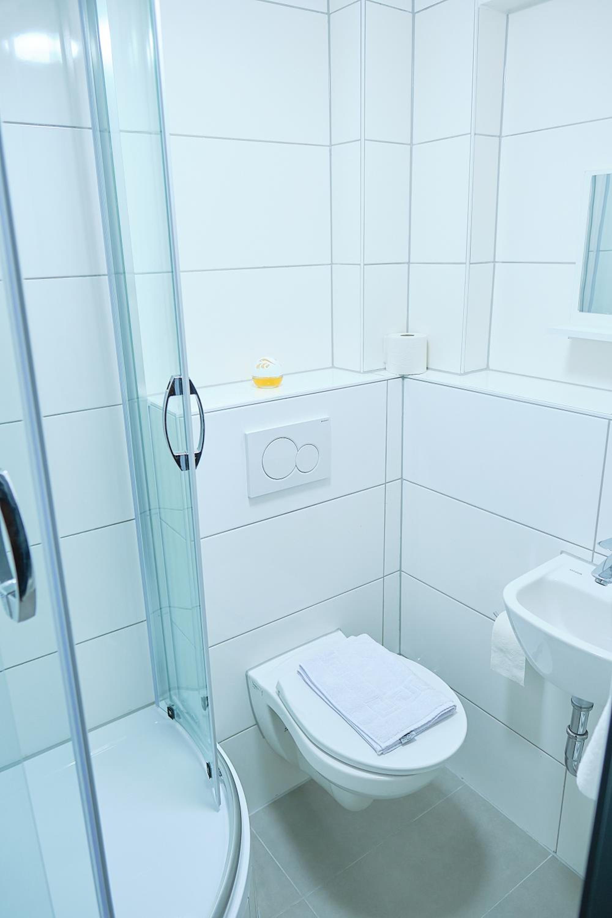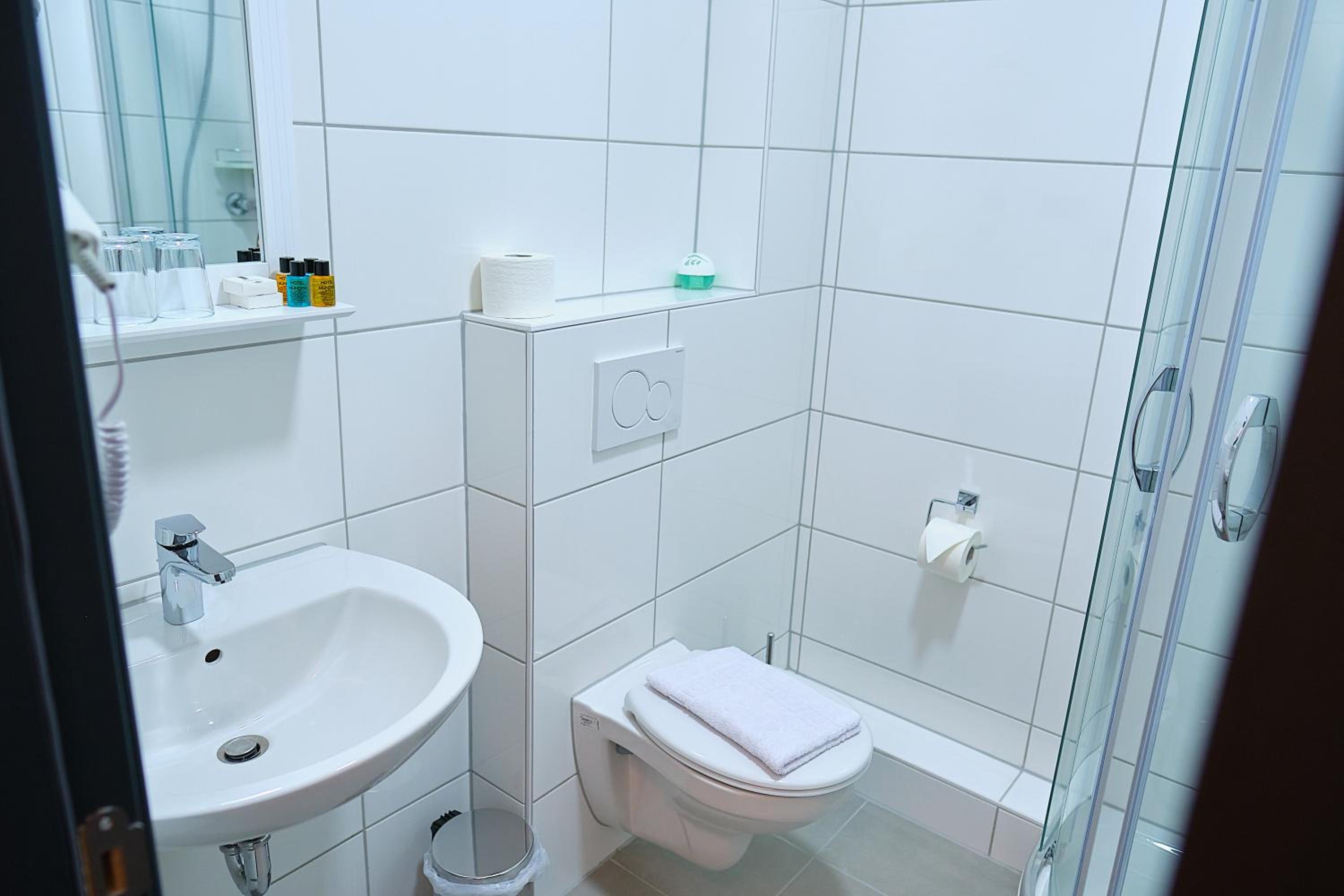 Quer auf der Toilette sitzen weil die Dusche direkt davor stand,kein Roomservice Handtücher Toilettenpapier alles nur auf Nachfrage,während des Frühstücken wurde der Boden gewischt,kein Aufzug(4Stockwerke),Preis-Leistng empfand ich als zu teuer (für unser Zimmer)