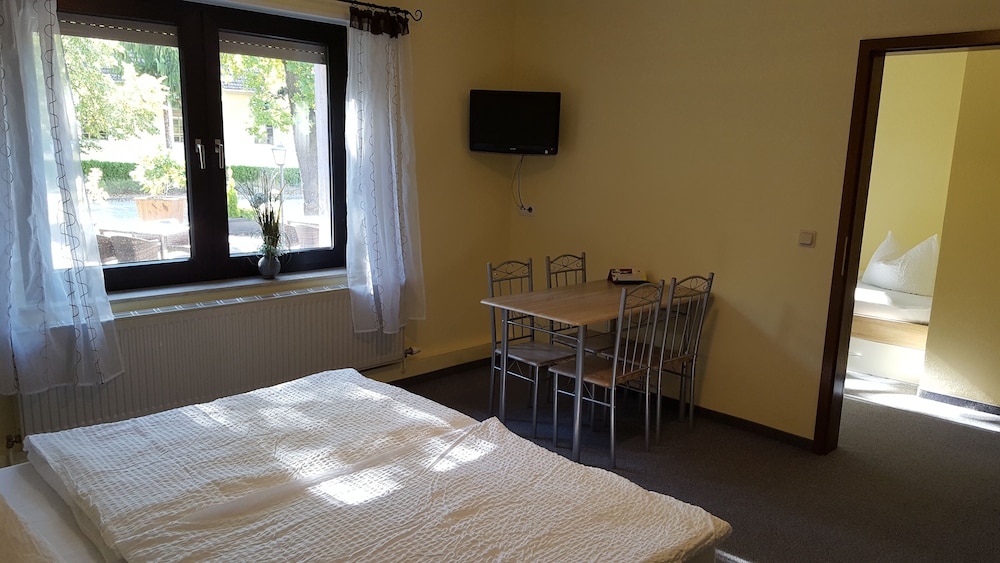 Das Zimmer hatte eigentlich alles was es braucht. Die Inhaberin hat sich wirklich sehr viel Mühe gegeben uns den Aufenthalt so angenehm wie möglich zu machen. Sie war immer ansprechbar und hatte jede Frage beantwortet. Beim Frühstück und Abendessen wurden wir von ihr immer sehr herzlich begrüßt. Wirklich schön. Das Frühstücksbuffet war ausreichend und lecker. Das Abendessen war das beste was ich jemals in einem Hotel gegessen habe. Wirklich super. Zum negativen. Der TV an der Wand war leider wahnsinnig klein und das W-LAN sehr schlecht (Darauf wurden wir allerdings hingewiesen) ein kleiner Kühlschrank wäre auch ganz gut gewesen. Alles in allem war es trotzdem sehr gut. Vielen Dank für den Aufenthalt.