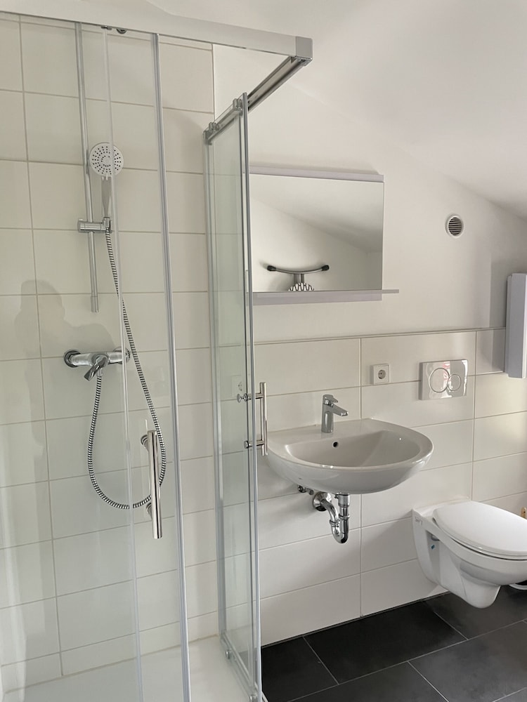 Zimmer, Bett, Bad waren gut, Dachgeschosszimmer, Fenster geöffnet sonst zu warm, dadurch S Bahn Geräuschkulisse