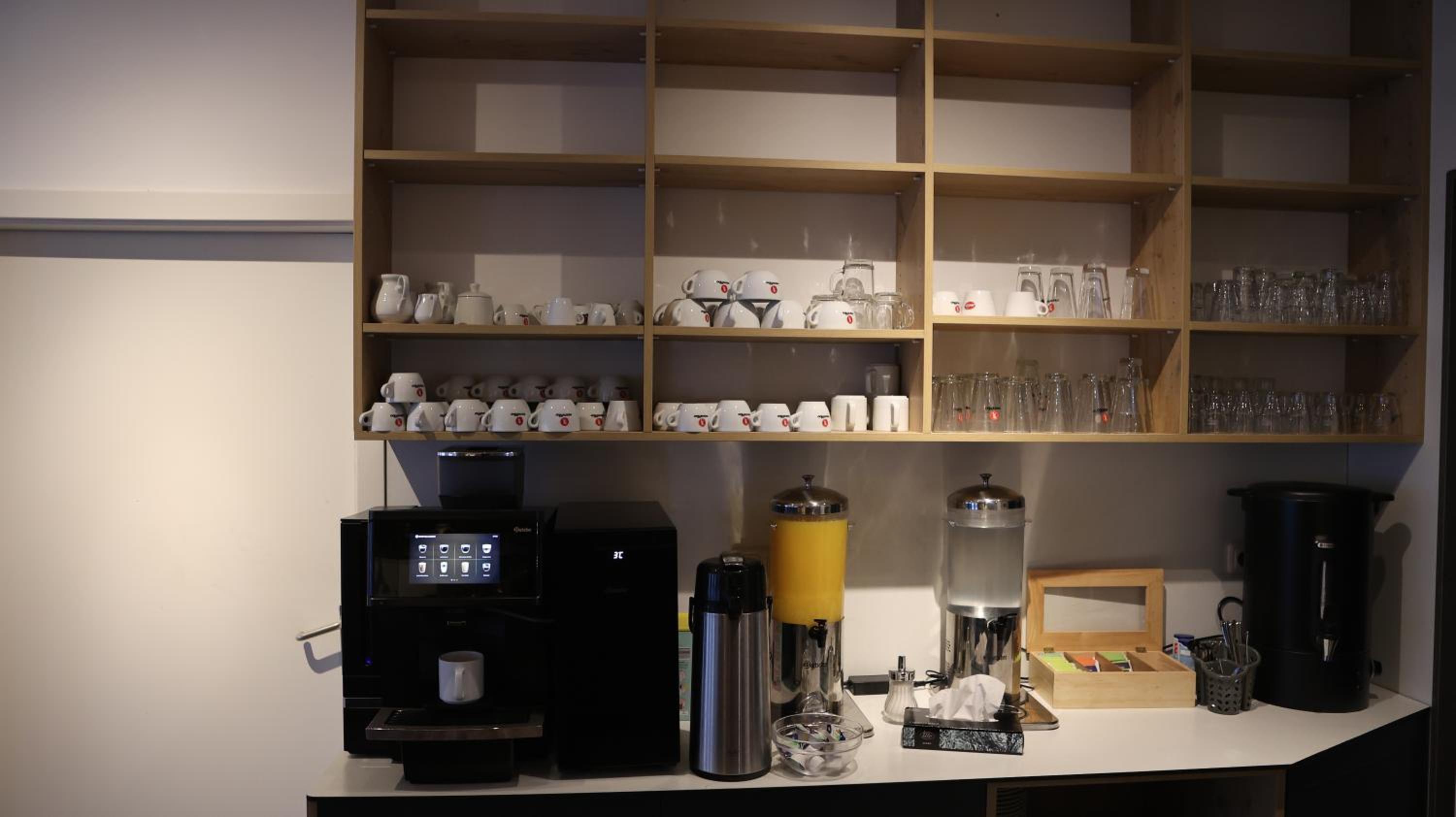 No glasses in the room, perhaps the bathroom was a bit tight too, but very attractive otherwise.