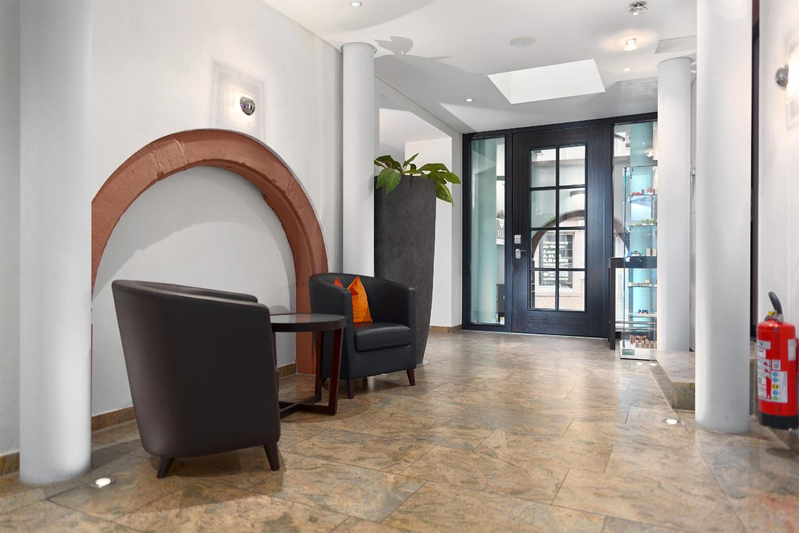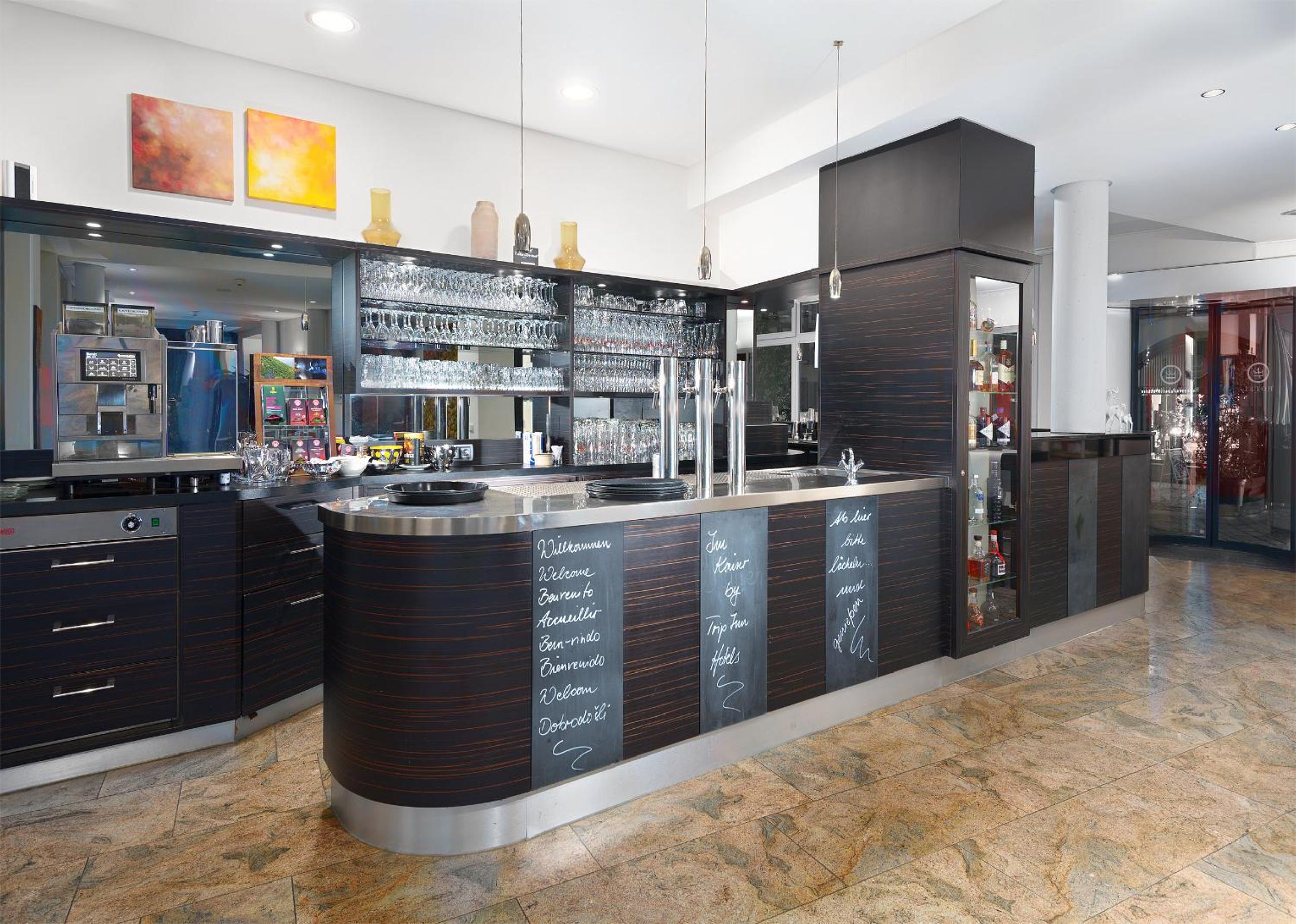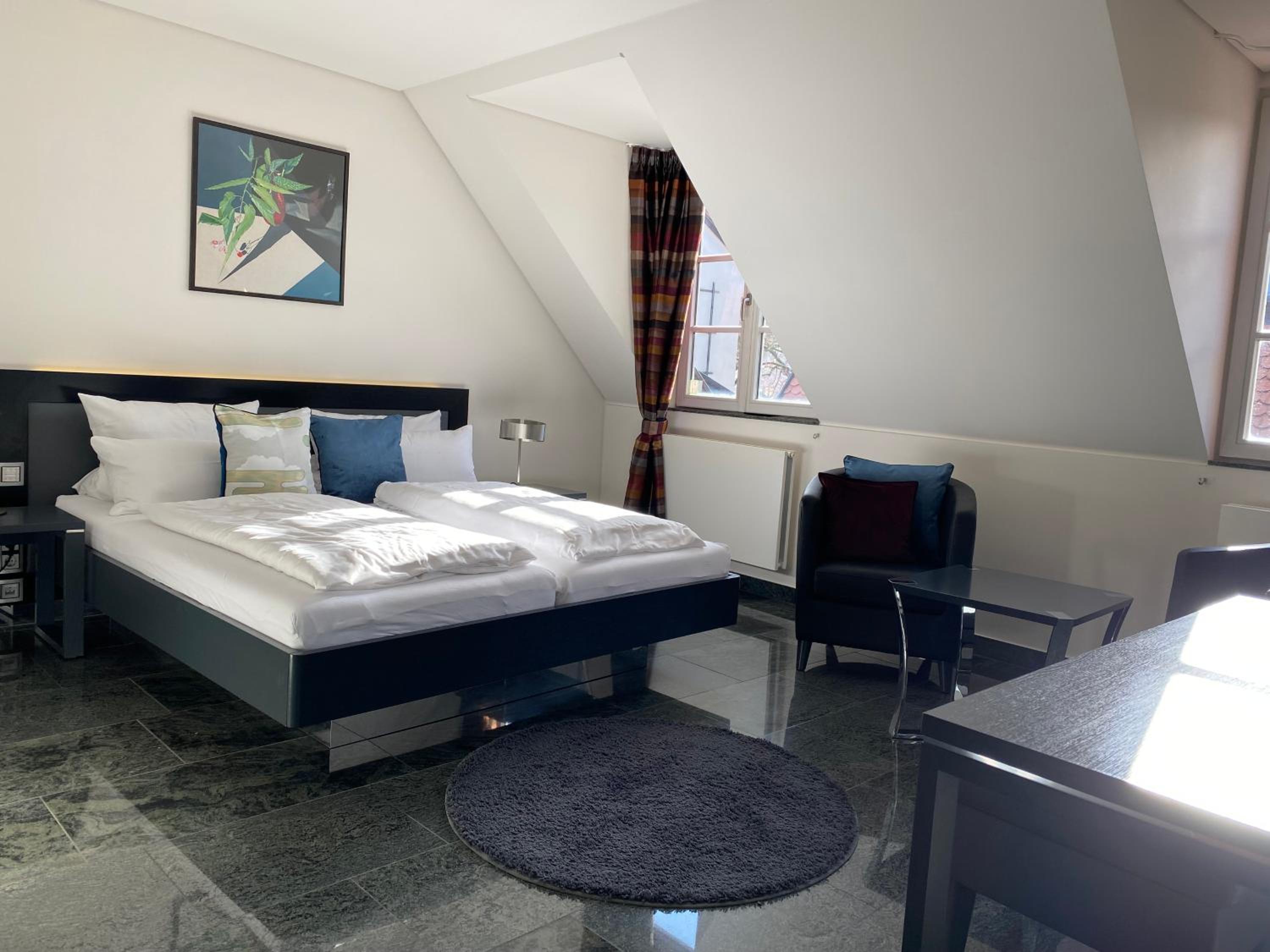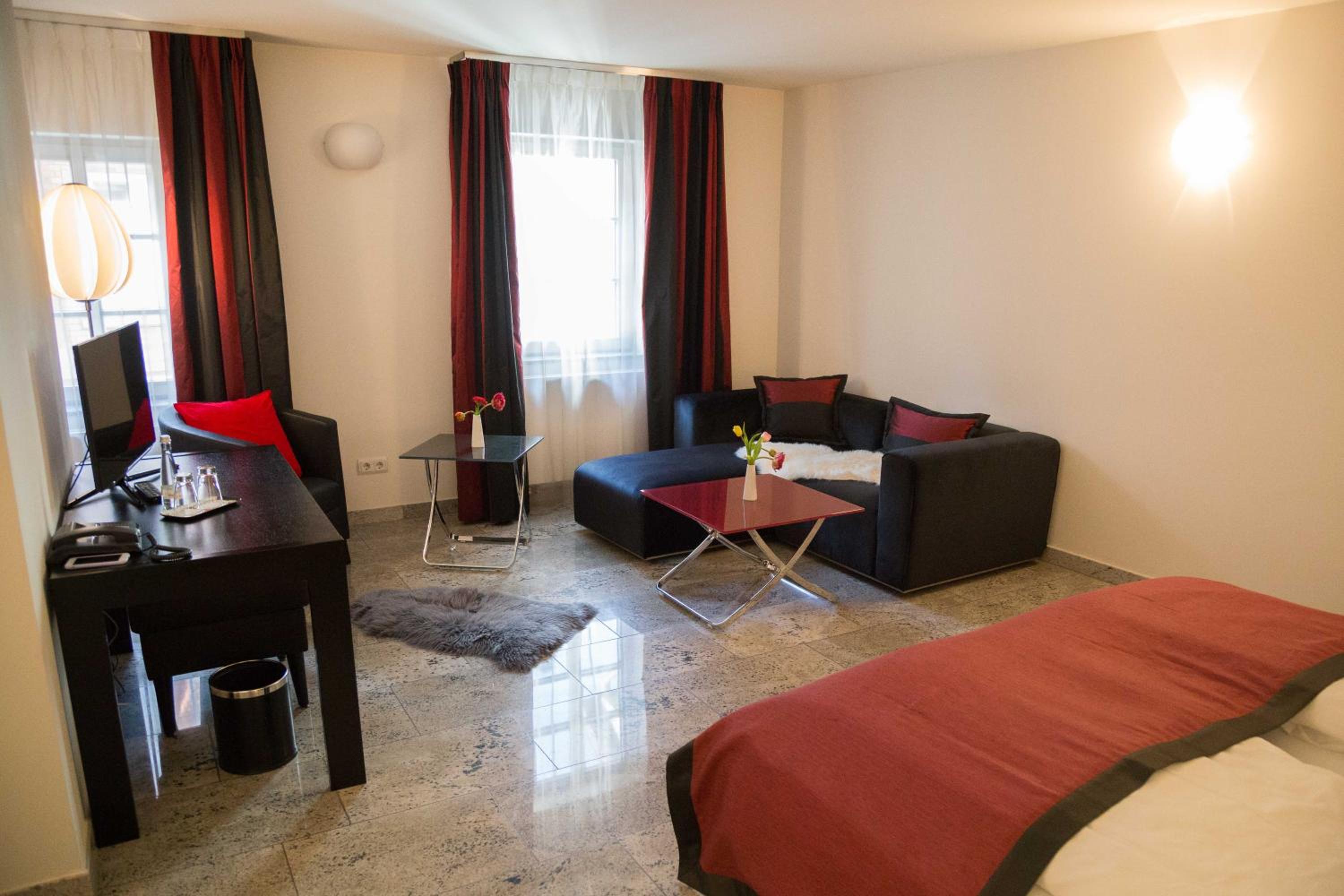 TRIP INN Kaiser Hotel & Restaurant Heidelberg-Schriesheim offers elegant rooms equipped with modern amenities such as air conditioning, flat-screen TV, and a safety deposit box. The cozy seating area and plush bedding provide a comfortable stay for guests.