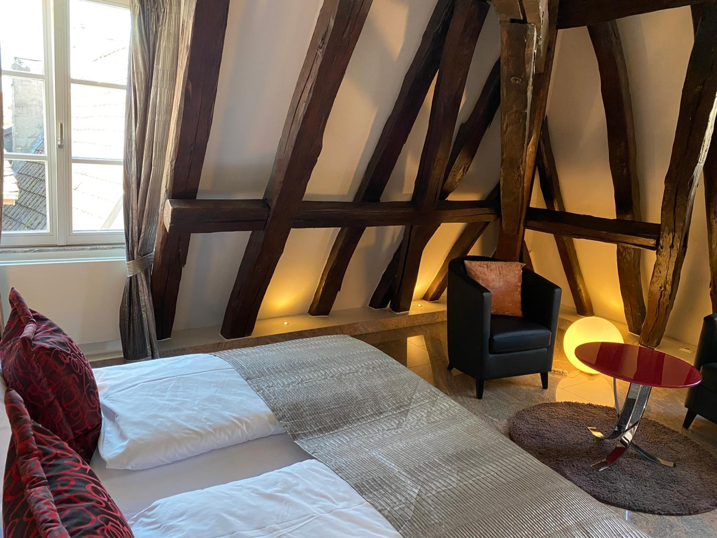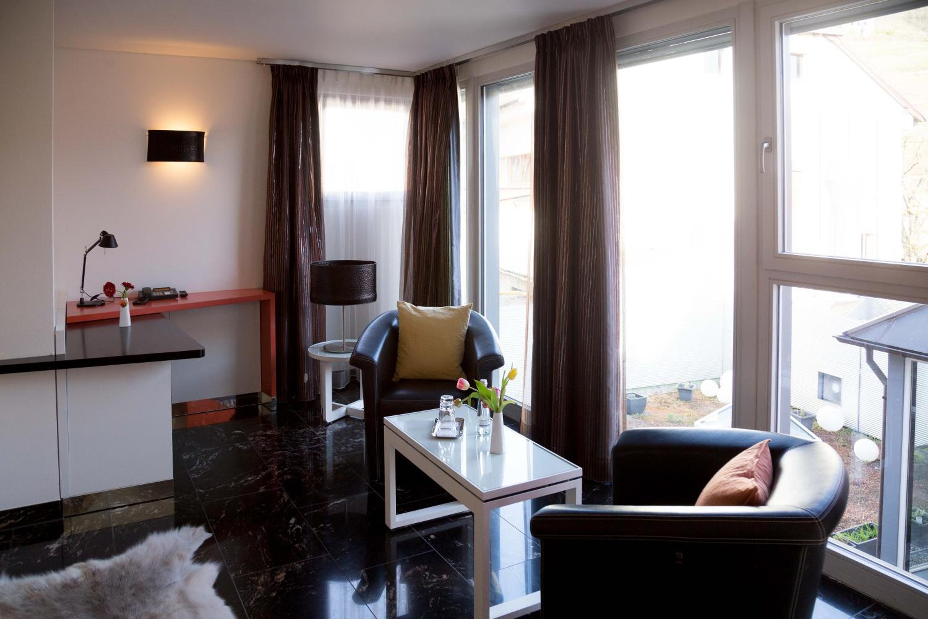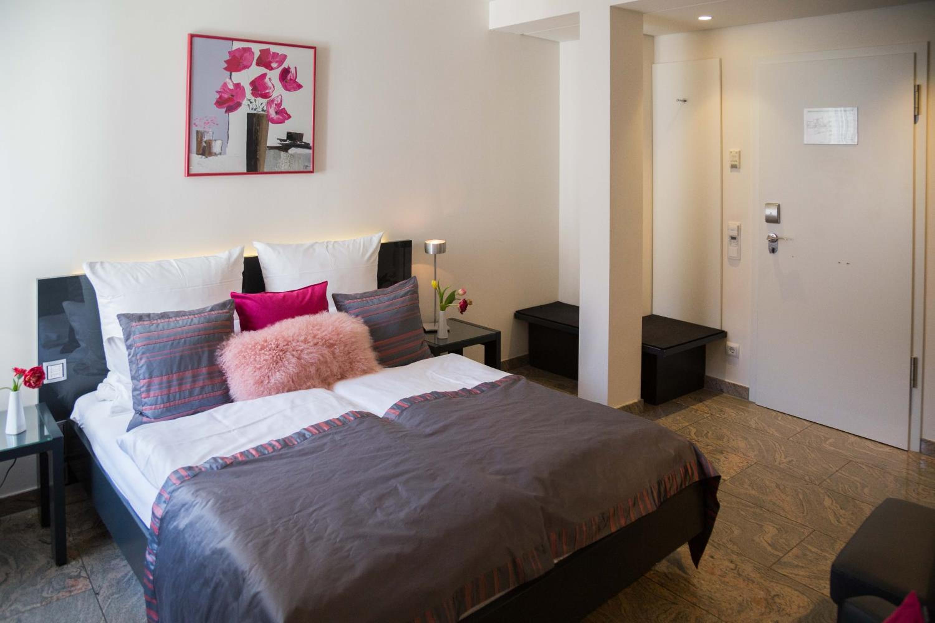 TRIP INN Kaiser Hotel & Restaurant Heidelberg-Schriesheim offers elegant rooms equipped with modern amenities such as air conditioning, flat-screen TV, and a safety deposit box. The cozy seating area and plush bedding provide a comfortable stay for guests.