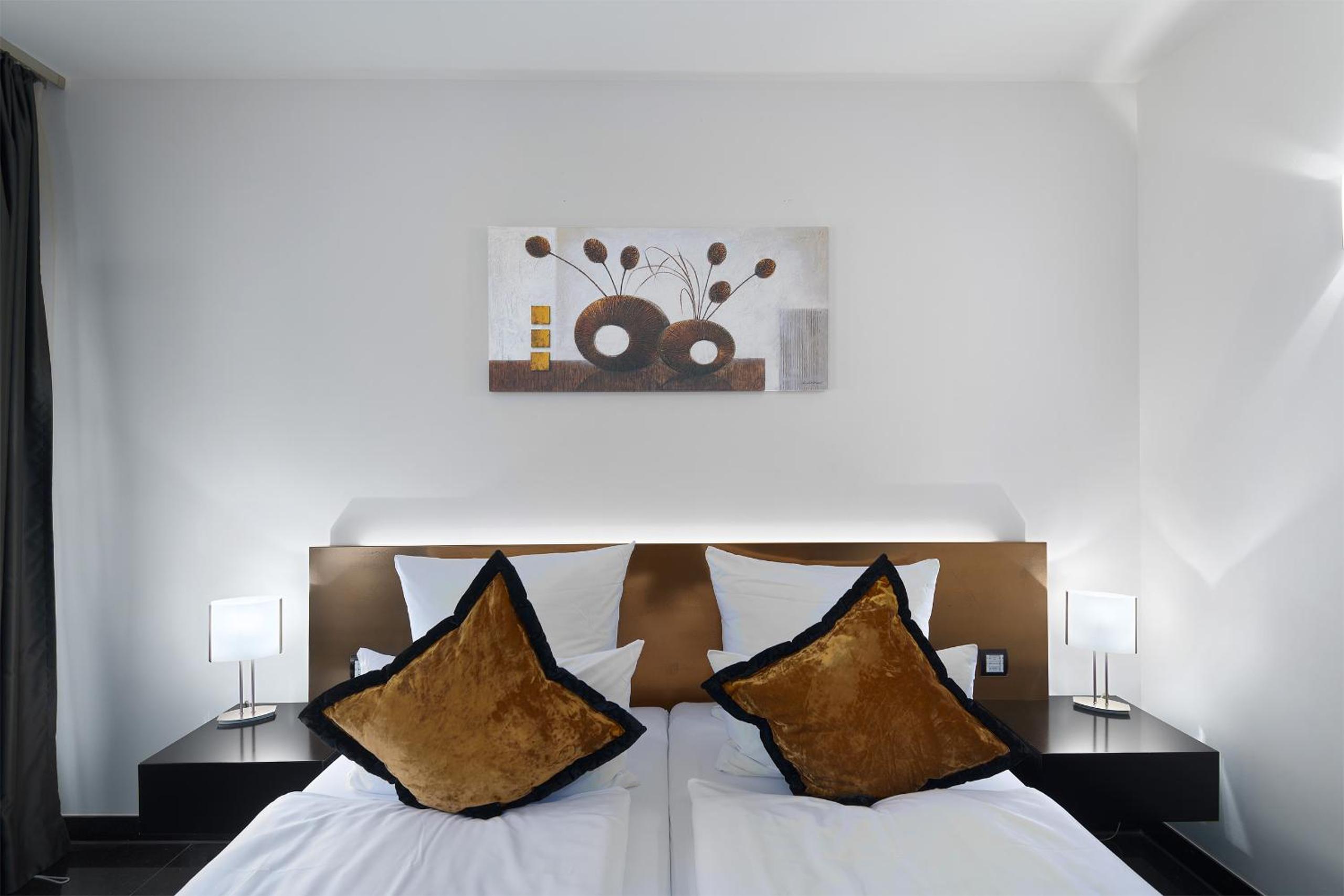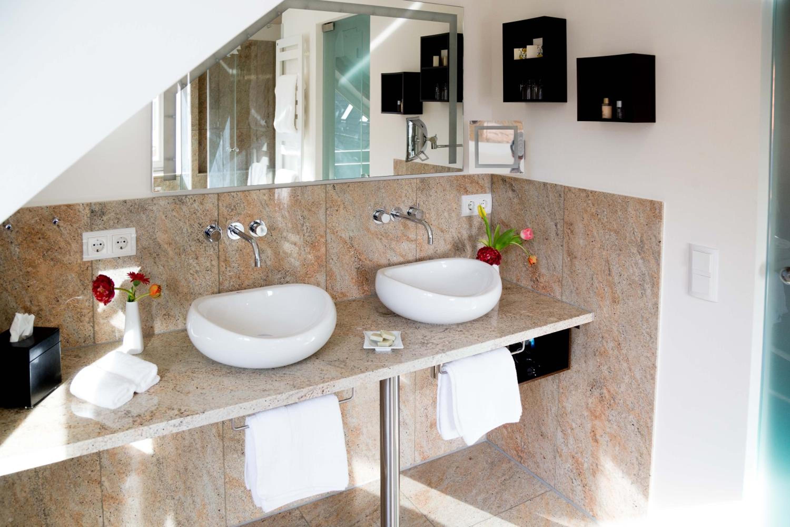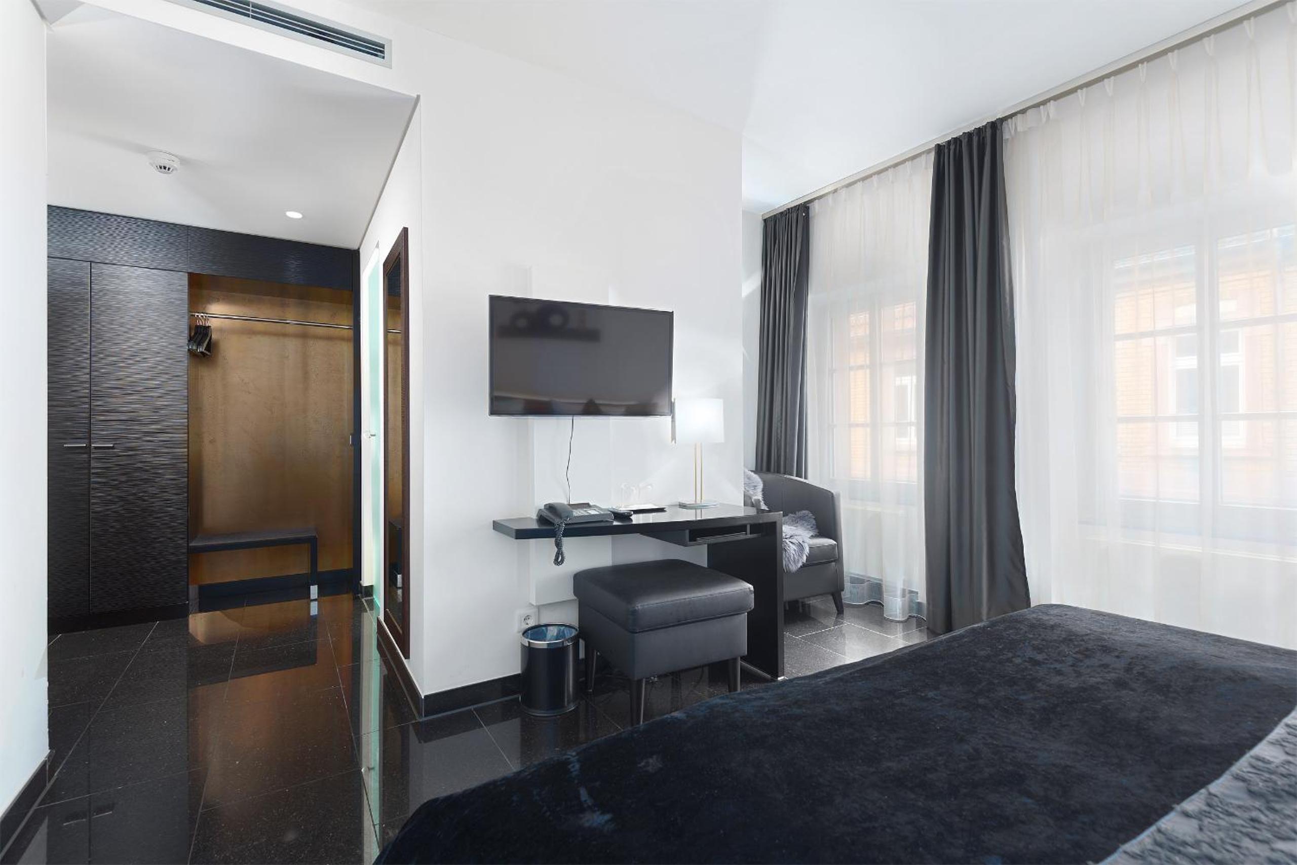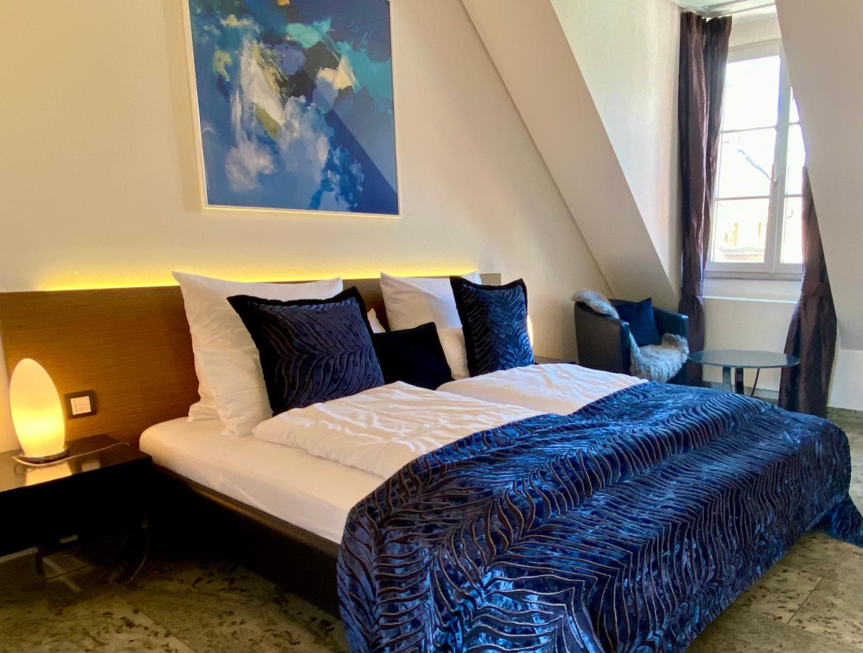 TRIP INN Kaiser Hotel & Restaurant Heidelberg-Schriesheim offers elegant rooms equipped with modern amenities such as air conditioning, flat-screen TV, and a safety deposit box. The cozy seating area and plush bedding provide a comfortable stay for guests.