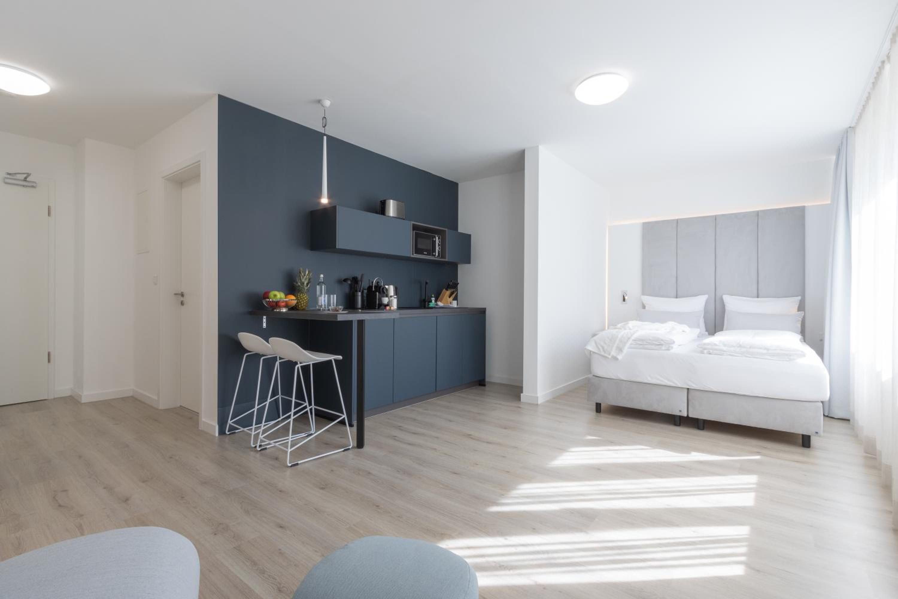 Das nennt sich Hotel, ist aber keines ! Kein Foyer, kein Mensch ! Türöffnungen nur per Handy Fahrstuhl defekt. Im Zimmer roch es extrem nach einem Abfluss, der nach Wasser lechzte, wurde trotz geöffnetem Fenster( sehr laut, Kiosk )und spülen aller Abflüsse erst am zweiten Tag besser. Es war zum Teil sauber. Brotkrümel auf der küchenzeile. Der Topf stand dreckig im Schrank und musste vor der Nutung gespült werden. Es gibt keine Kleiderbügel oder Haken um Wäsche aufzuhängen. Es fehlt ein Tisch an dem man essen kann . Der Ferneher funktionierte nicht , angerufen und mir wurde gesagt dass man sich kümmern würde, Nach einer Stunde noch einmal angerufen, außerhalb der Geschäftszeiten. Angeschrieben und nach kurzer Zeit Rückmeldung, das es wieder funktioniert !