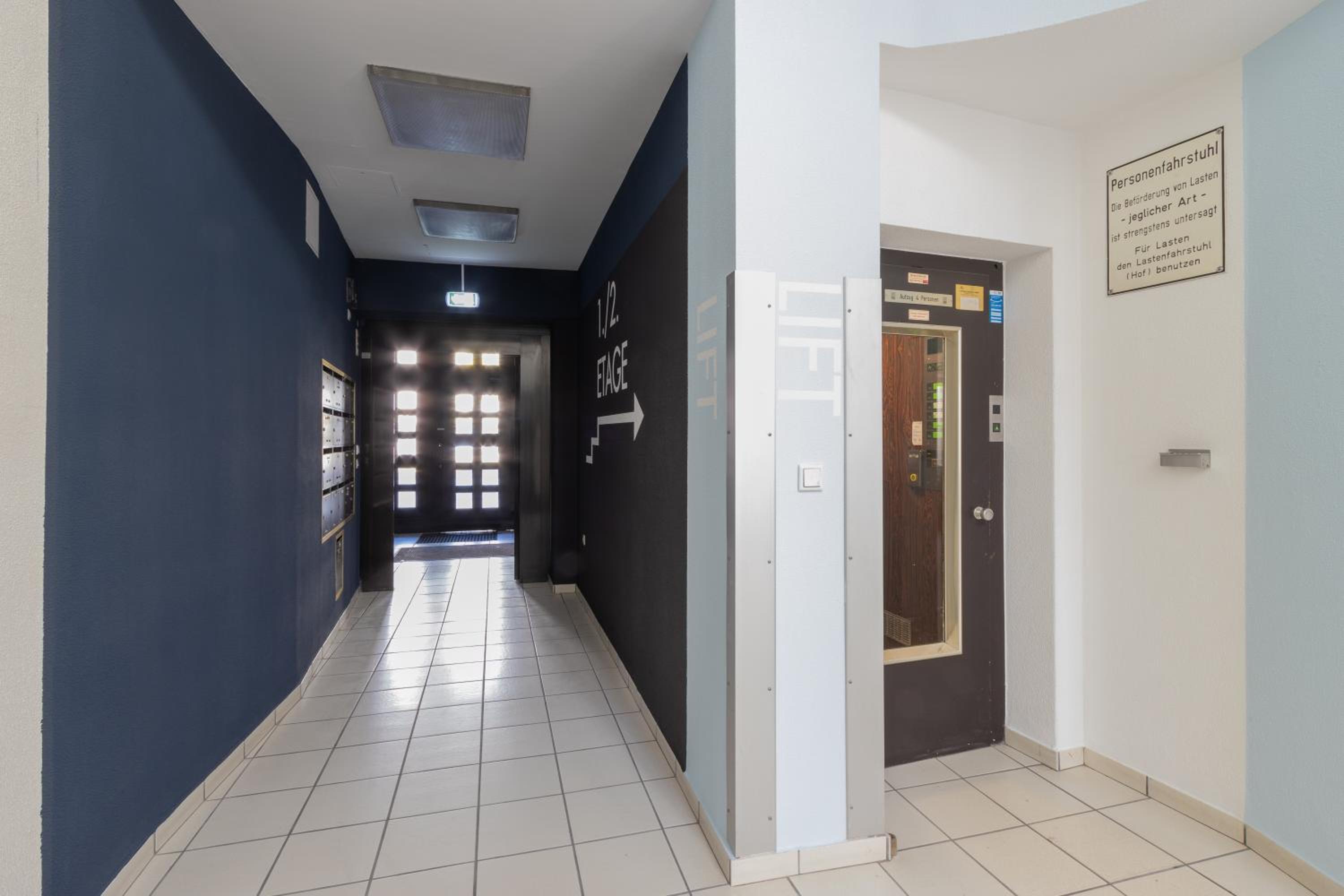 Anonyme Atmosphäre auf den Gängen und im Treppenhaus.