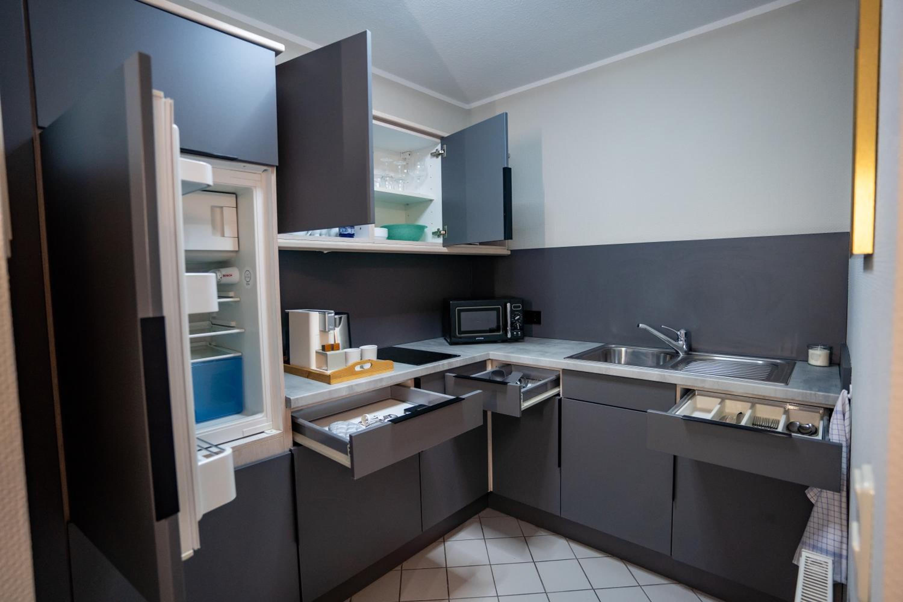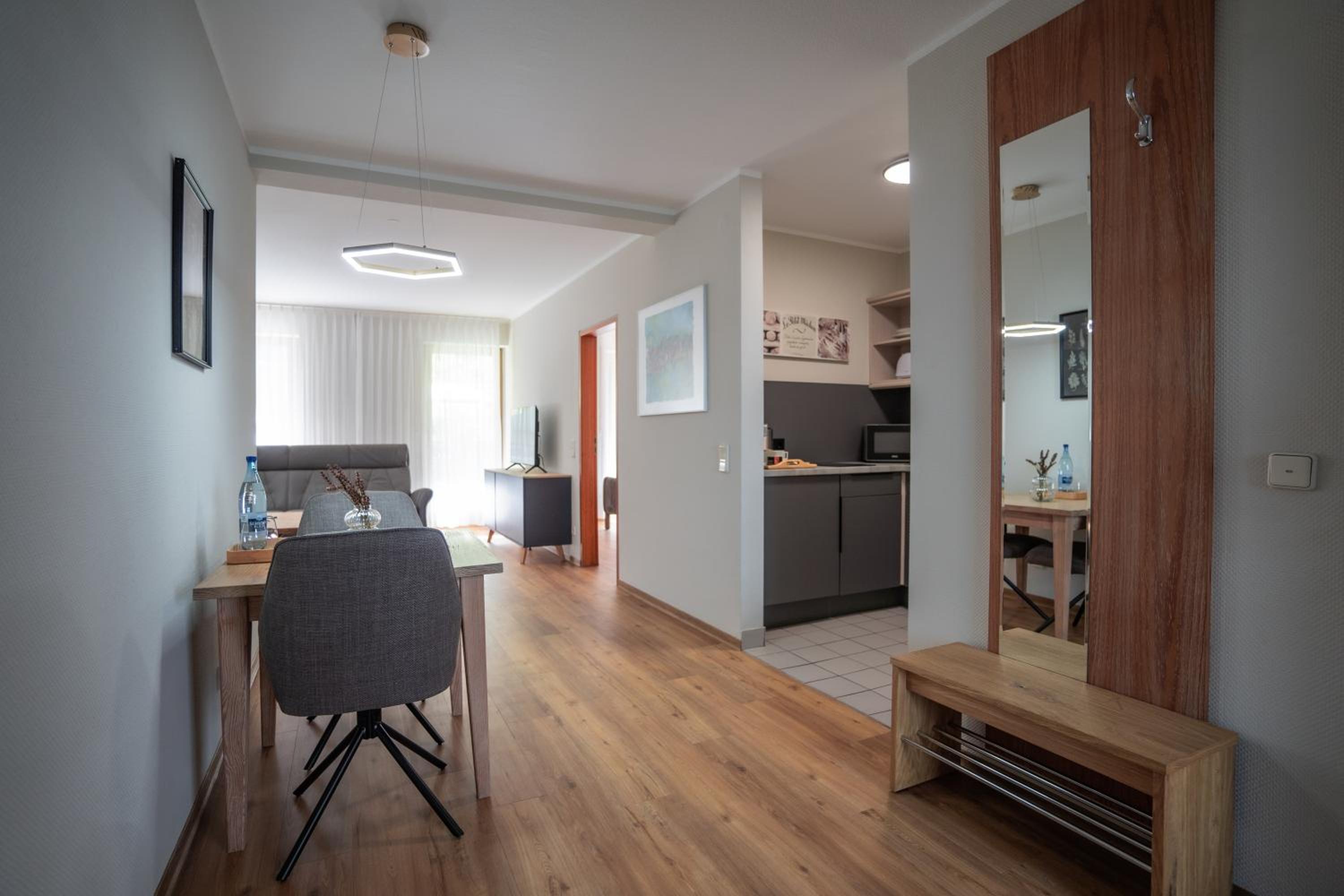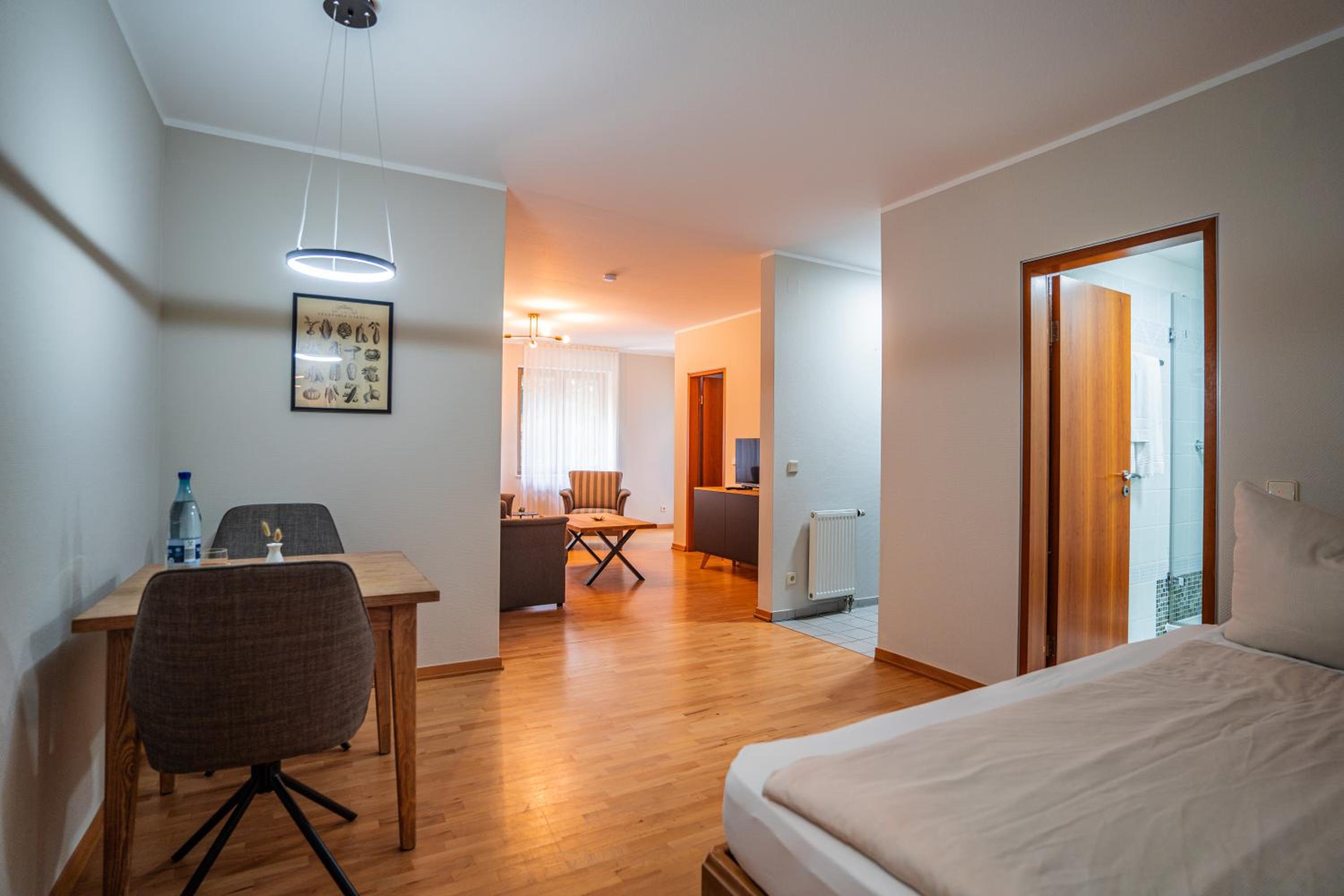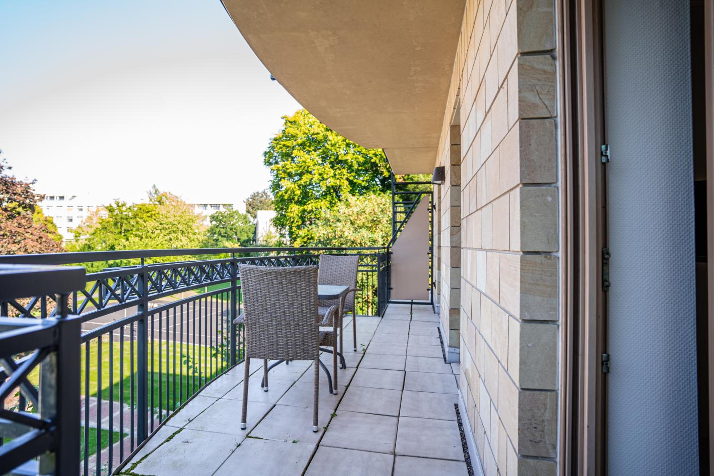 Das Studio war großzügig und mit großer Terrasse mit Blick auf den Kurpark. Sehr schönes stylisches Hotel.