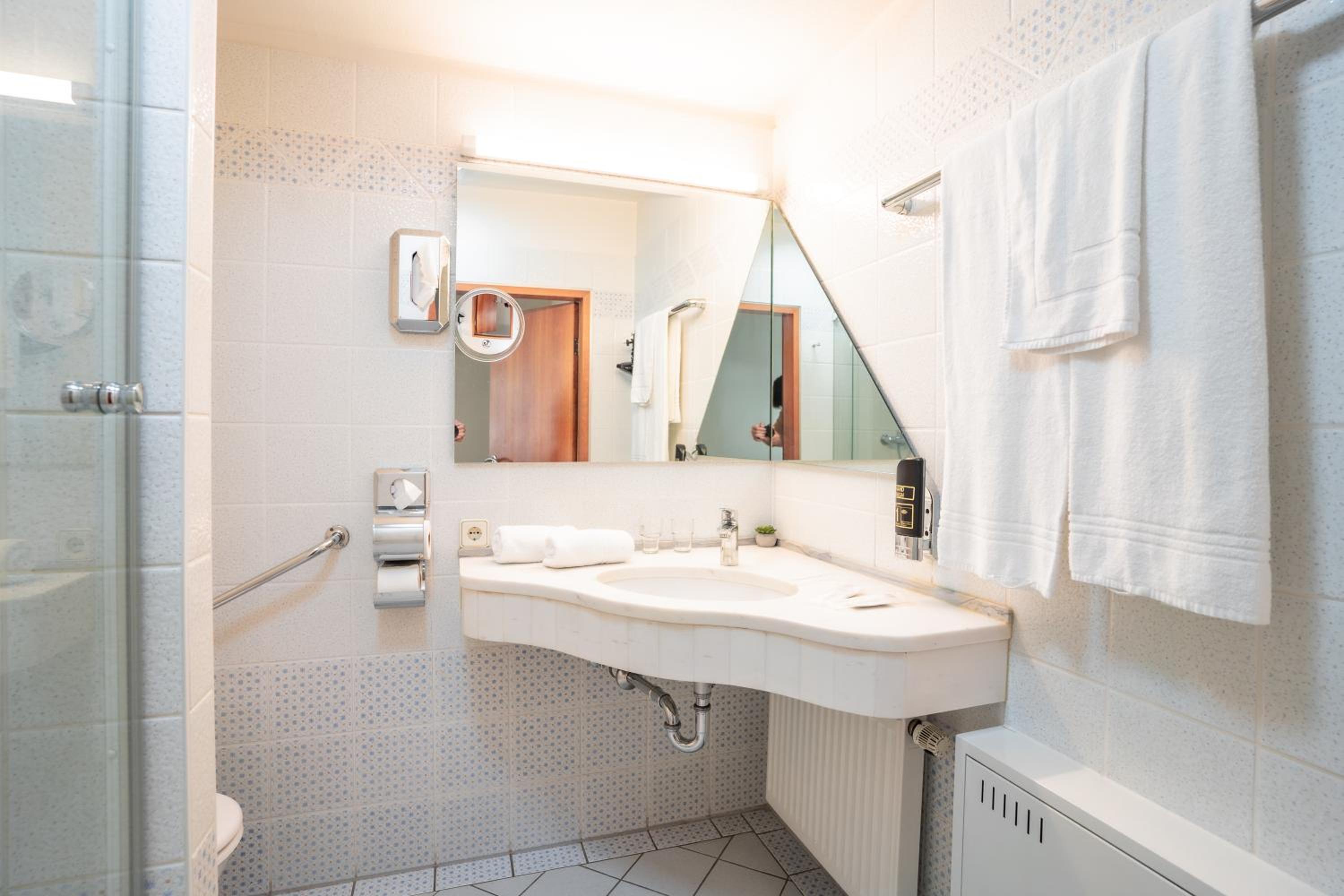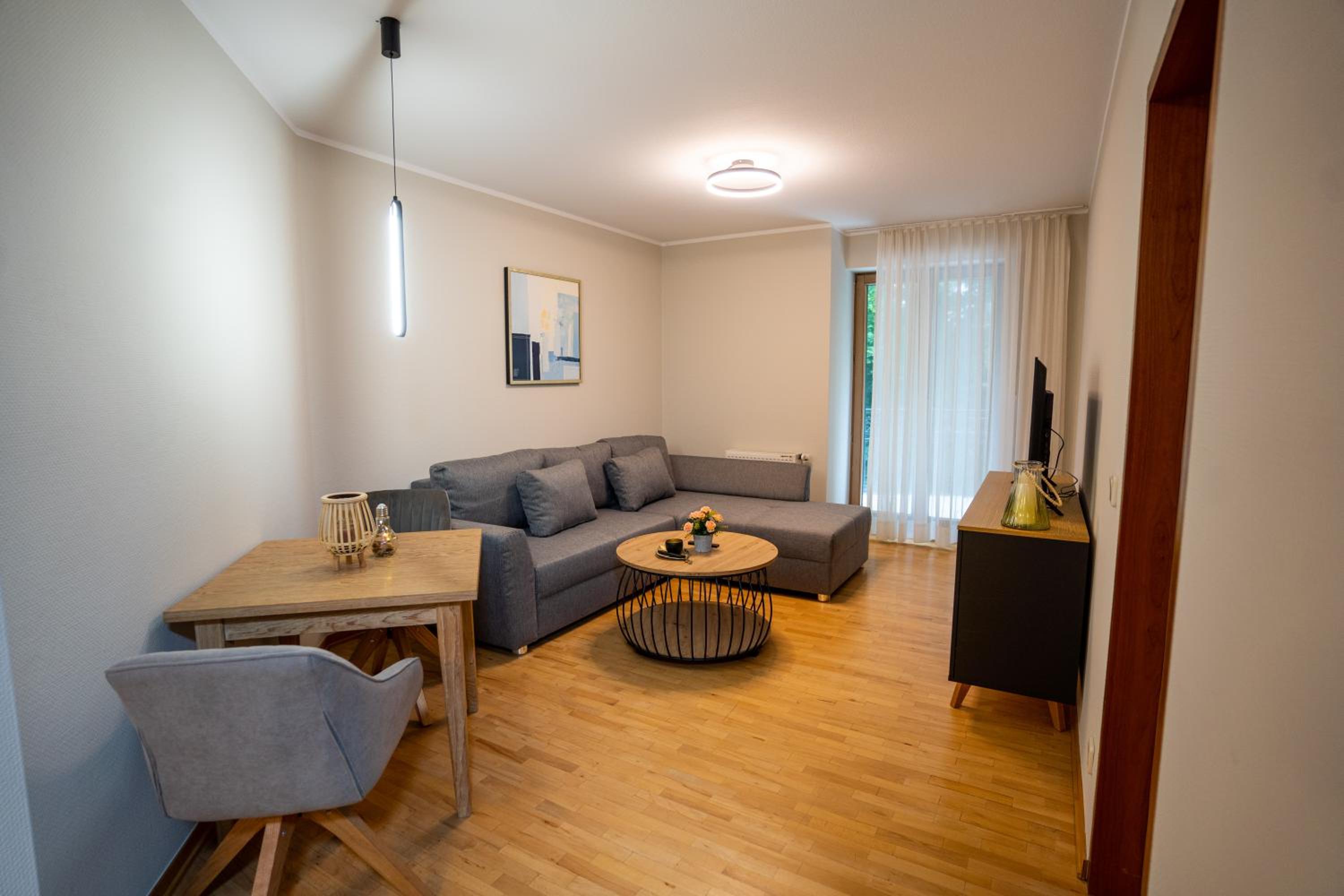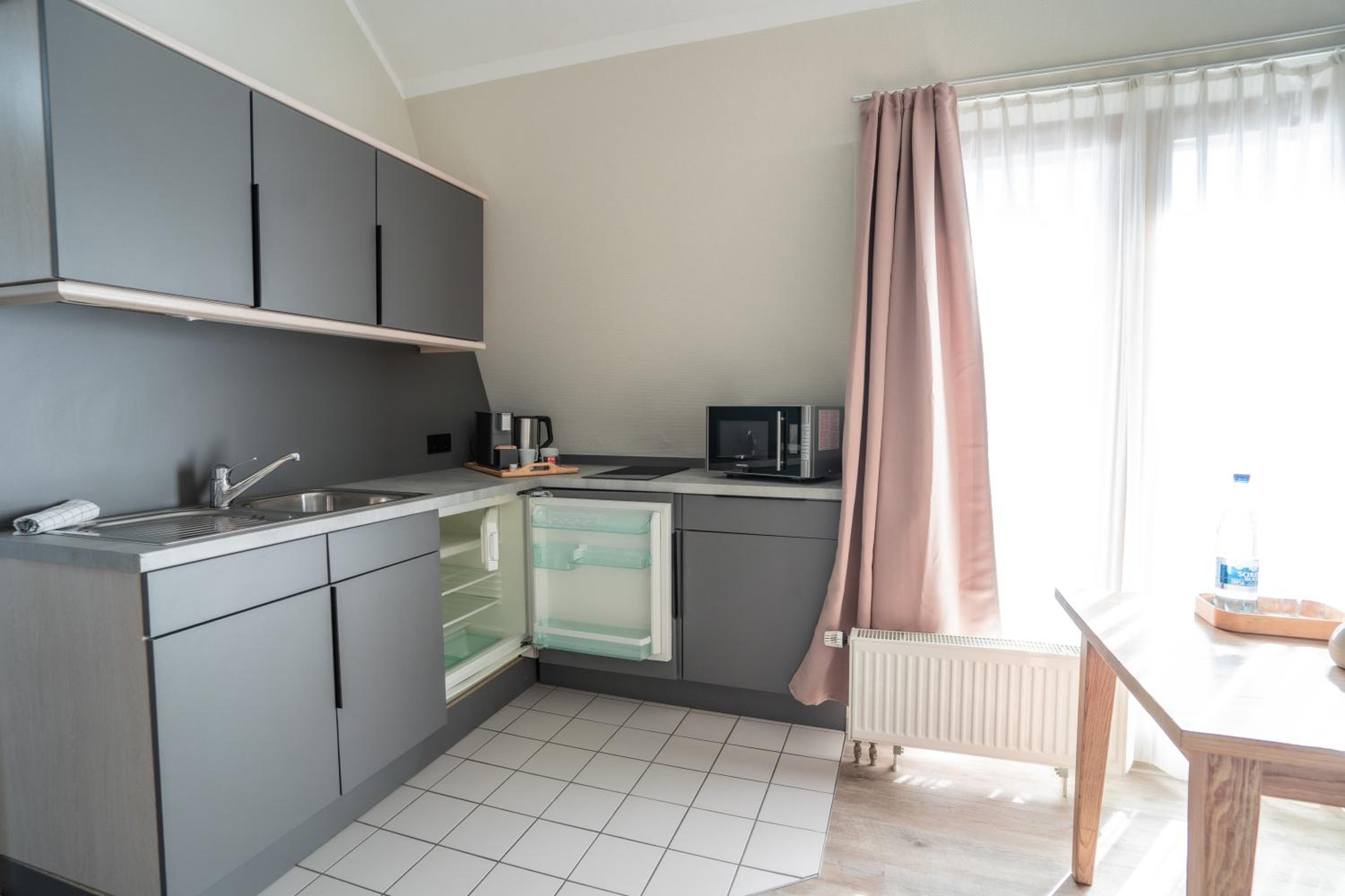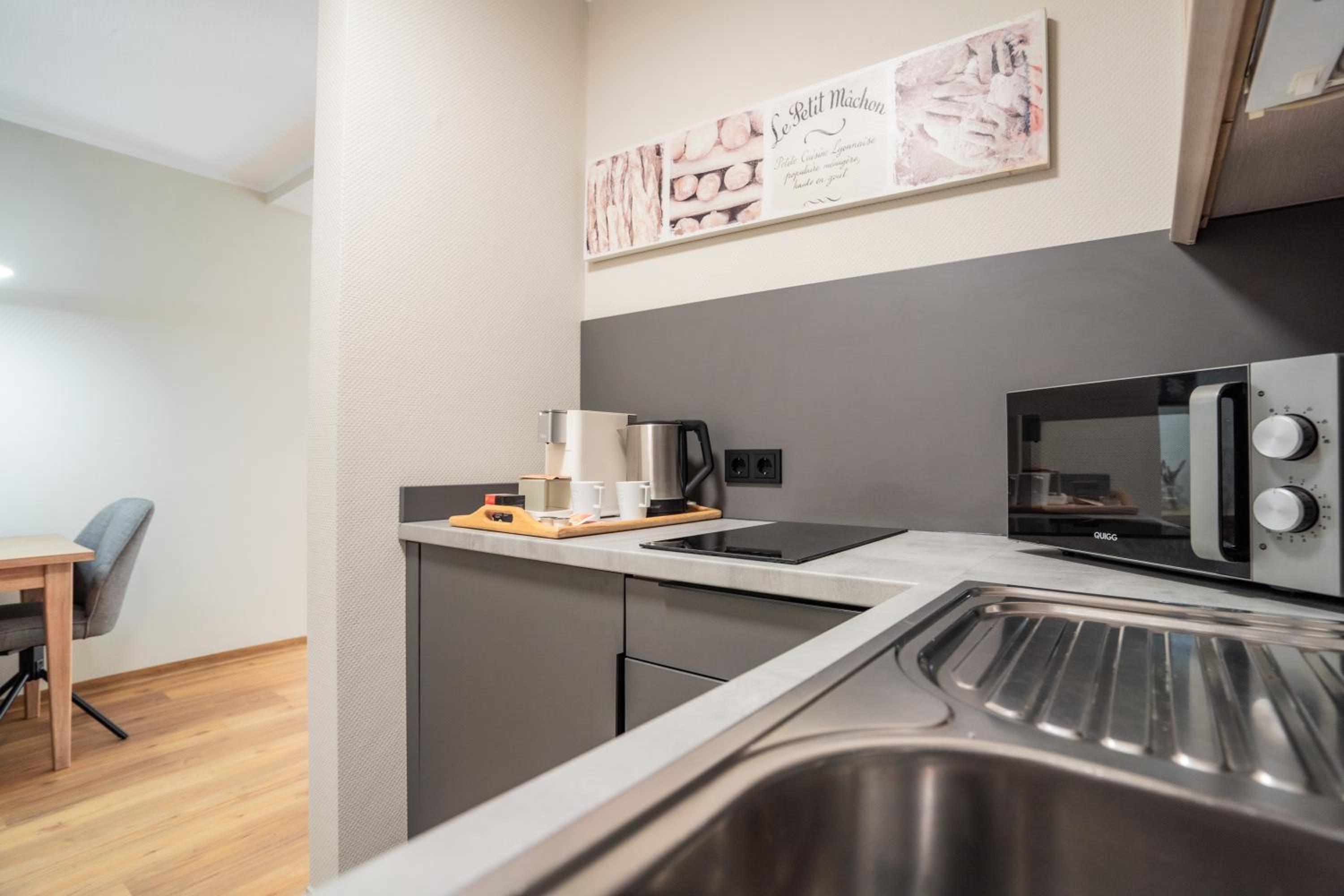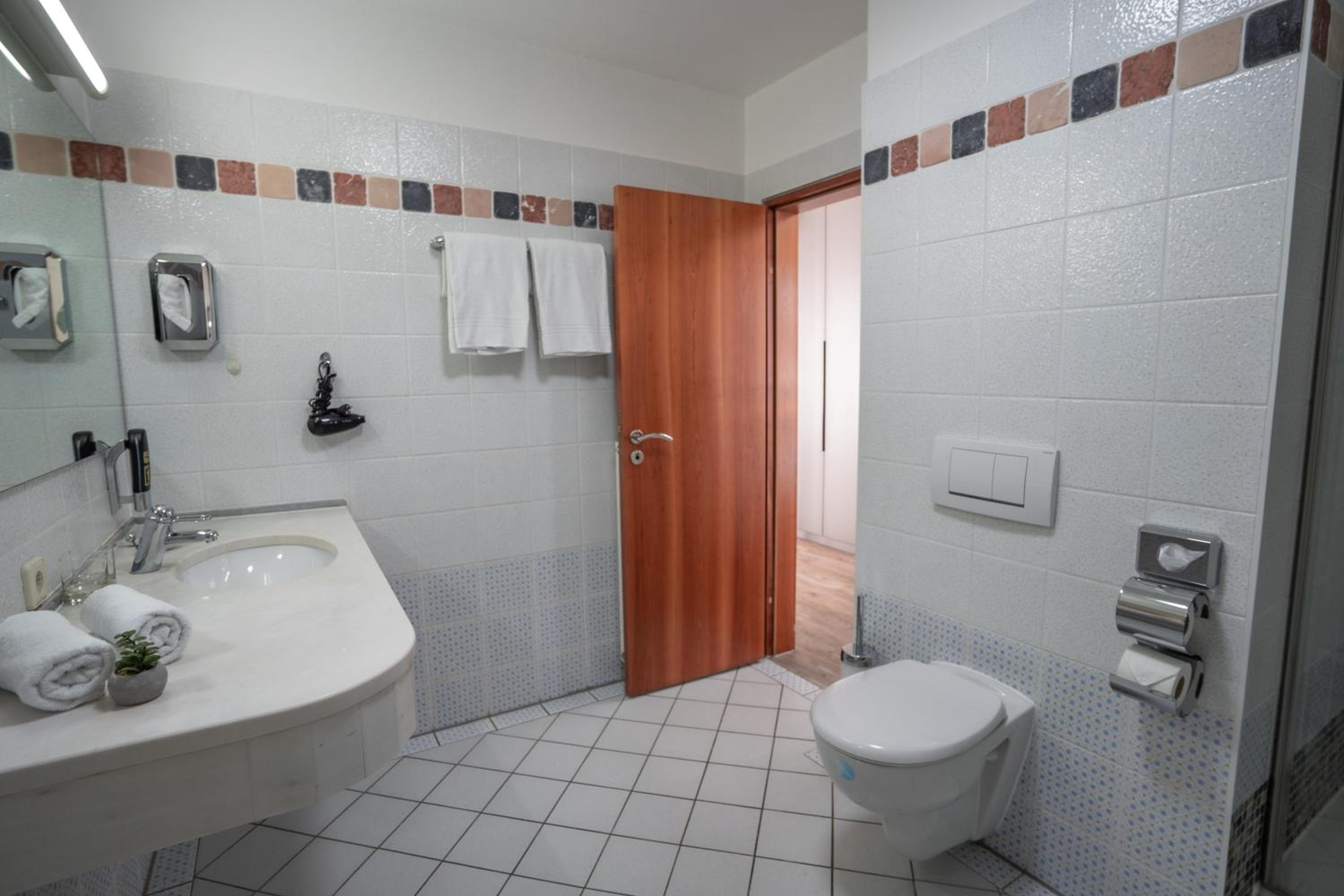 Das Studio war großzügig und mit großer Terrasse mit Blick auf den Kurpark. Sehr schönes stylisches Hotel.