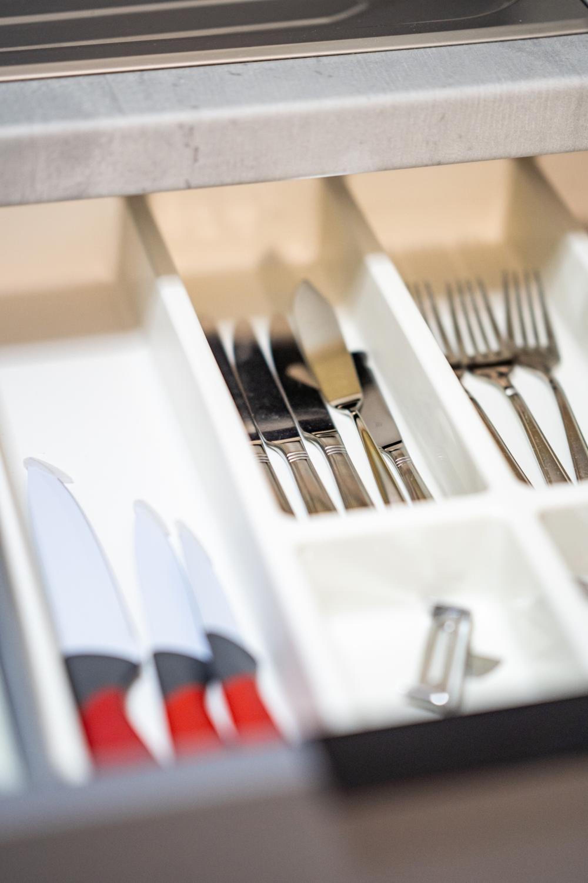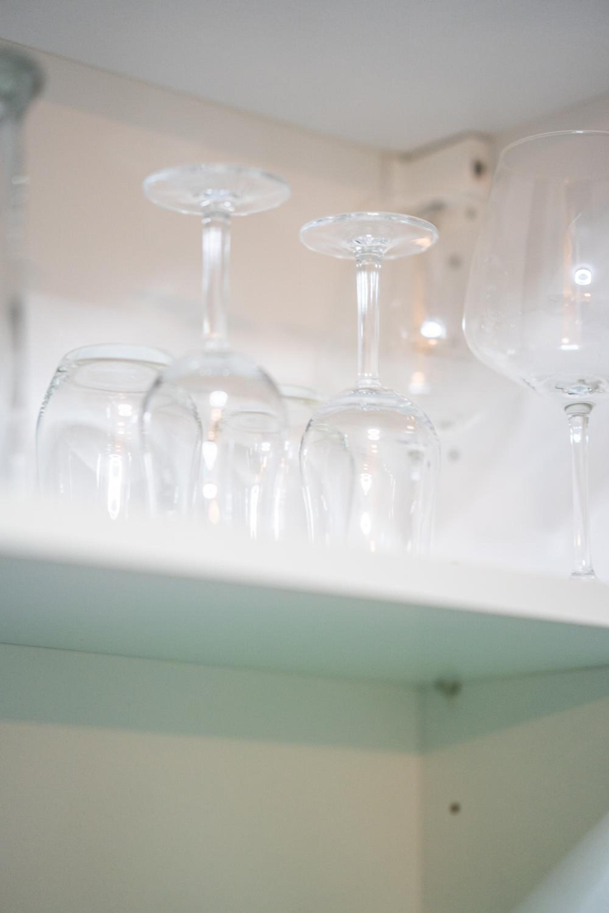 Im Zimmer selbst: nur ein einziges Weinglas ist vielleicht etwas zu wenig? Das Besteck auch nicht mehr vollzählig.