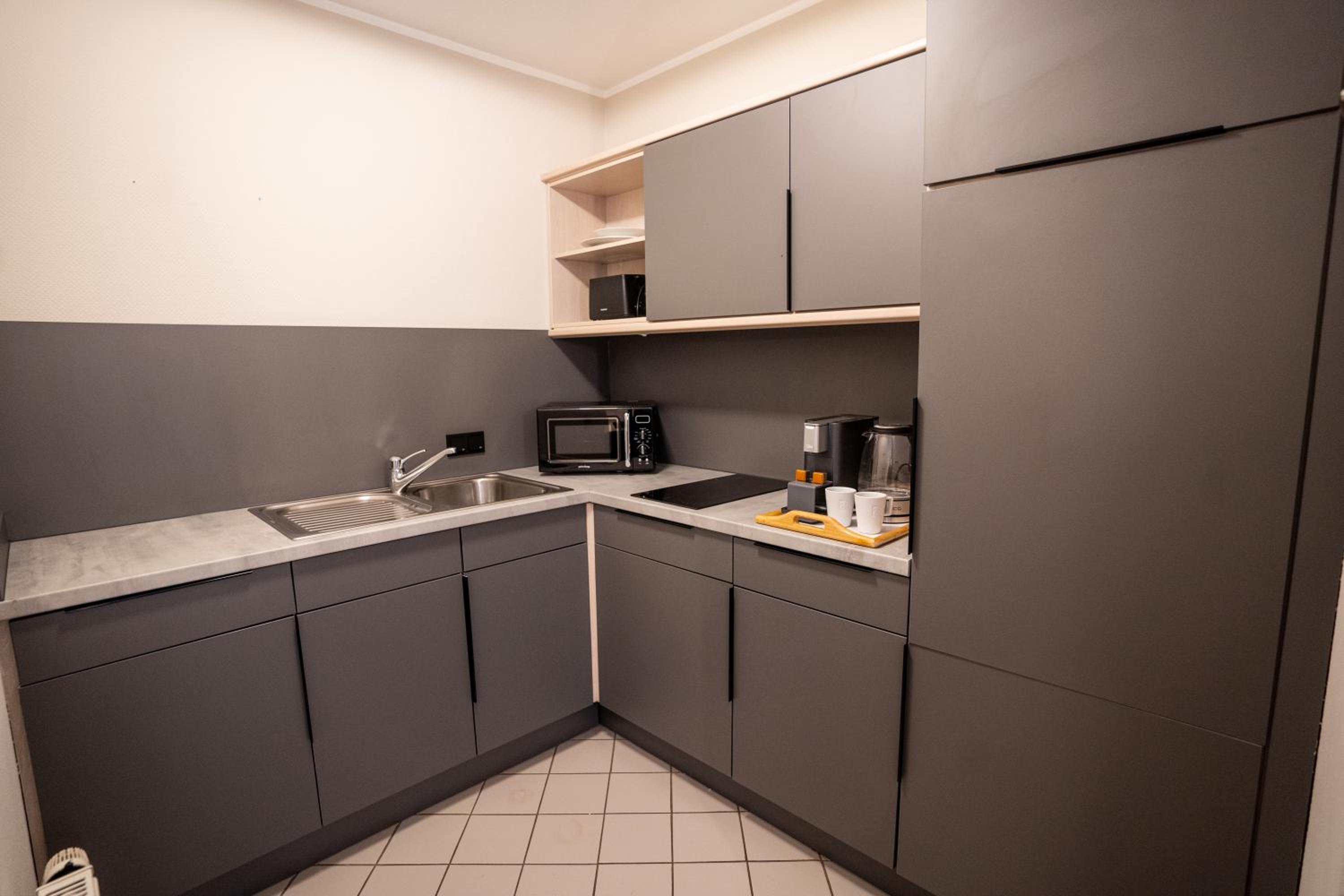 Convenient Facilities: Take advantage of private parking, electric vehicle charging station, and fully equipped kitchens in every unit.