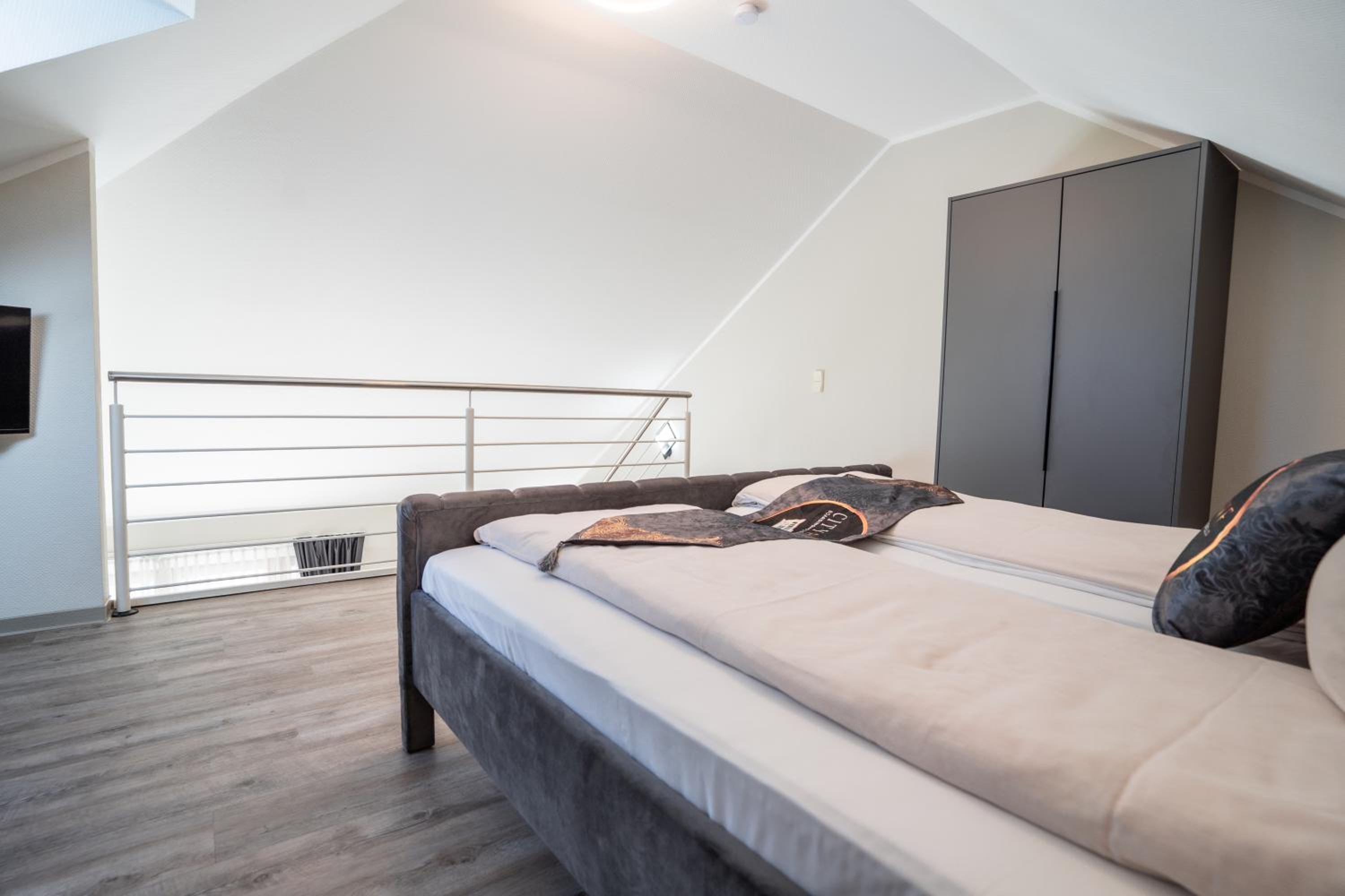 Große ansprechende Zimmer (Maisonette-Appartement) sehr gute Matratzen und das dritte Bett, kein Zustellbett, sondern ein klassisches Bett… Super!