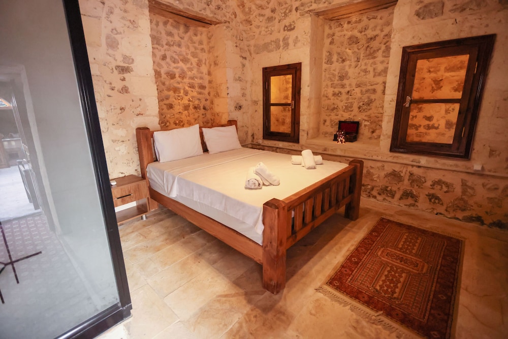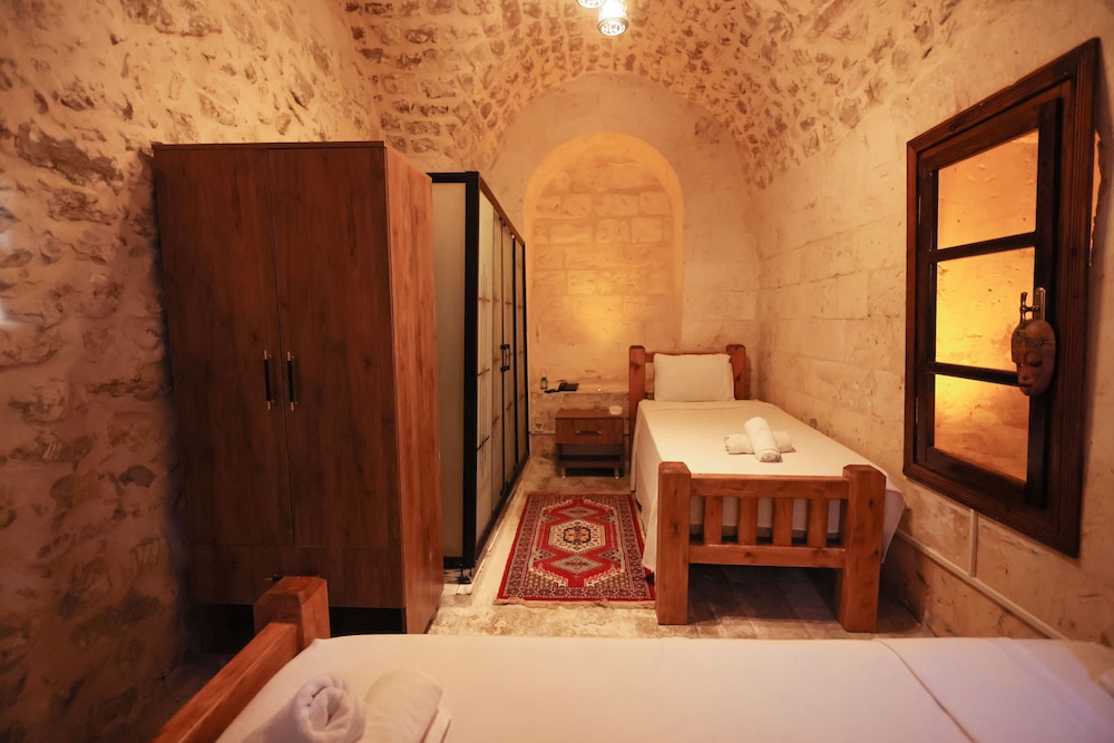 great little hotel, just a few rooms ranged around the shady courtyard of an old Sanliurfa mansion house. Situated right by a restored section of gateway and walls that once circled the old city, in a traditional neighbourhood with tea houses, bakeries, grocers etc, yet just 15 minutes walk from the castle and fish lake area. Rooms had a fridge, kettle and tea/coffee, a/c and massive double beds. Characterful vaulted ceilings and exposed stonework - lots of character. Minor quibble. No bedside lights. Friendly staff and kept spotless.