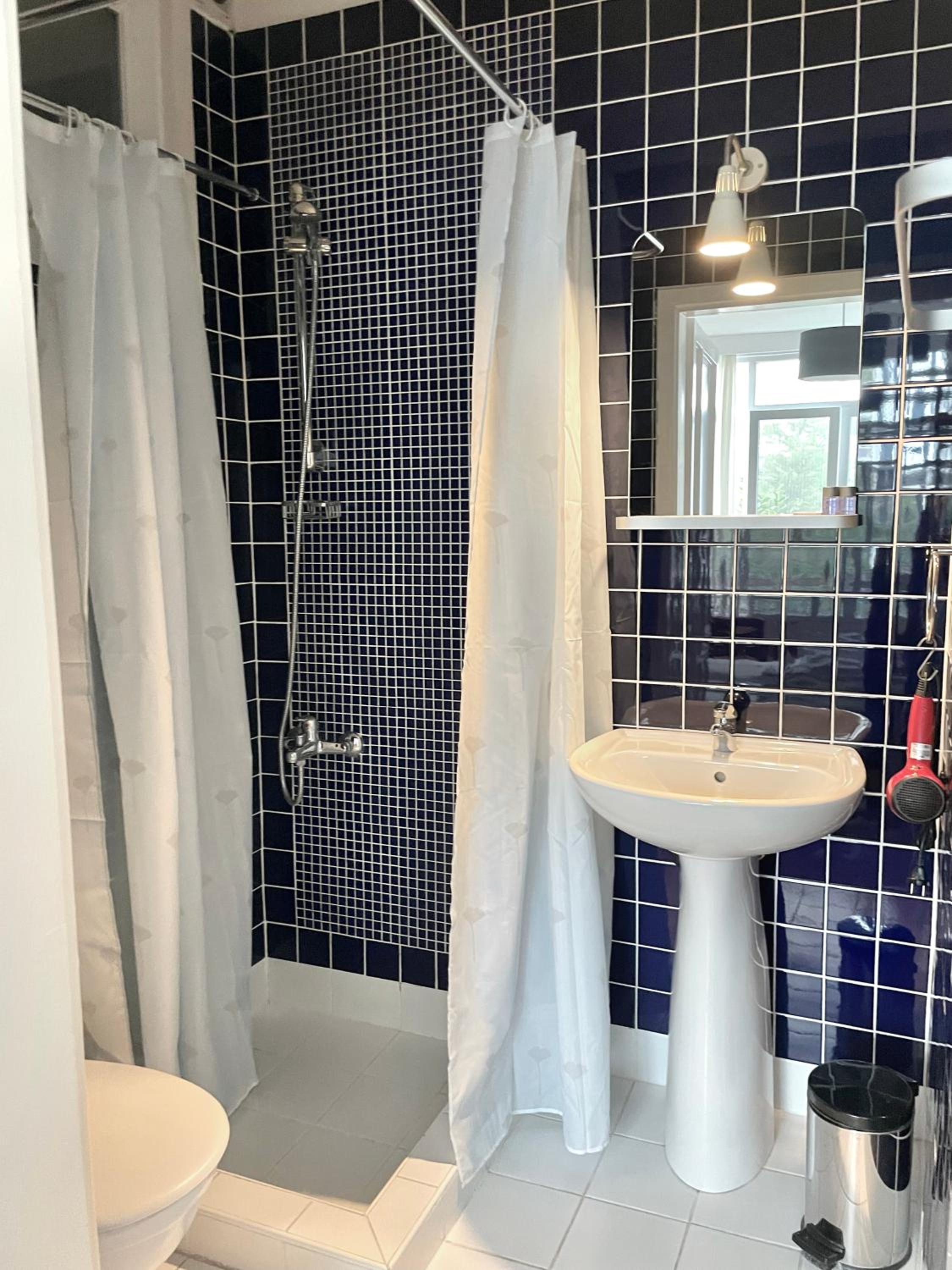 Bathroom would definetely need some small renovations. There is not any black out curtains, it gets really bright in the morning