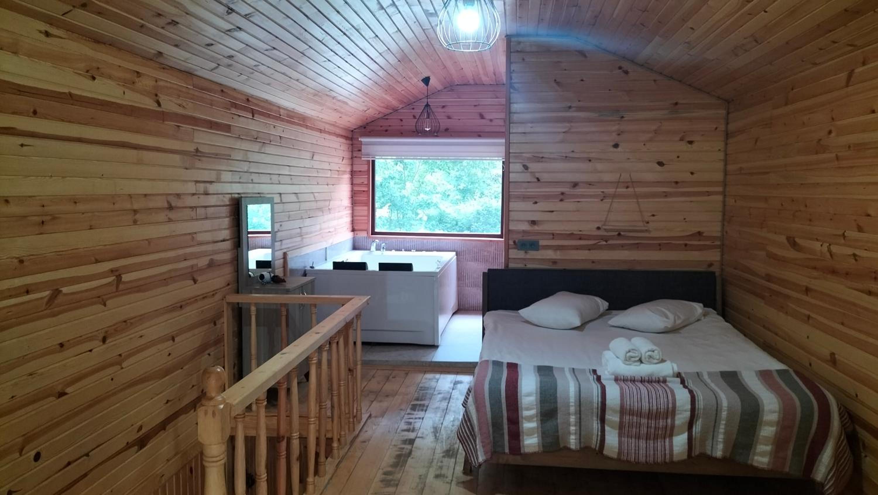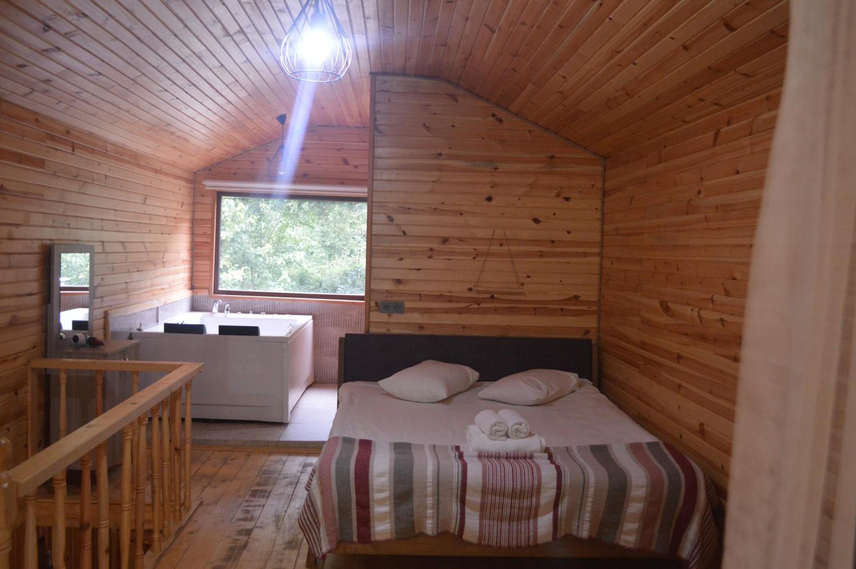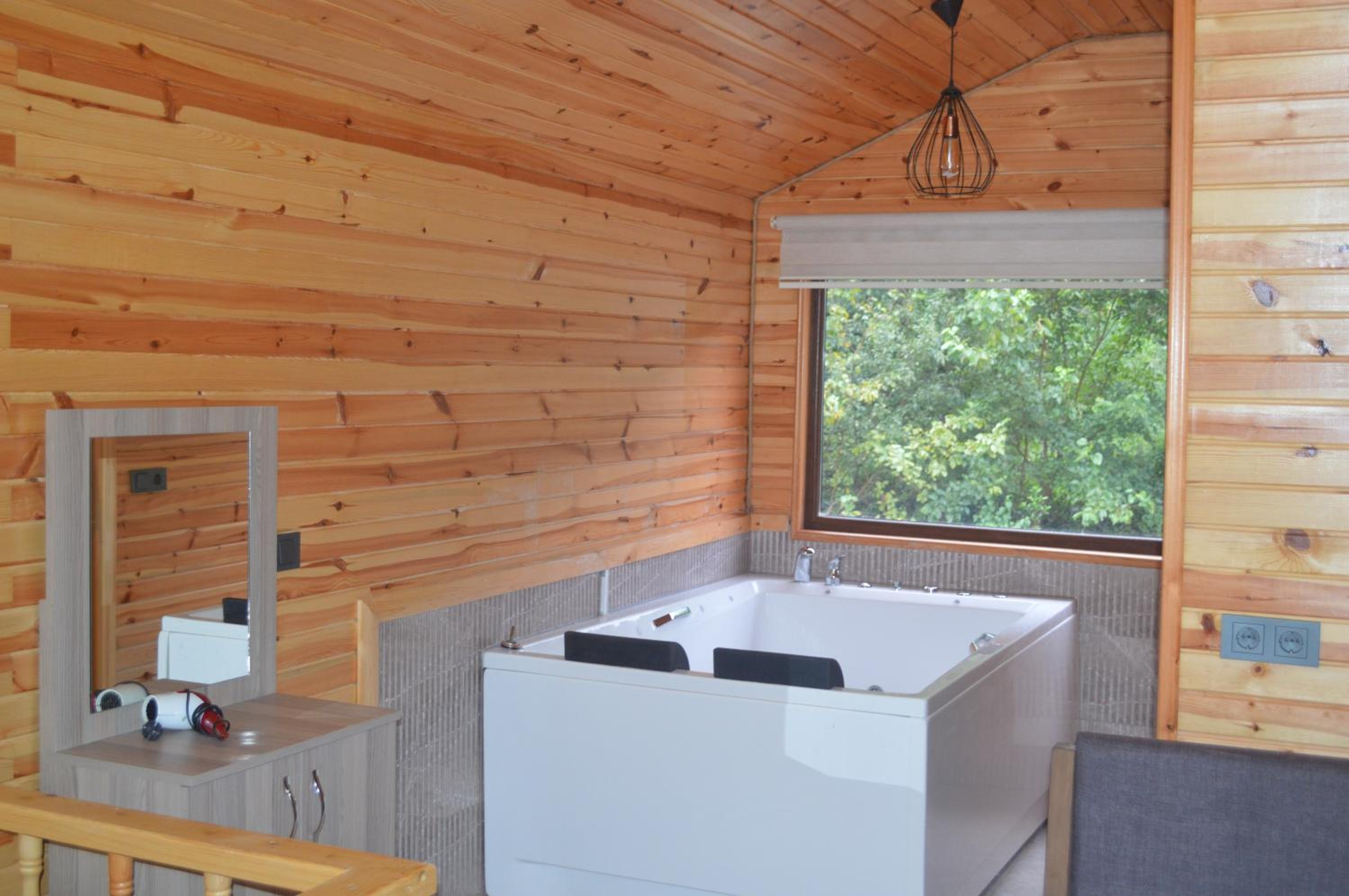 Gürültüden uzak, güzel bir ortam. Honeymoon ağaç evde konakladık. Oda geniş ve rahattı. Televizyon, buzdolabı, jakuzi, saç kurutma makinesi, kettle, şömine, vs. vardı. Jakuzi gayet büyük ve konforlu. Çiftler için iyi bir seçenek. Çalışanlar ilgili ve kibar. Kahvaltı doyurucuydu. Restorandan yemedik. Eksi olarak tabak, cam bardak gibi mutfak gereçlerinin olmaması ve odada birkaç tane halyomorpha halys olması dışında pek bir şikayetimiz olmadı. Çevredeki diğer otellere göre daha uygun fiyatlı olduğu için tavsiye ediyorum.