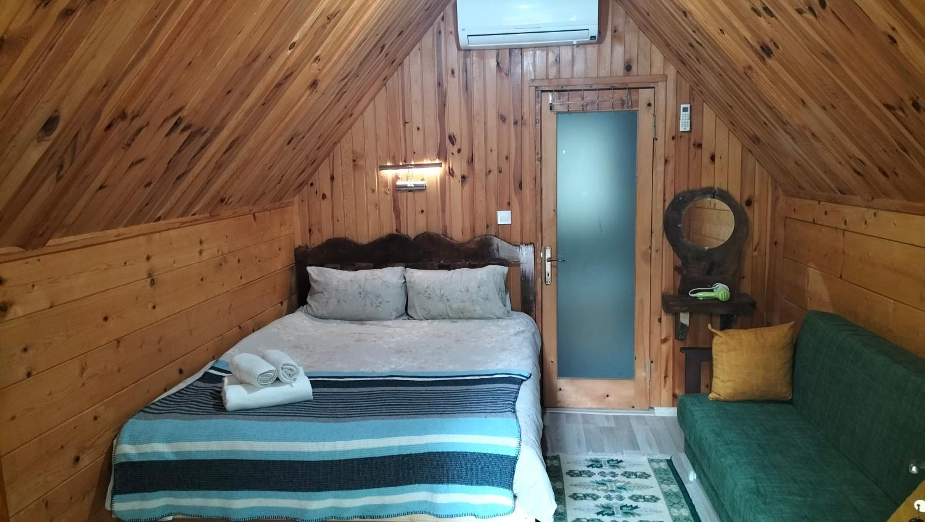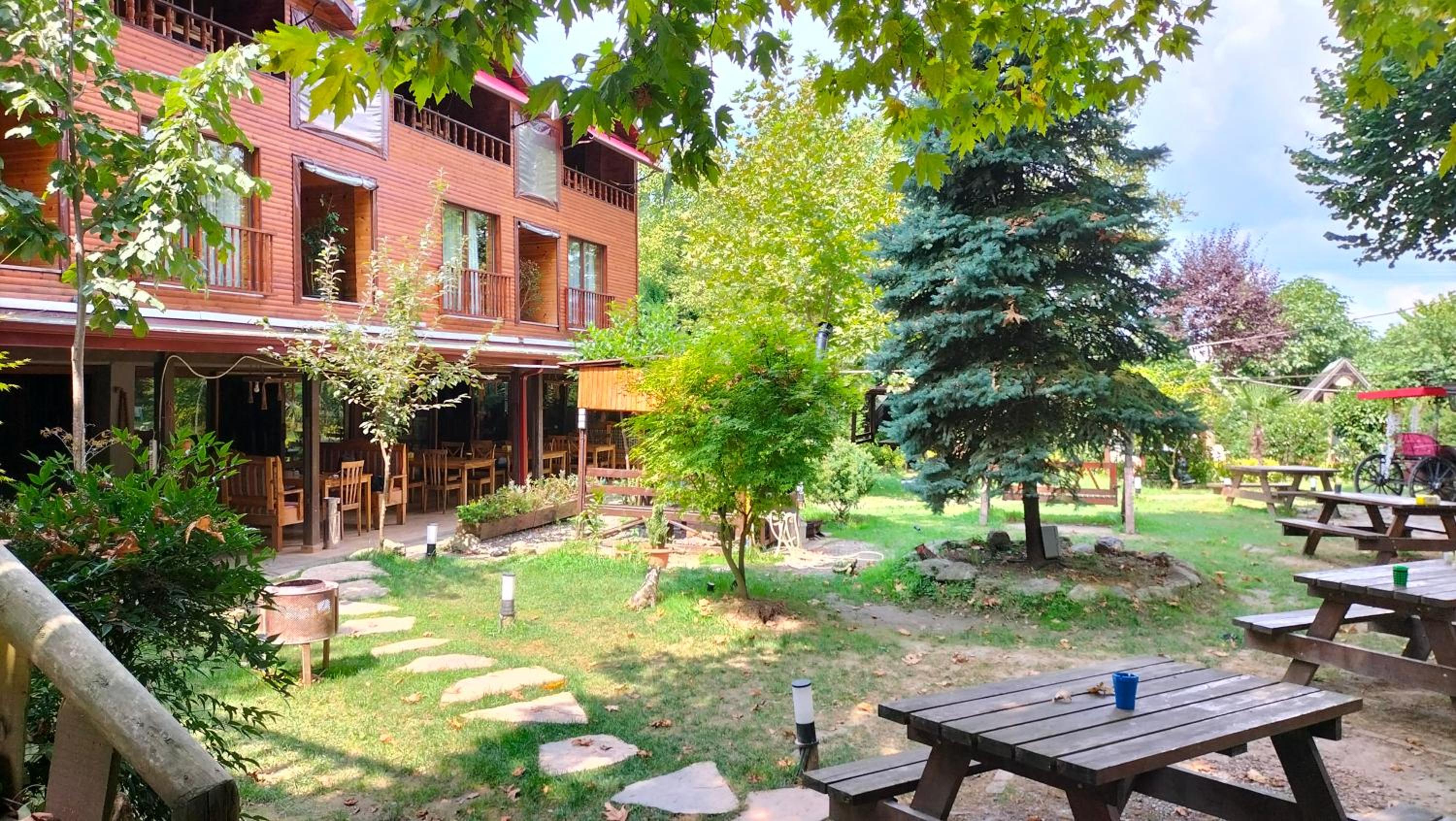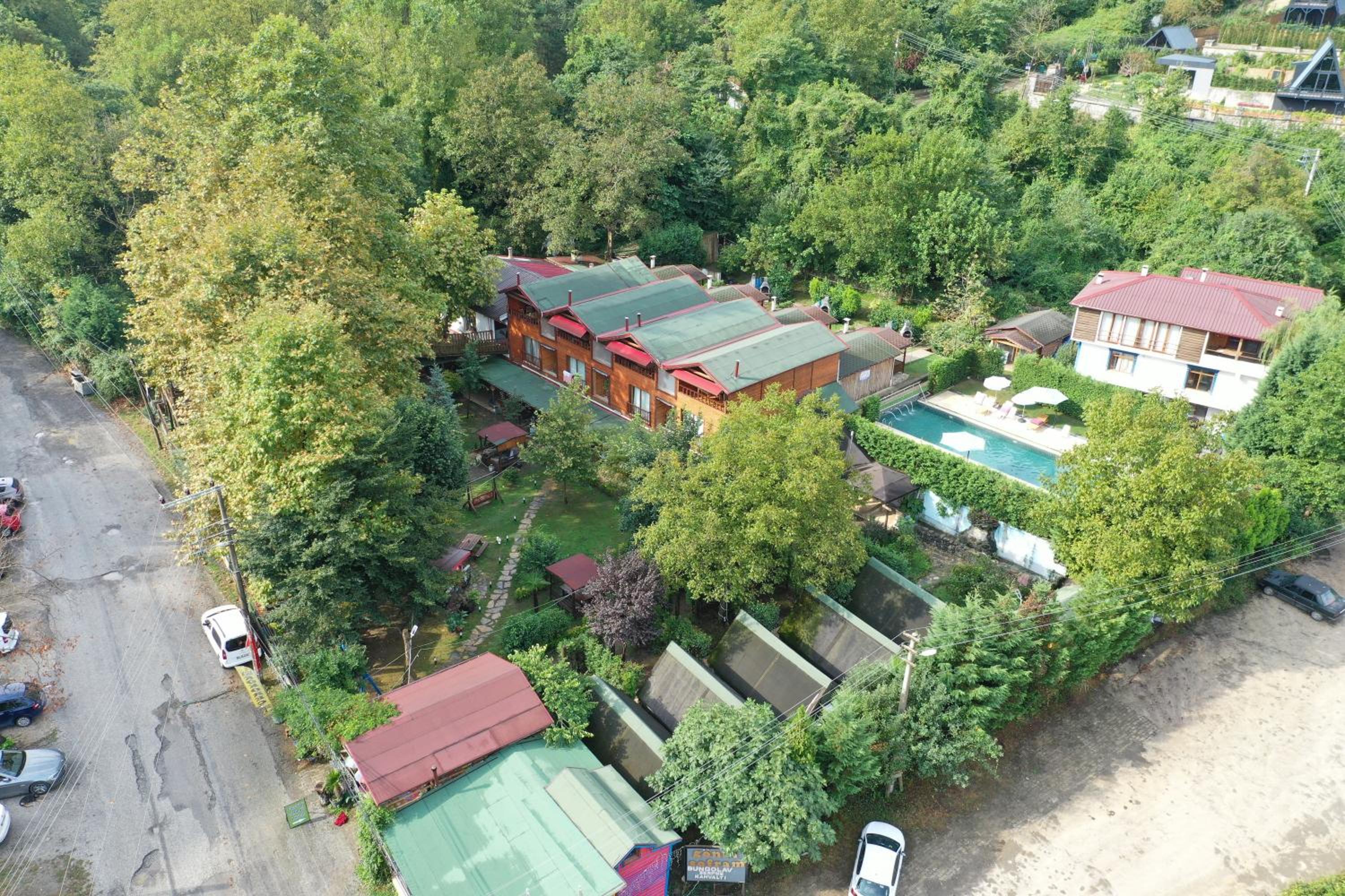 Gürültüden uzak, güzel bir ortam. Honeymoon ağaç evde konakladık. Oda geniş ve rahattı. Televizyon, buzdolabı, jakuzi, saç kurutma makinesi, kettle, şömine, vs. vardı. Jakuzi gayet büyük ve konforlu. Çiftler için iyi bir seçenek. Çalışanlar ilgili ve kibar. Kahvaltı doyurucuydu. Restorandan yemedik. Eksi olarak tabak, cam bardak gibi mutfak gereçlerinin olmaması ve odada birkaç tane halyomorpha halys olması dışında pek bir şikayetimiz olmadı. Çevredeki diğer otellere göre daha uygun fiyatlı olduğu için tavsiye ediyorum.