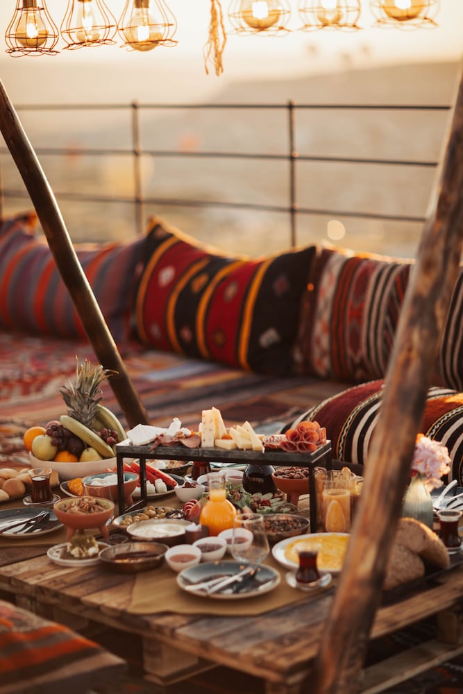 Olenda Cappadocia’s location is breathtaking as you are literally under the Uchisar Castle and the views from the property are at the highest point overlooking the valley! Mesmerizing views is what we experienced! Muhammed was so attentive and set us up for all our tours with door to door service and no need to rent a car. The cordial attention from all the staff members made us feel very special. We voiced we wished for a romantic dinner on terrace and they set us up and made all our wishes come true! The hotel is new and beautifully lit up at night! Our room had the spectacular view with the indoor tub and outdoor terrace granite tub which it was hard to leave! Highly recommend staying at Olenda! Highly recommend the sunrise balloons and sunset horseback ride for the horse lovers. You literally ride into the sunset! Go with the company that Olenda recommends. The staff at the restaurant Felispub go above and beyond and work from morning til dawn to give you the best service! Thanks to Albert for taking care of all our food request and his response was always of course with a big smile!