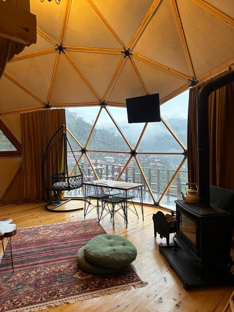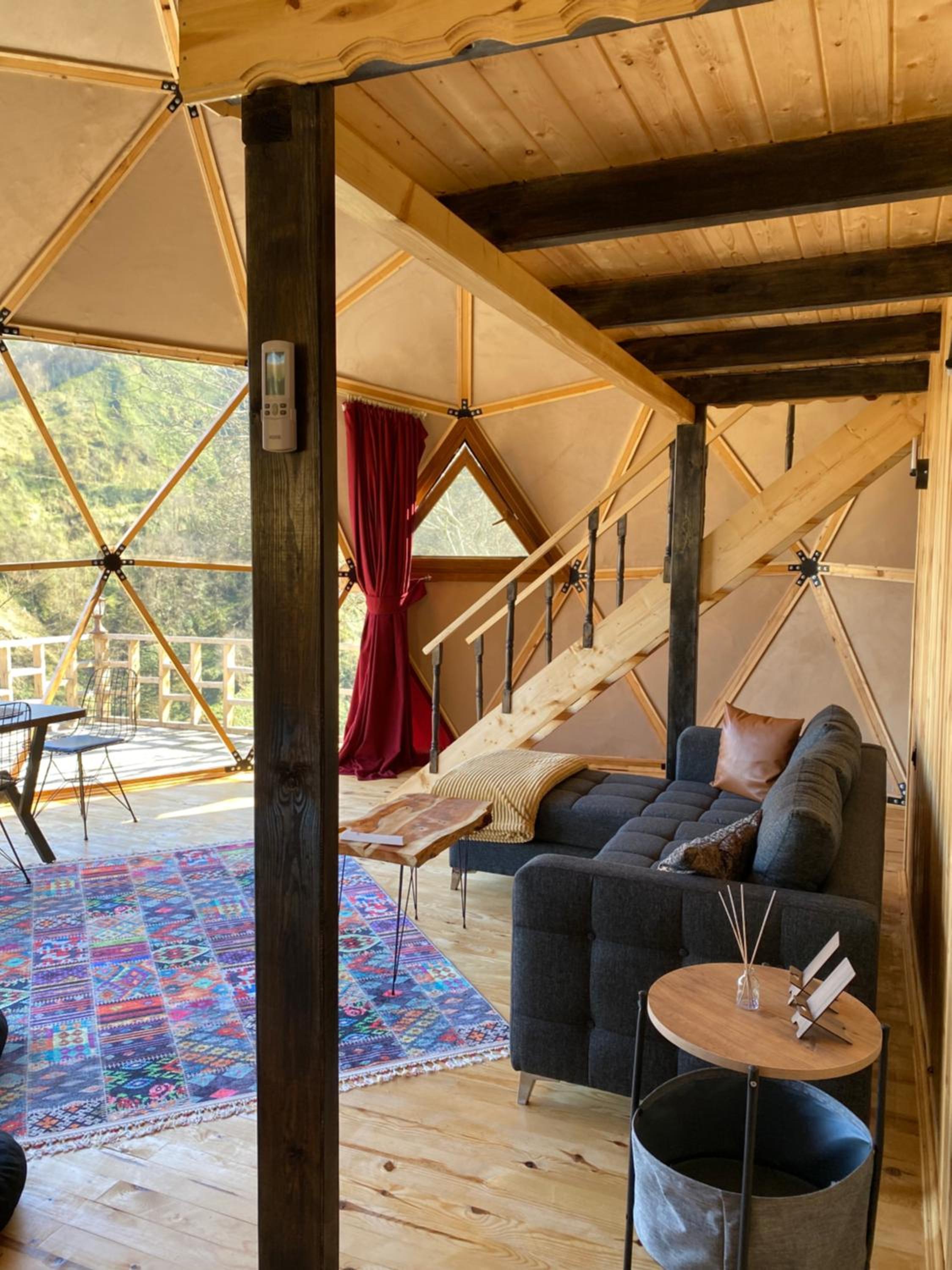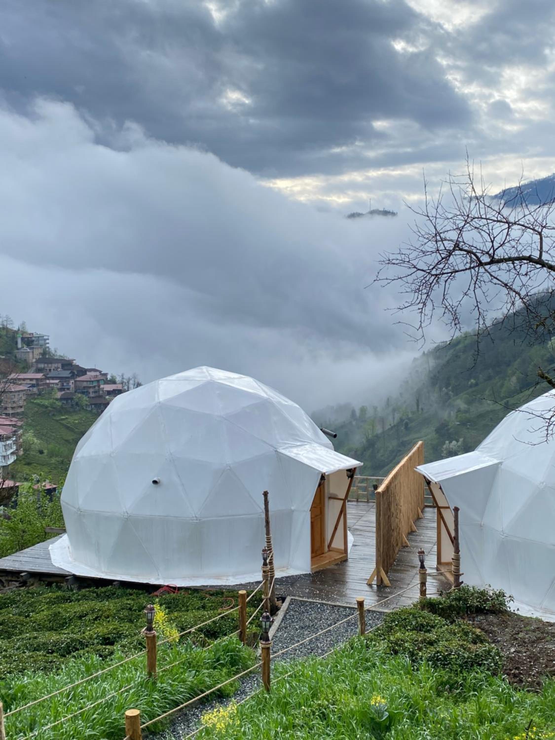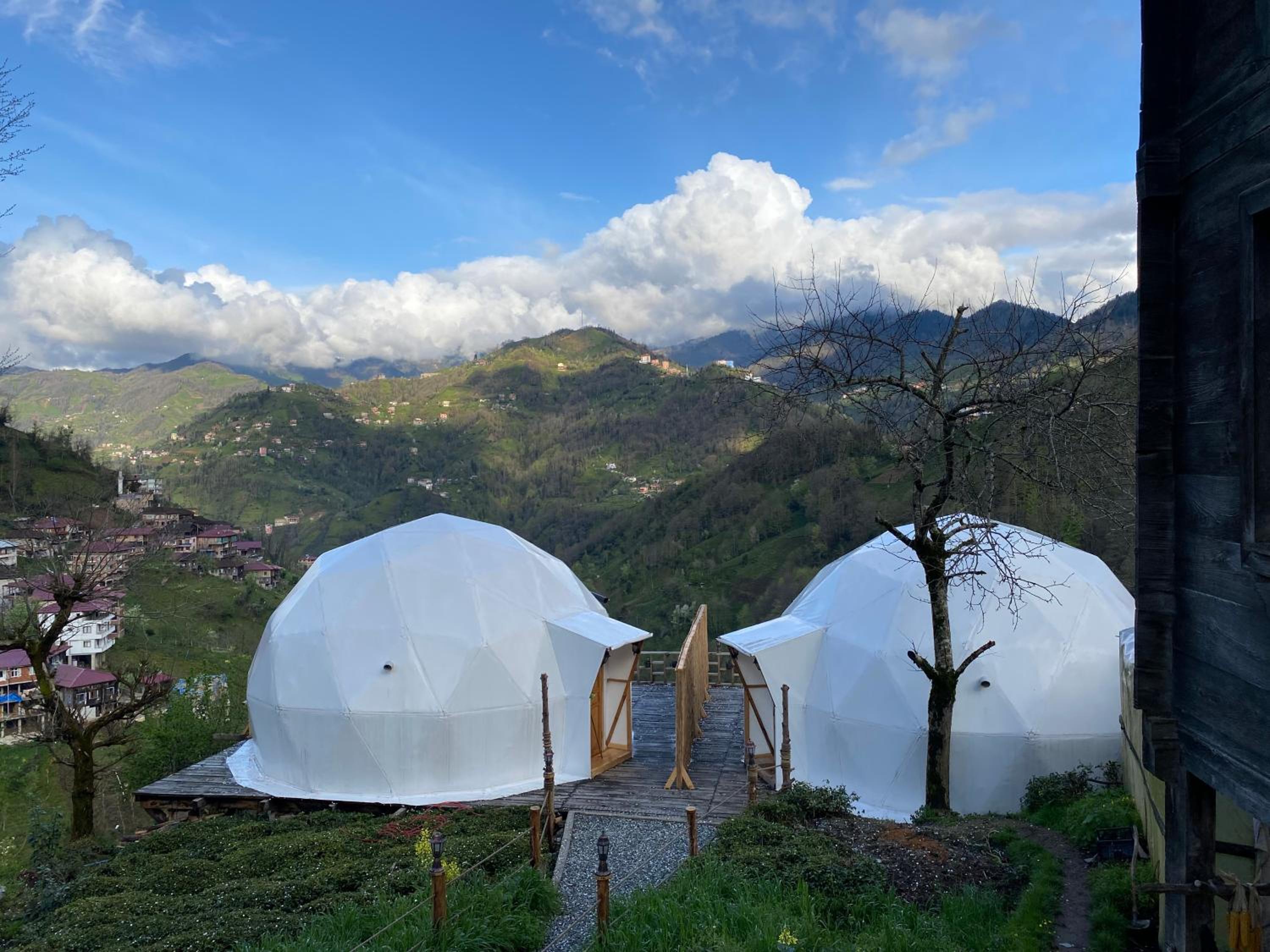 Escape to LİMKHONA DOME - CHALET for a serene getaway in Çamlıhemşin. Indulge in breathtaking mountain views from your private balcony and unwind in the cozy seating area while enjoying satellite TV. The fully equipped kitchenette allows you to prepare meals with ease.