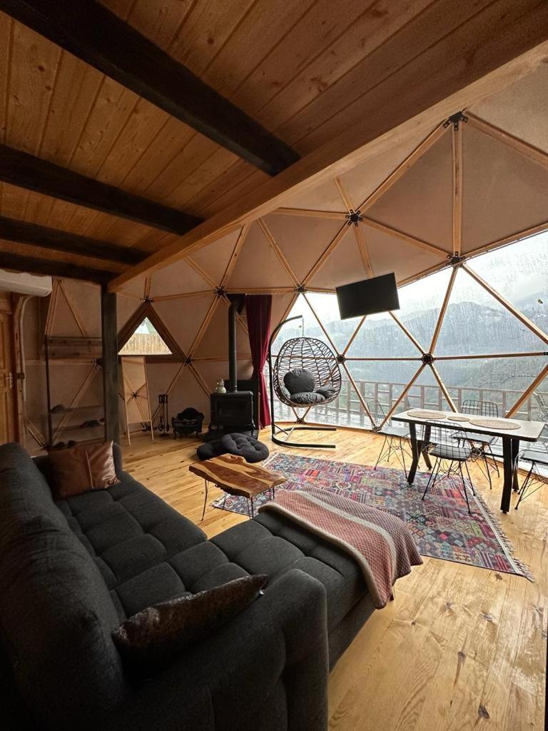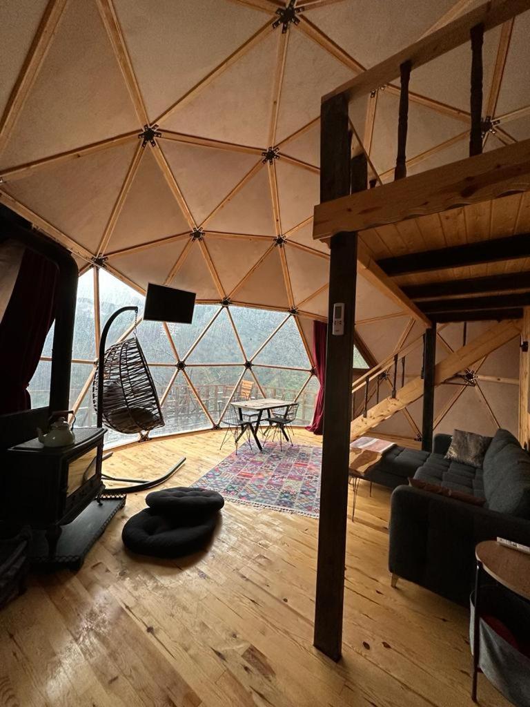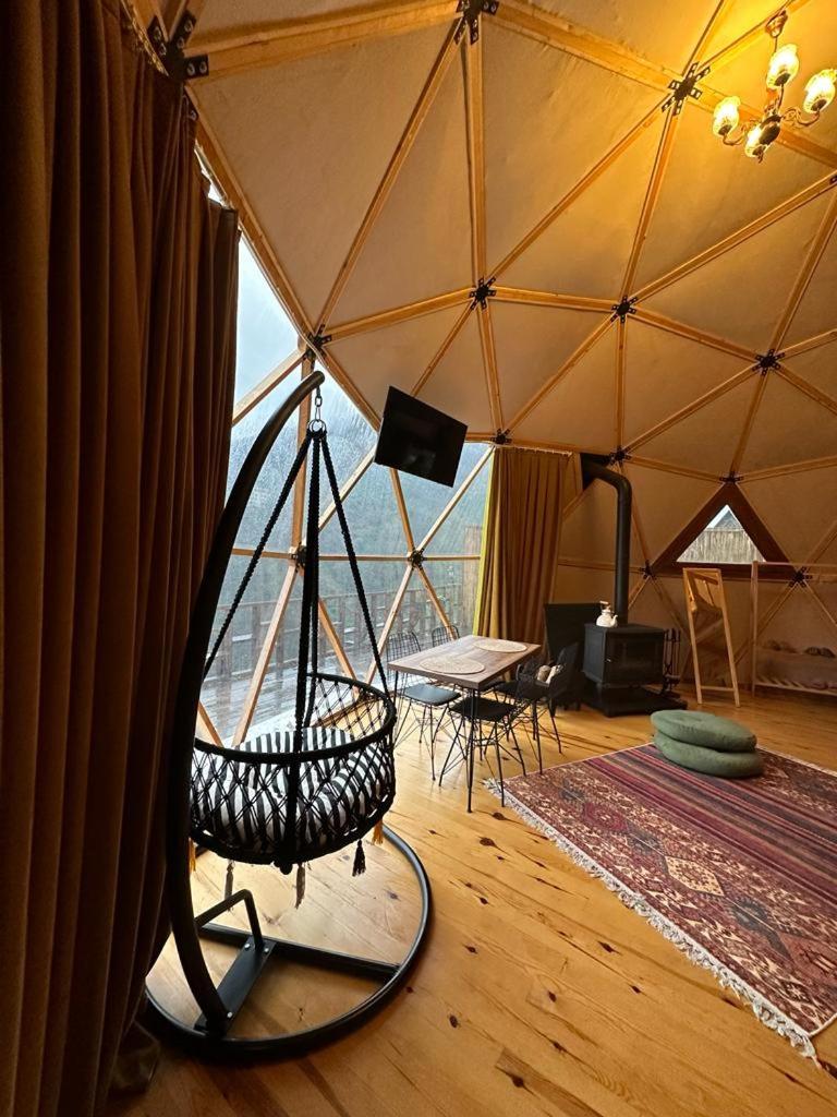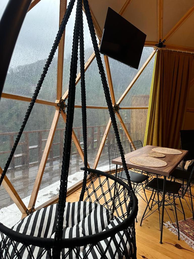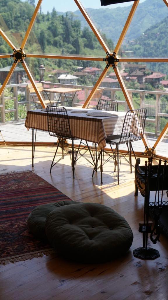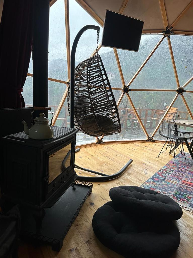 Escape to LİMKHONA DOME - CHALET for a serene getaway in Çamlıhemşin. Indulge in breathtaking mountain views from your private balcony and unwind in the cozy seating area while enjoying satellite TV. The fully equipped kitchenette allows you to prepare meals with ease.