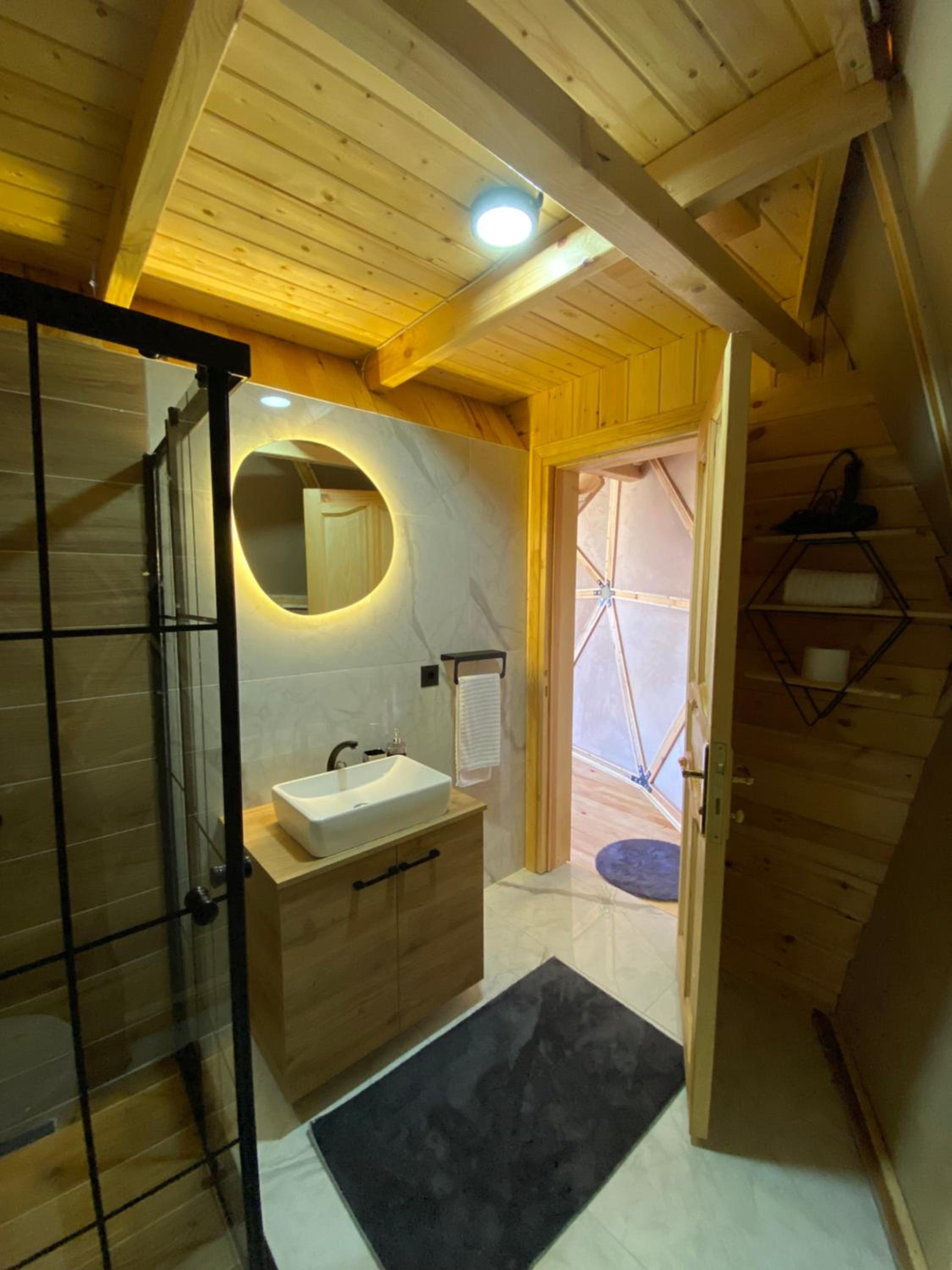 Relax in the private bathroom with complimentary slippers and refresh with the softest linens and towels. Experience a perfect blend of nature and luxury at LİMKHONA DOME - CHALET.