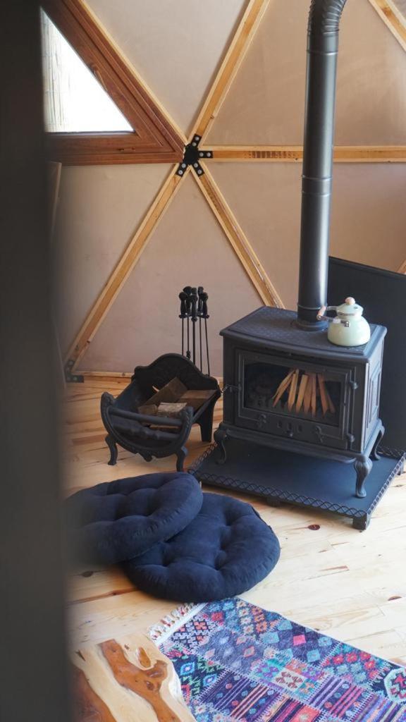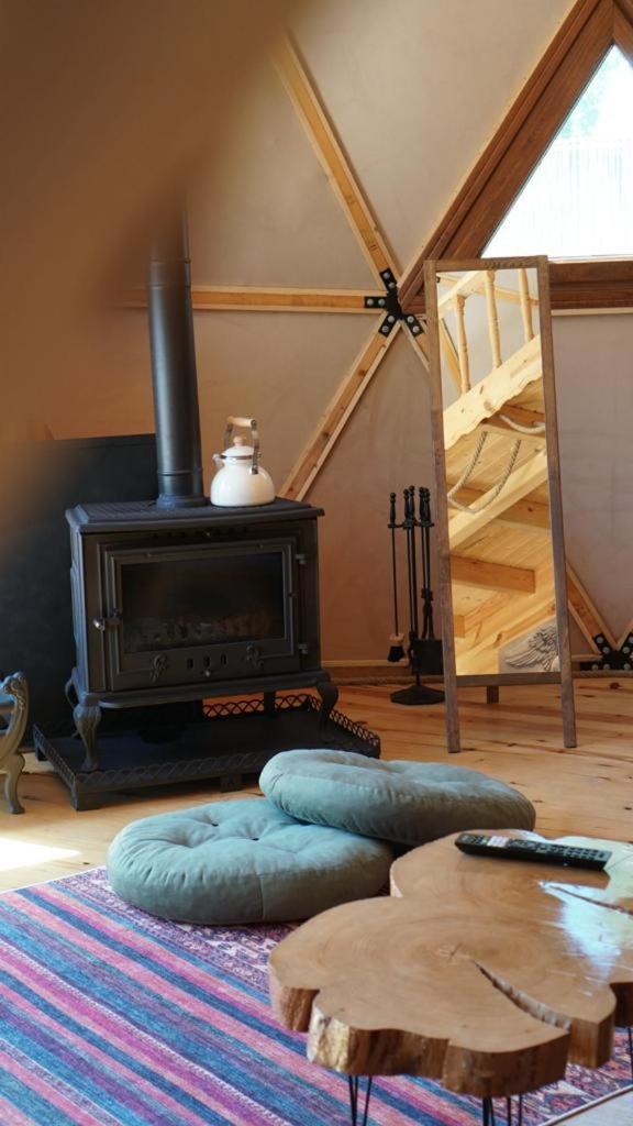 I found this property in Booking and we booked it for 1 night, at the end - We stayed in this chalet for two nights because we liked it so much. The chalet itself is very cozy and clean. You can find there everything needful (small kitchen with plates and cutlery, kettle and coffee machine, good equipped bathroom, AC, fireplace, sofa, king size bed on the second floor and outside table with chairs to enjoy the views. I want to admit the owners attitude and hospitality- he was very polite, accommodating and friendly. He is living next to and also showed us his wooden workshop where he is manufacturing Turkish music instruments- Tulums.