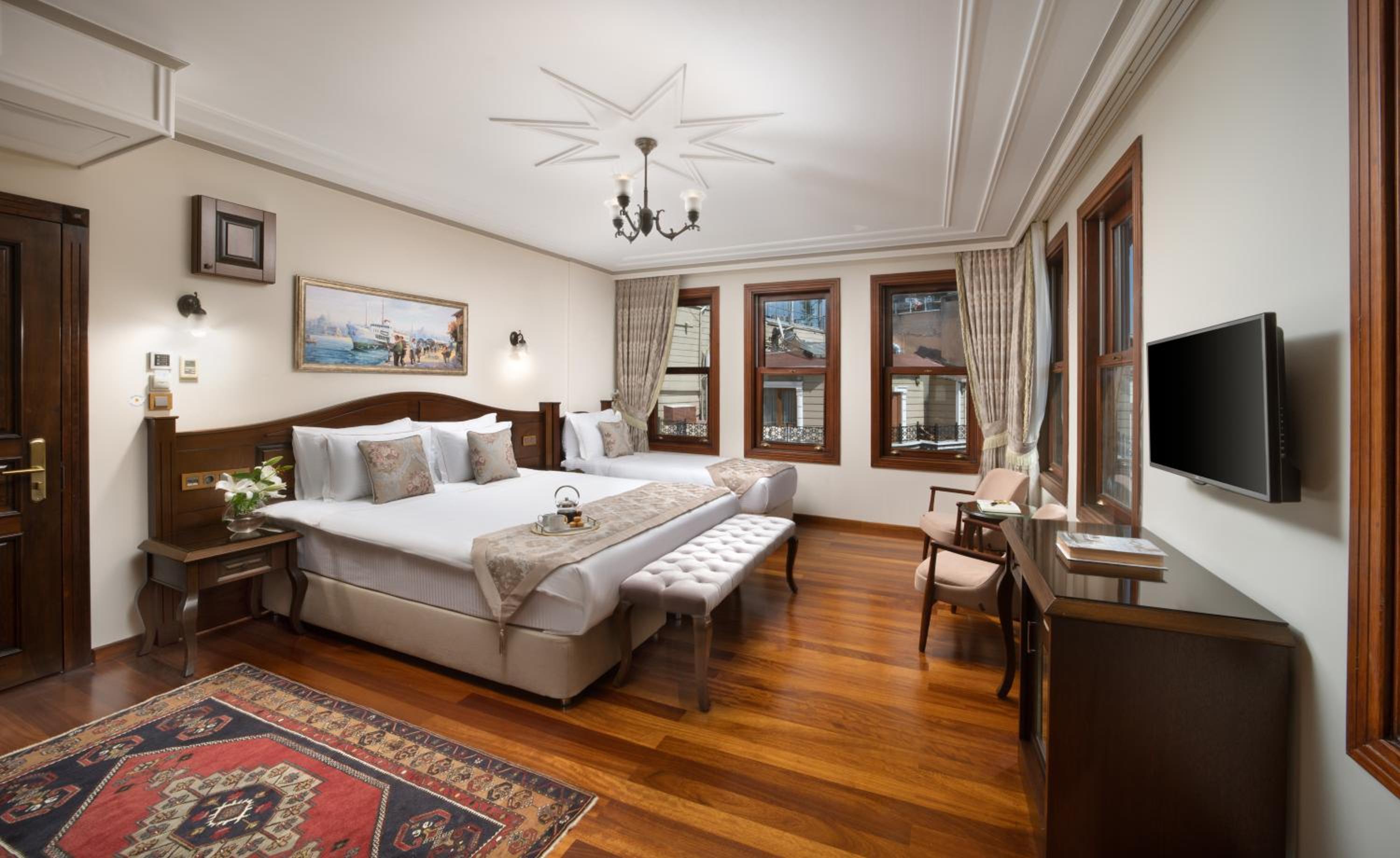 Prime Location: Situated just 600 meters from the Blue Mosque, Bender Hotel is near iconic landmarks like Hagia Sophia and Basilica Cistern. With a paid airport shuttle service, your journey to and from Istanbul Sabiha Gokcen International Airport is made effortless.