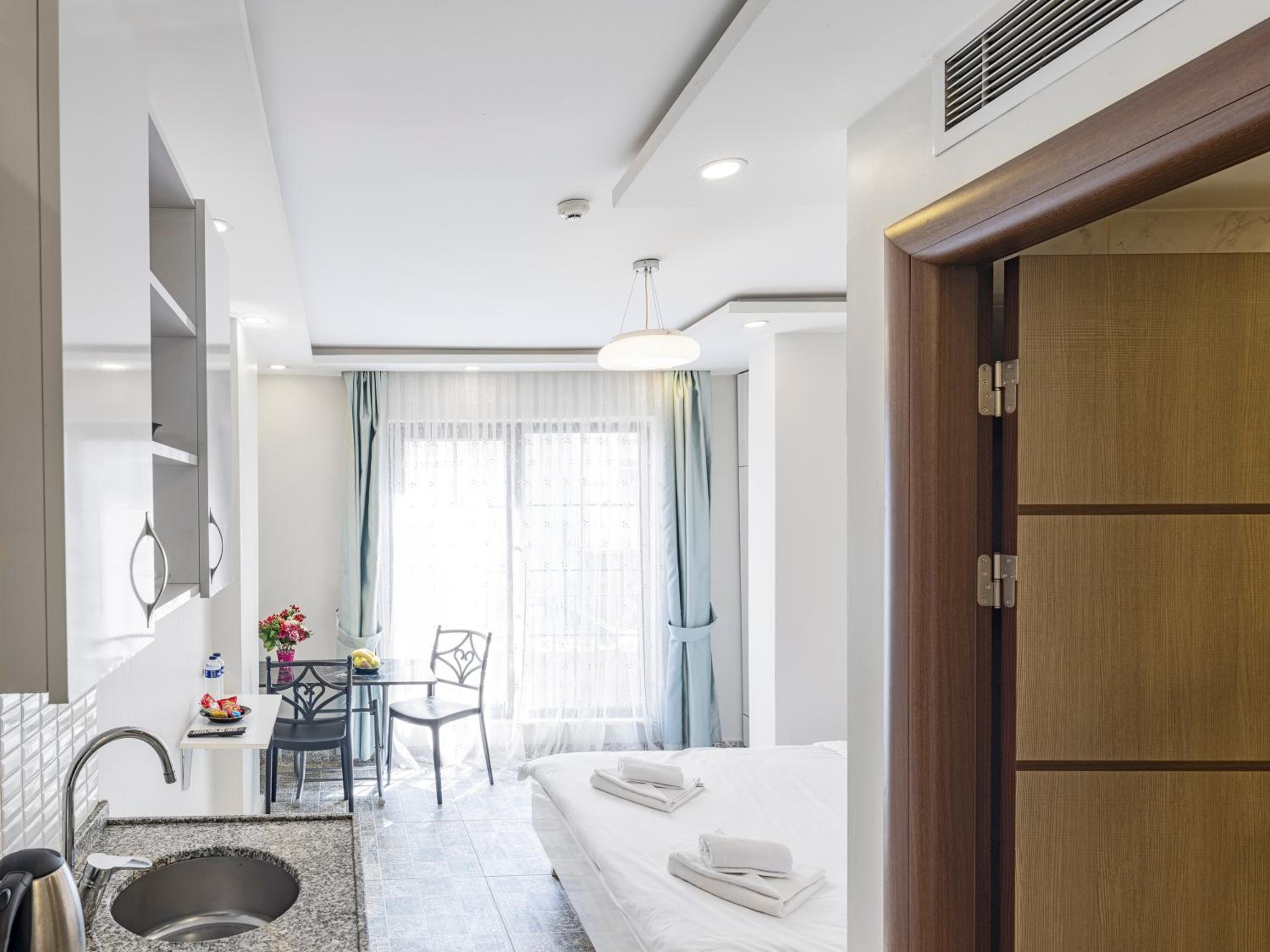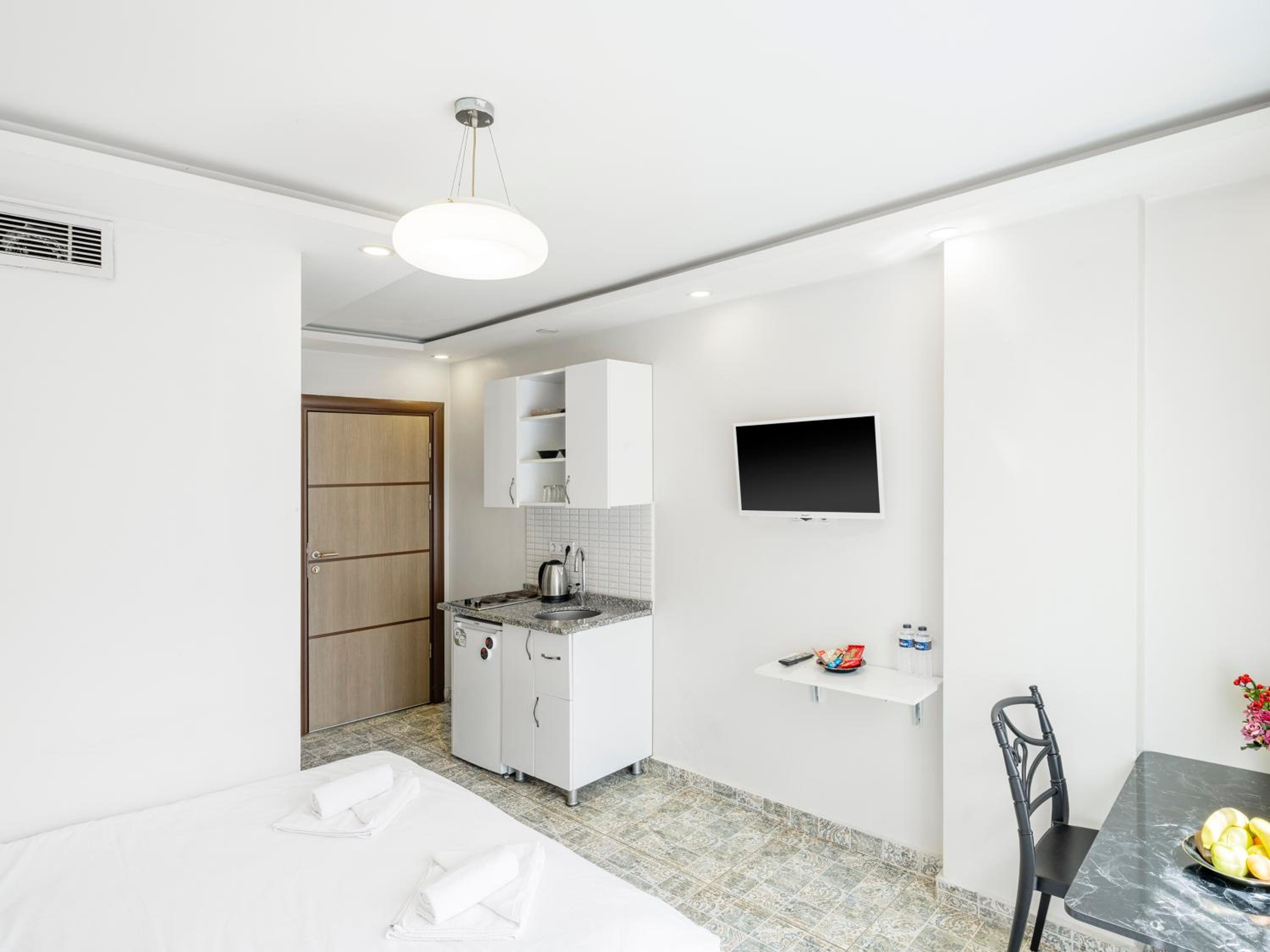 Oda temiz değil perdeler tam kapanmıyor camlardan buz gibi hava geliyor elektrik kesilip durdu giriş saatinden yaklaşık 5 saat geç girmemize rağmen ve önden aramamıza rağmen odayı hazırlamamışlardı duşakabin kapağının yarısı yok odada su ısıtmak için makina dahi yoktu koydukları bardaklar ve çatal bıçaklar pisti geceleri resepsiyonda birini bulmanız mümkün değil.