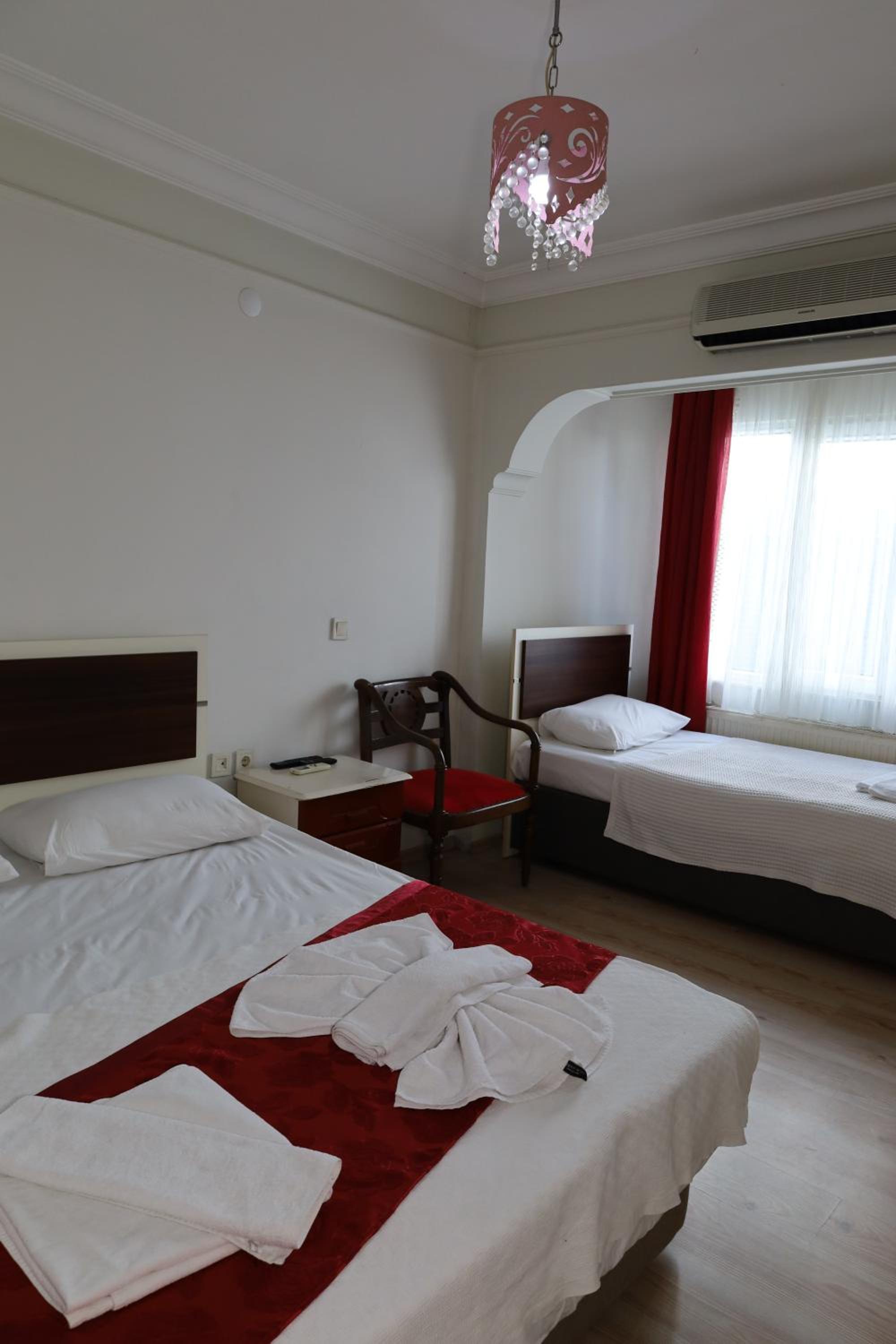 1 gecelik bir konaklama yaptık.bi otelde rezervasyon yapmamiza rağmen bize yan komşu otelde yer verildi..razı geldik bu sefer küçük çocuğumuz olduğunu rezervasyon sırasında önceden belirtiimizde çocuğun otelde ücretsiz misafir edileceği belirtildi oda çok küçük 2 kişilik bir yatakta daha da küçük olunca doğal olarak çocuk için küçük bir yatak rica ettik.ancak olumsuz yanıt aldık...3 kişi tek yatakta uyumak zorunda kaldık.ayrica bu komşu otelde güvenlik personeli yerine köpekler giriş kapısında bekliyor.gec saatlerde otele gelirseniz size havlayip otelle sokmak istemiyorlar...uzun dönem konaklama için pek tavsiye etmem..bu otele yer ayırtıp yanda boyle bir otelde kalmak zorunda kalabilirsiniz