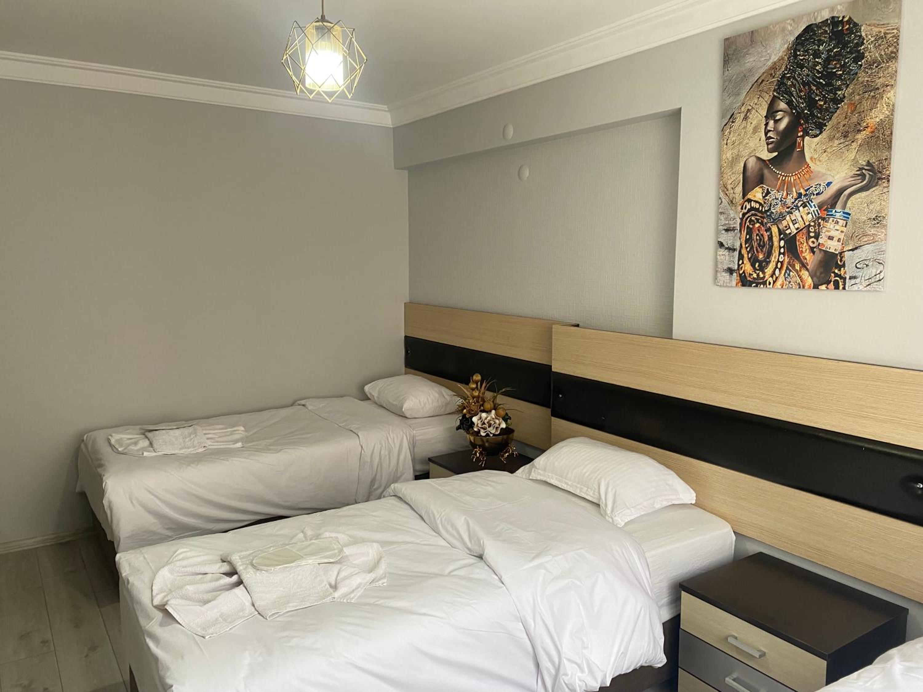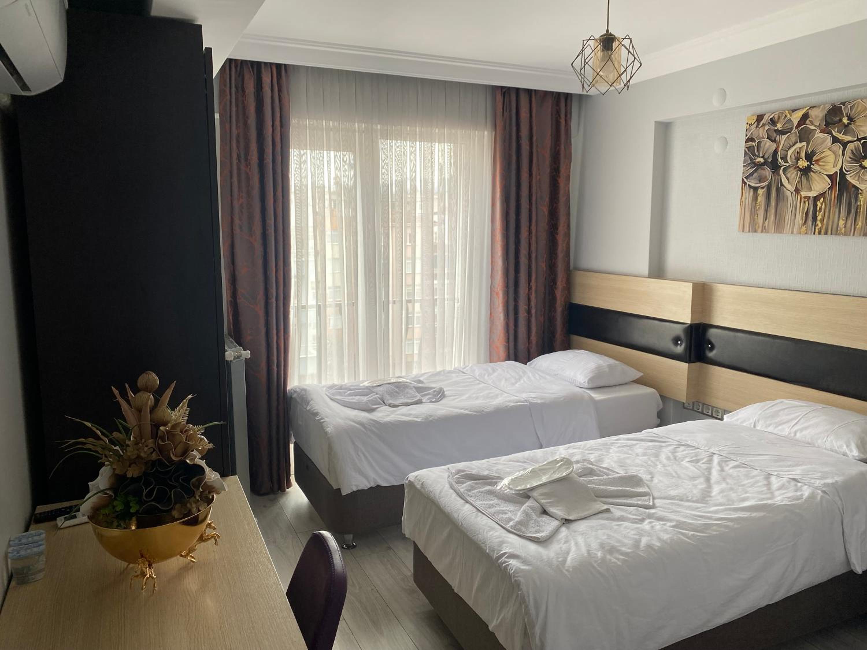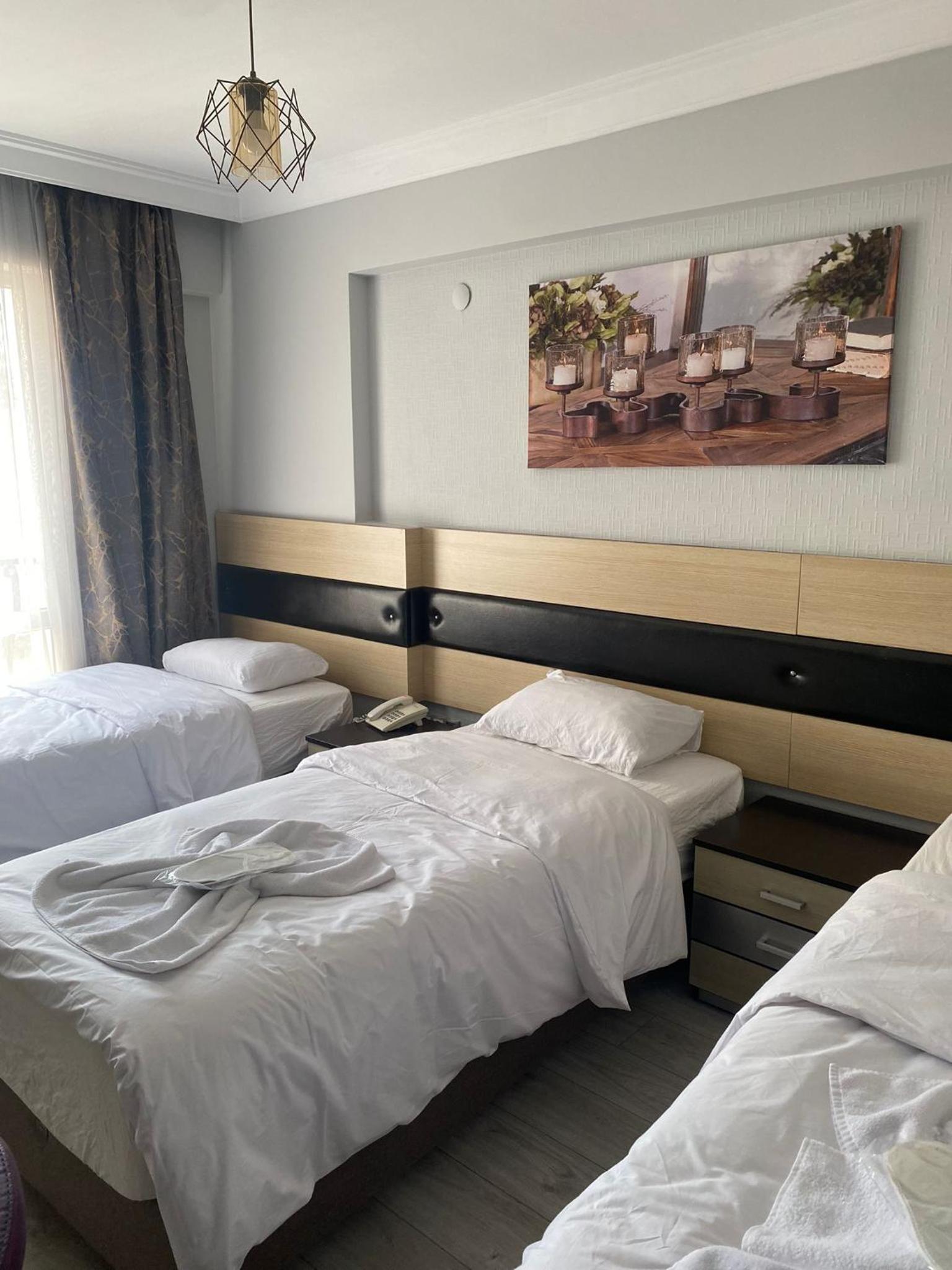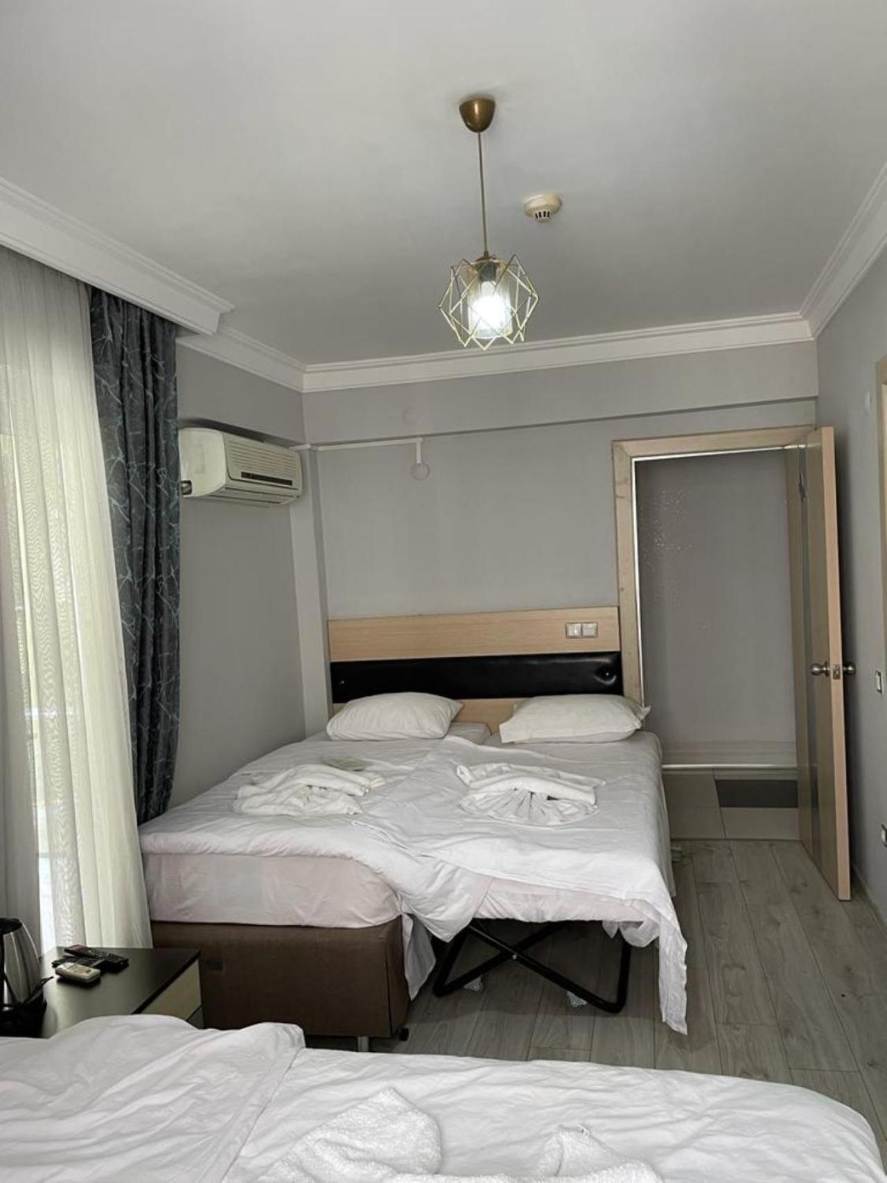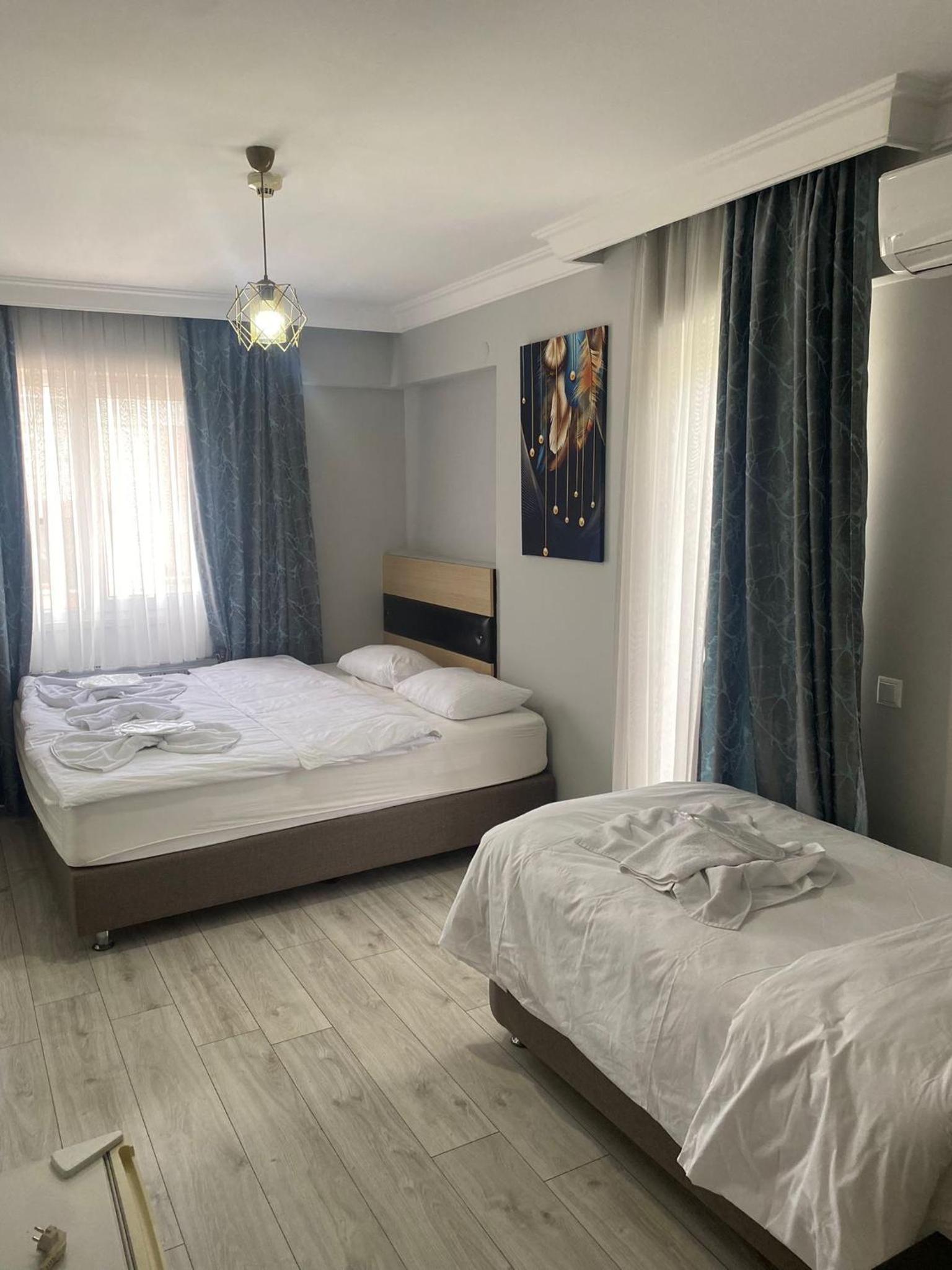 2 kişilik oda tuttuk 1 sandalye vardı sadece.odada oturacak yer yoktu banyo WC gayet temiz ve kullanışlıydı kahvaltı yemek ücretli veya ücretsiz herhangi bir hizmet yok malesef sadece konaklamak için tercih edilebilir sahile çok yakın konumu süper genel olarak iyi 10 üzerinden 6 falan