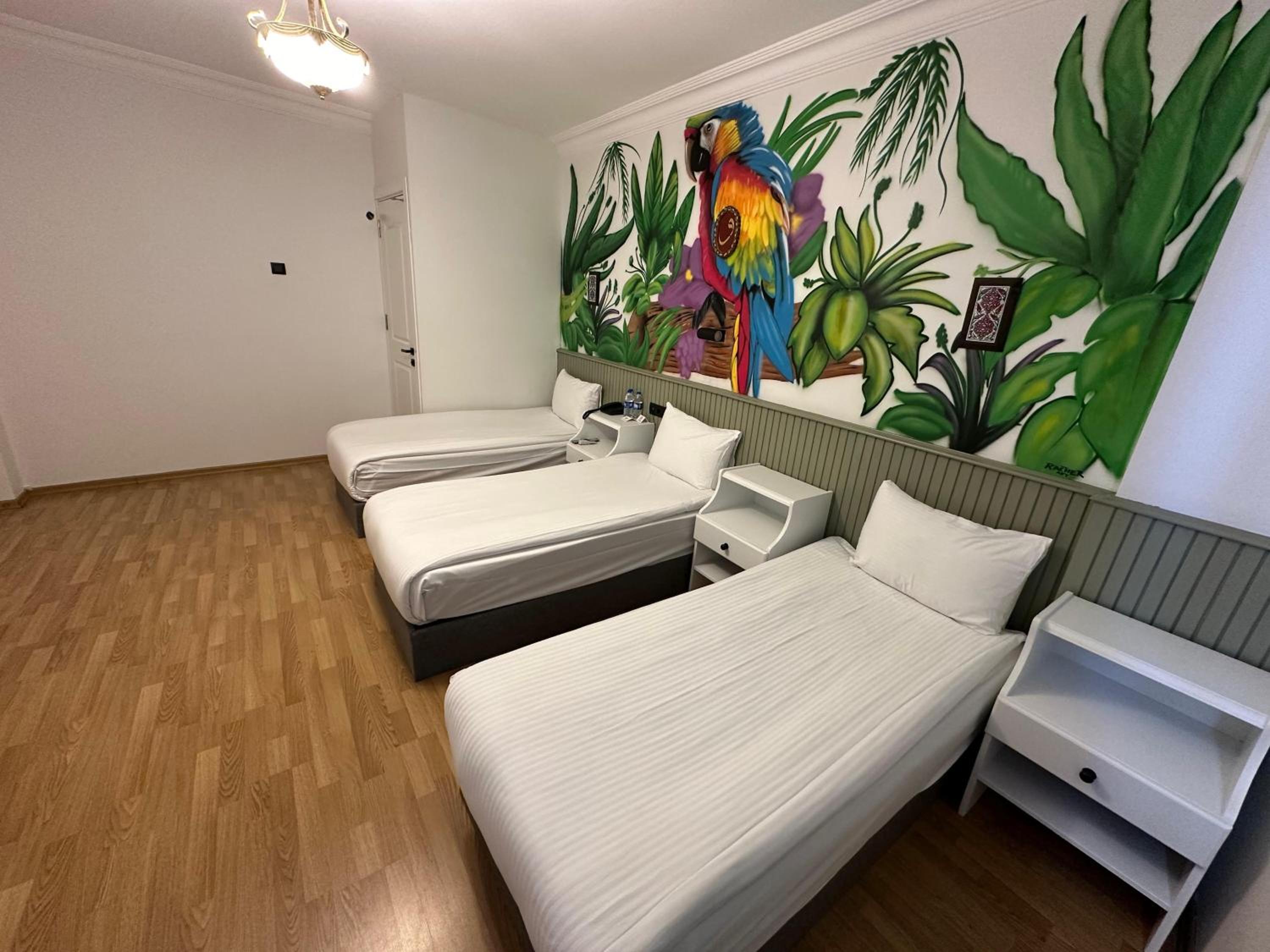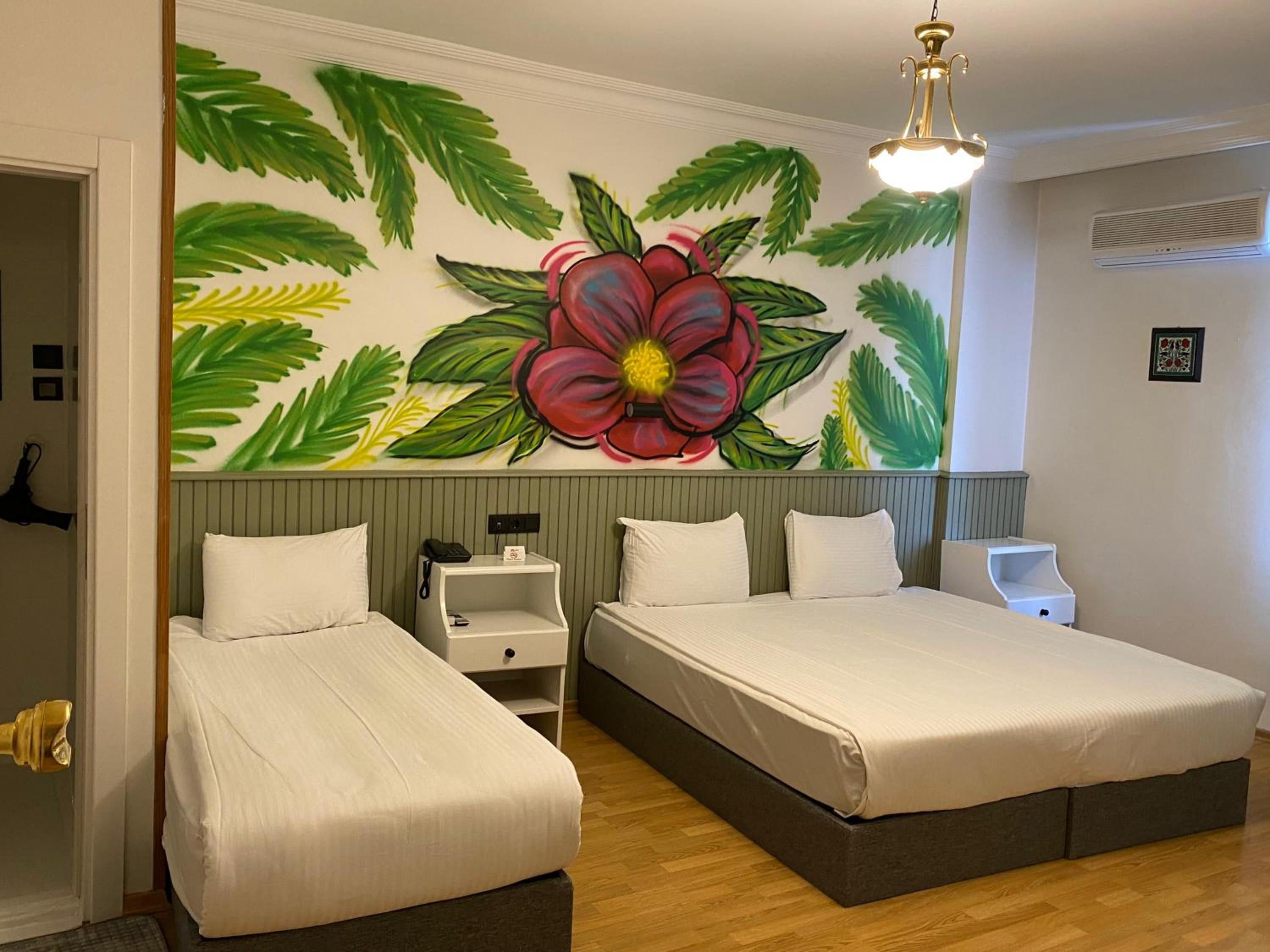 Relax in our well-appointed rooms featuring modern amenities like flat-screen TVs, air conditioning, and private bathrooms. Some rooms even offer a balcony for a breath of fresh air.